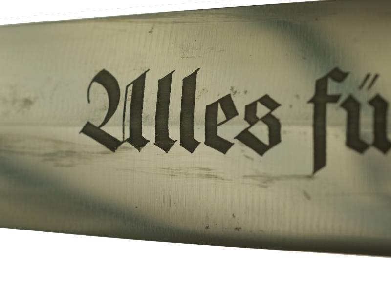 Einzigartiger Zustand, fast NEU und ungetragen. Der SA Dolch war über fast 80 Jahre in der Tüte drin und daher ist der Lack unbeschädigt und keinen der artigen auf den Markt vorhanden bzw. je gesehen. SA Dolch in unberührtem Zustand. Der Dolch ist in der frühen Variante (1933-1935) mit dem Hersteller Carl Aug. Meis GMBH Solingen (Gegr.: 1872). Die Scheide ist mit Original-Brünierung und mit vier Schrauben. Die Brünierung ist ca. zu 99% erhalten. Zwischen der Scheide und der unteren Parierstange ist kein Spalt vorhanden, alles zu 100% passgenau. Das Gehänge ist aus Leder und ebenfalls in sehr gutem Zustand. Karabinerhaken mit DRGM markiert. Die Klinge ist spiegelblank, ohne jegliche Beschädigung. Die Devise ist tief und dunkel, auf der Rückseite ist der Hersteller. Der Dolch wurde noch nie geöffnet und geht saugend in die Scheide rein. Die Gesamtlänge vom SA Dolch beträgt 37,3 cm. Brauner Holzgriff mit feineingesetztem Adler und Pastille, die nie rausgenommen wurden. Die untere Parierstange ist mit dem Gau No-Nordsee gestempelt. Beide Parierstangen aus Neusilber. Gesamtzustand 1+. Auf der Original-Tüte des Dolches steht nochmal der Hersteller des Dolches drauf.