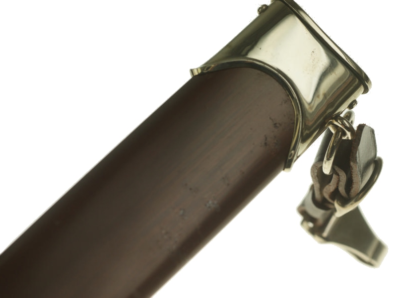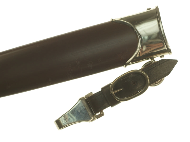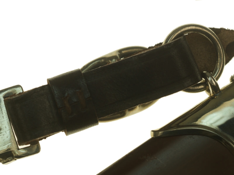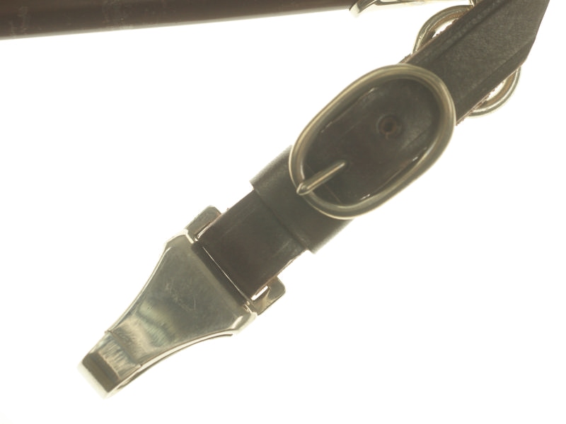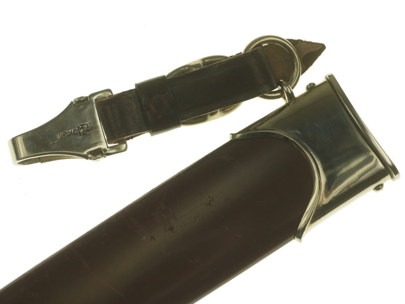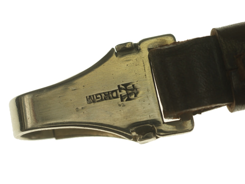Ledergehänge mit Karabinerhaken und DRGM Markierung.