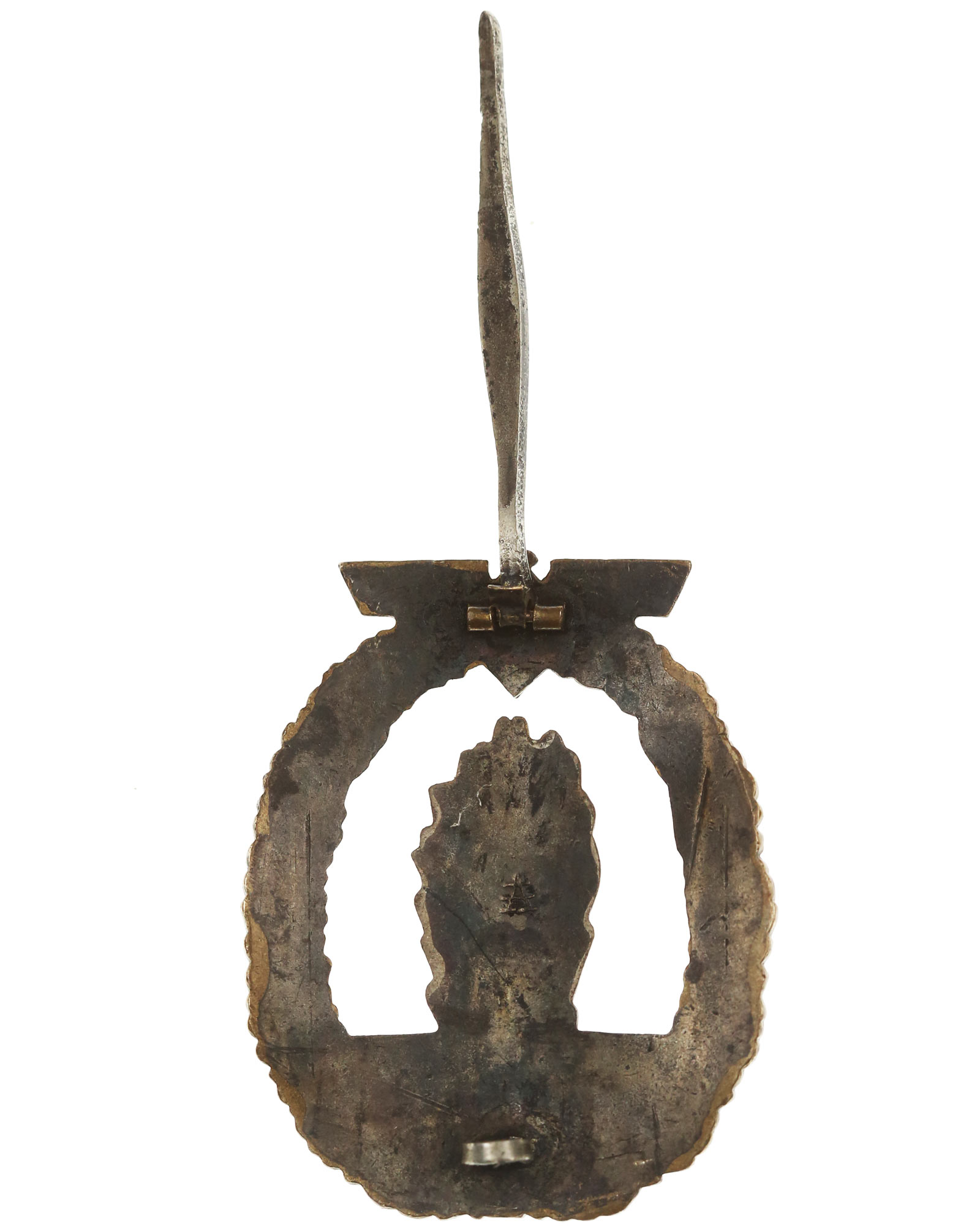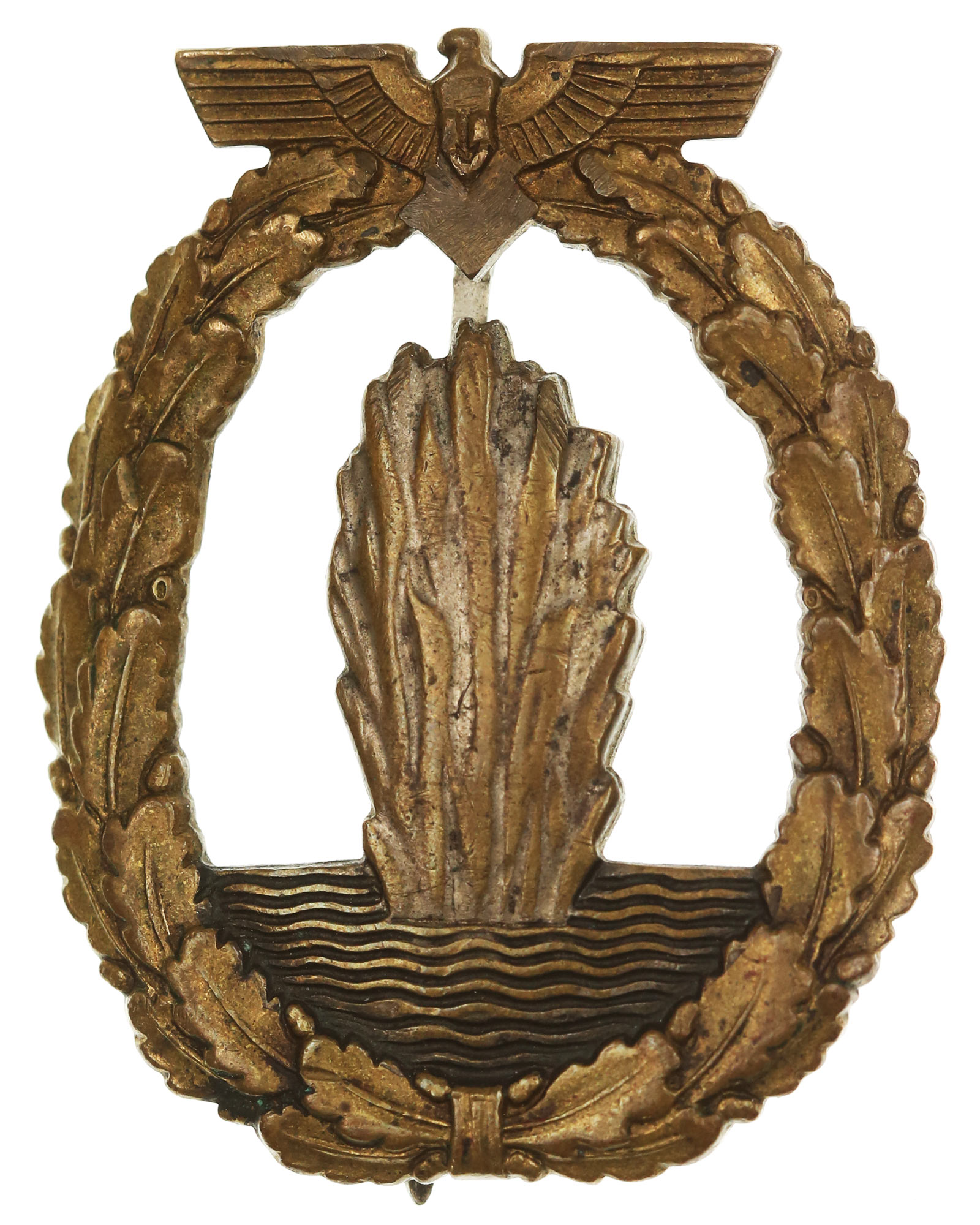 Minensucher Kriegsabzeichen der Kriegsmarine mit dem Hersteller: Assmann. Das Abzeichen ist entnazifiziert.