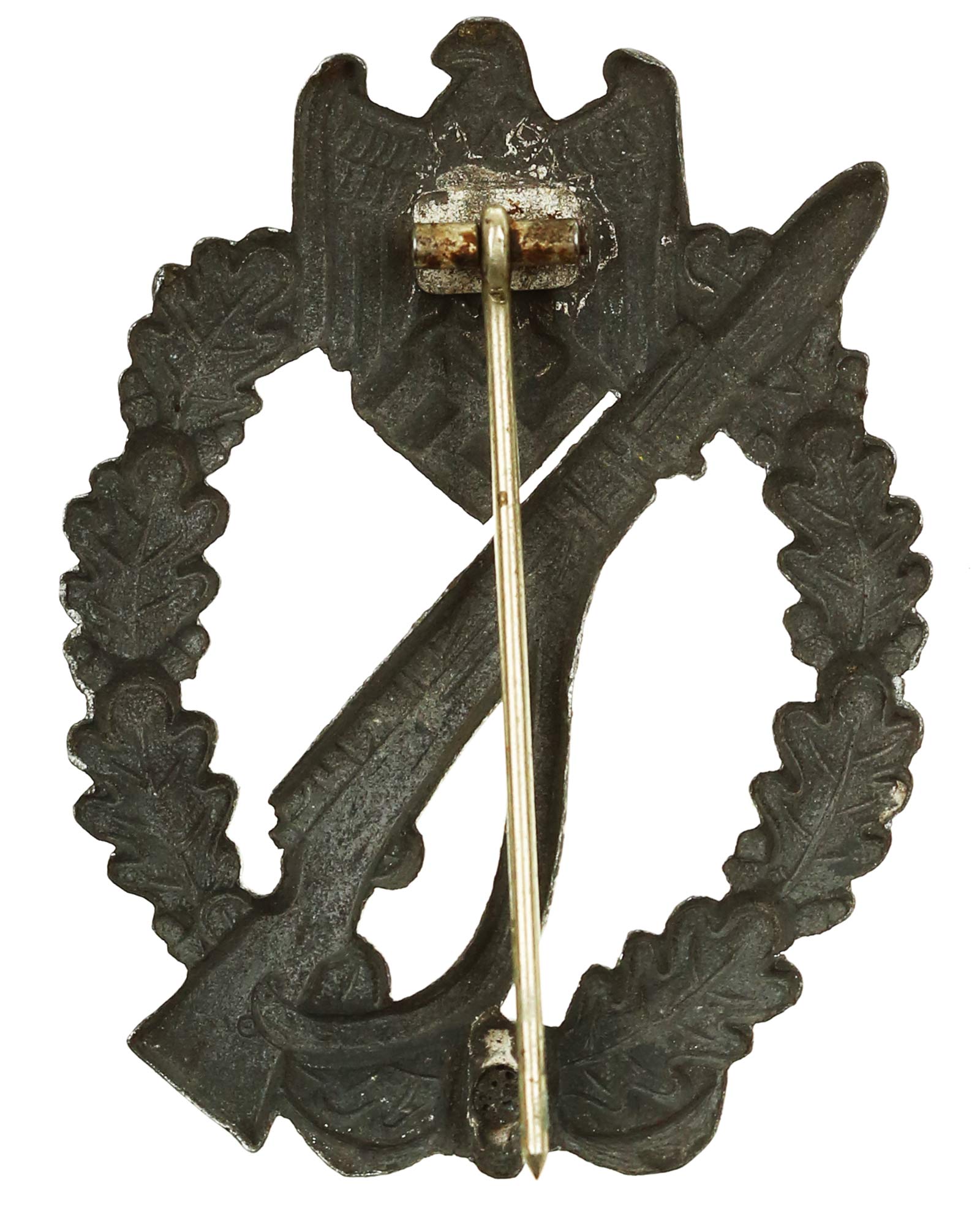 Hohlprägung vom Infanterie Sturmabzeichen in Silber, zink. Abmaßen: 63,33 x 47,49 mm. Untere Nadelbefestigung fehlt.