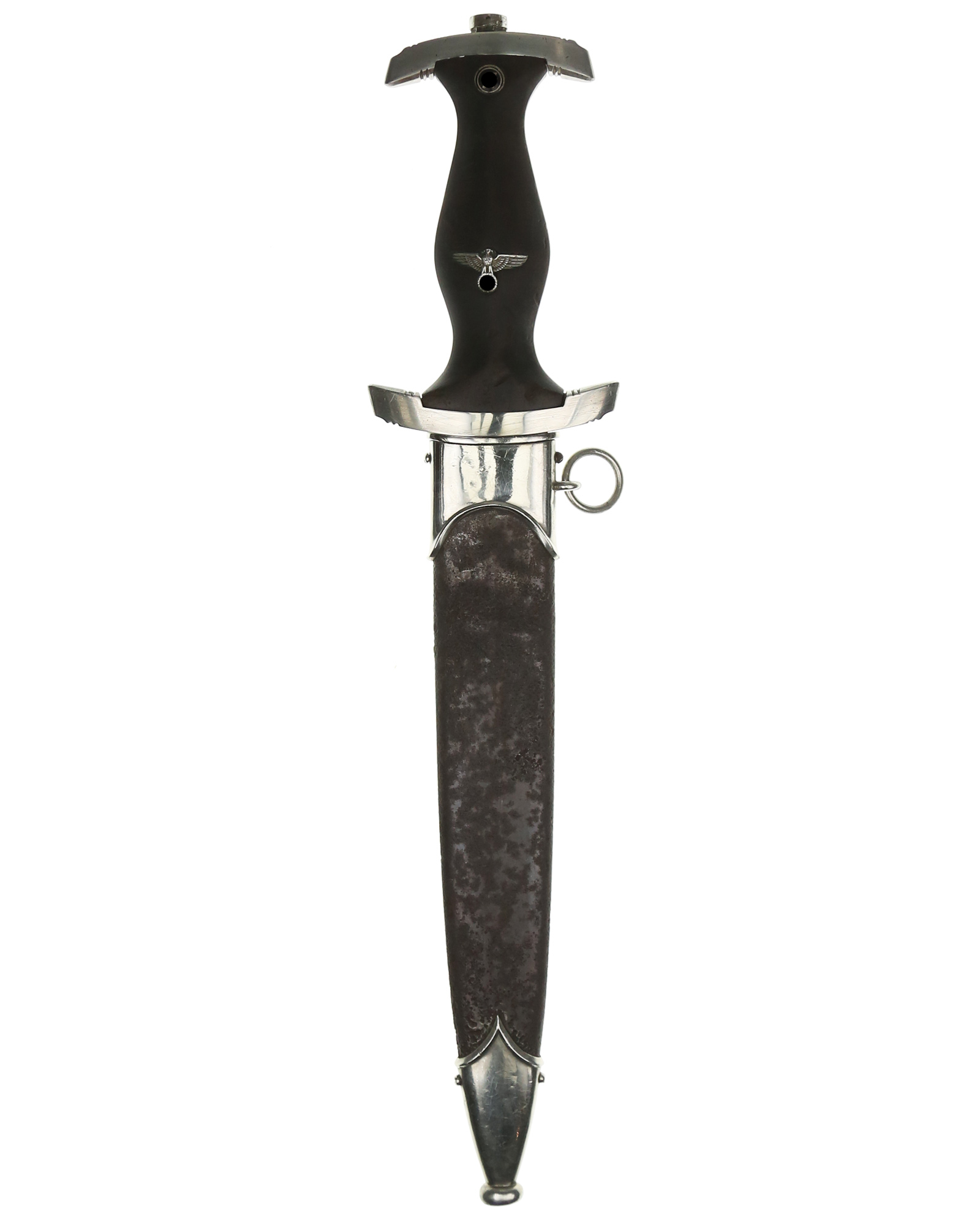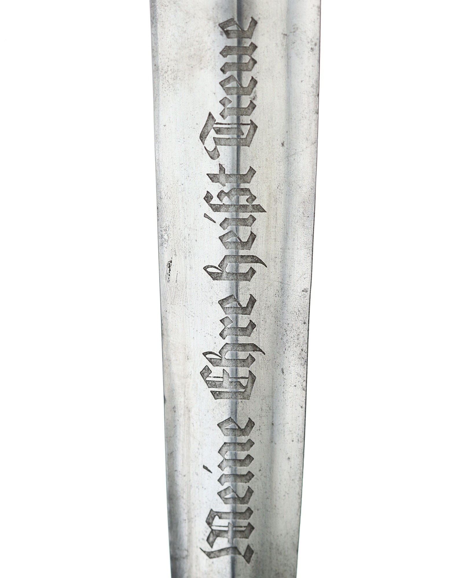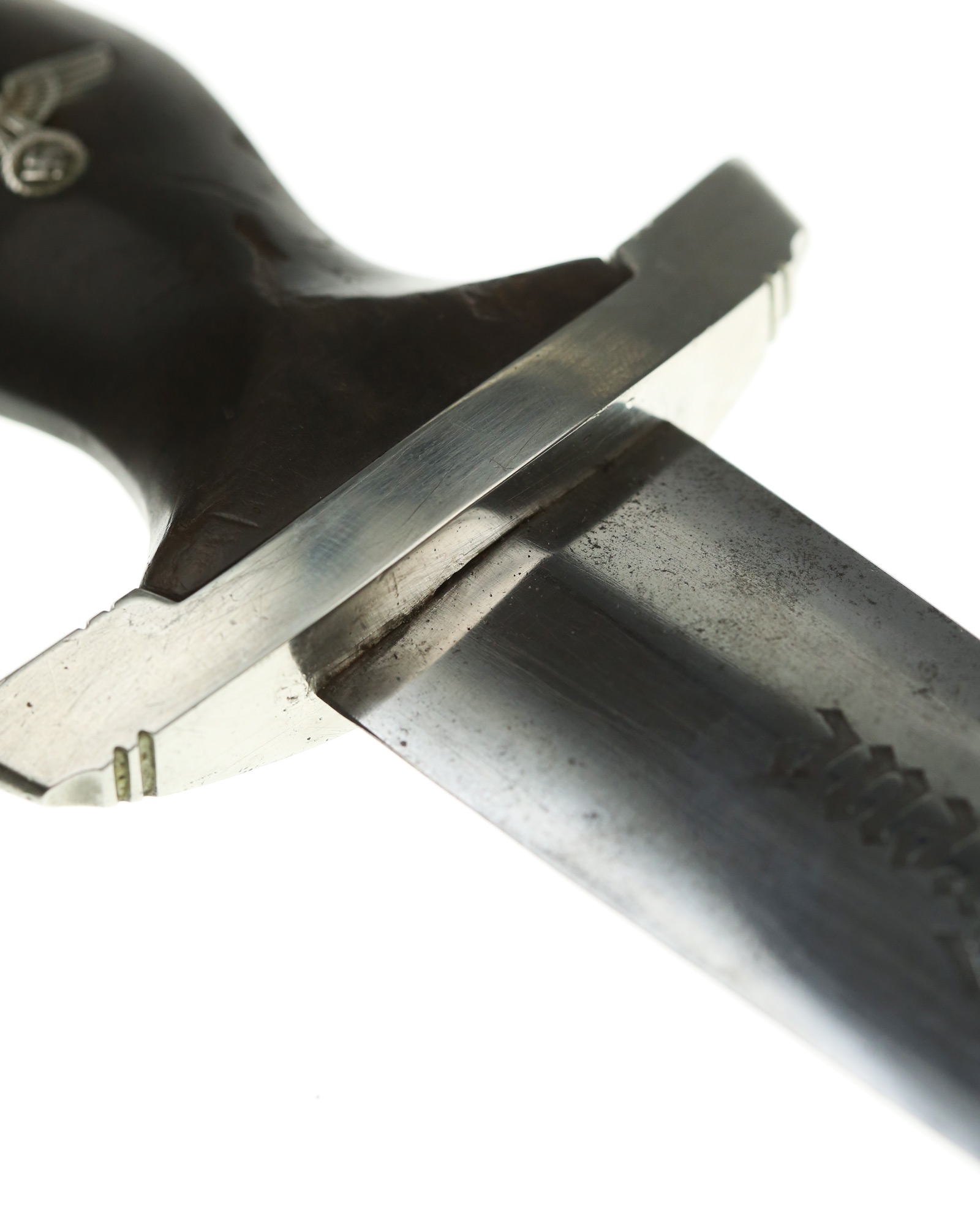 Dienstdolch M33 der Schutzstaffel [SS] in früher Fertigung. Der Hersteller auf der Klinge ist Robert Klaas, Solingen. Untere Parierstange mit der römischer III gekennzeichnet.