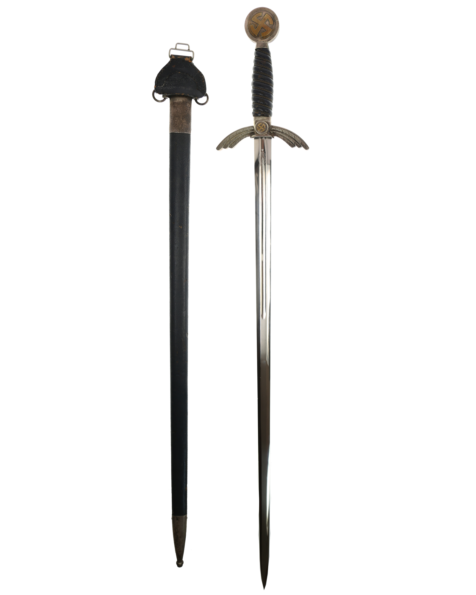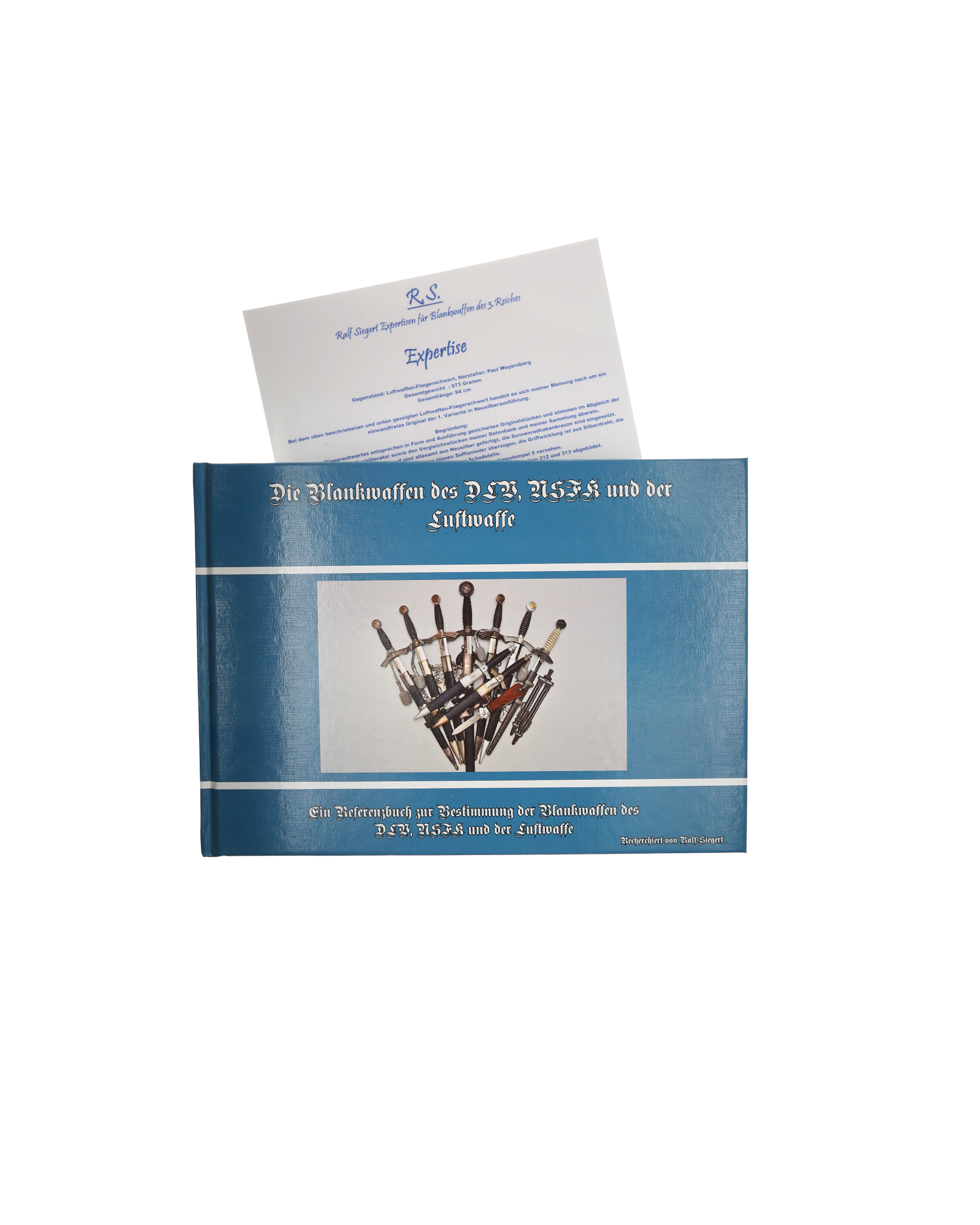Dieses Luftwaffenehrenschwert ist im neuem Buch von Ralf Siegert „Die Blankwaffen des DLV, NSFK und der Luftwaffe“ auf den Seiten: 294, 295, 312, 313 abgebildet. Eine Expertise von R. Siegert und ein Exemplar des Buches werden mitgeliefert.