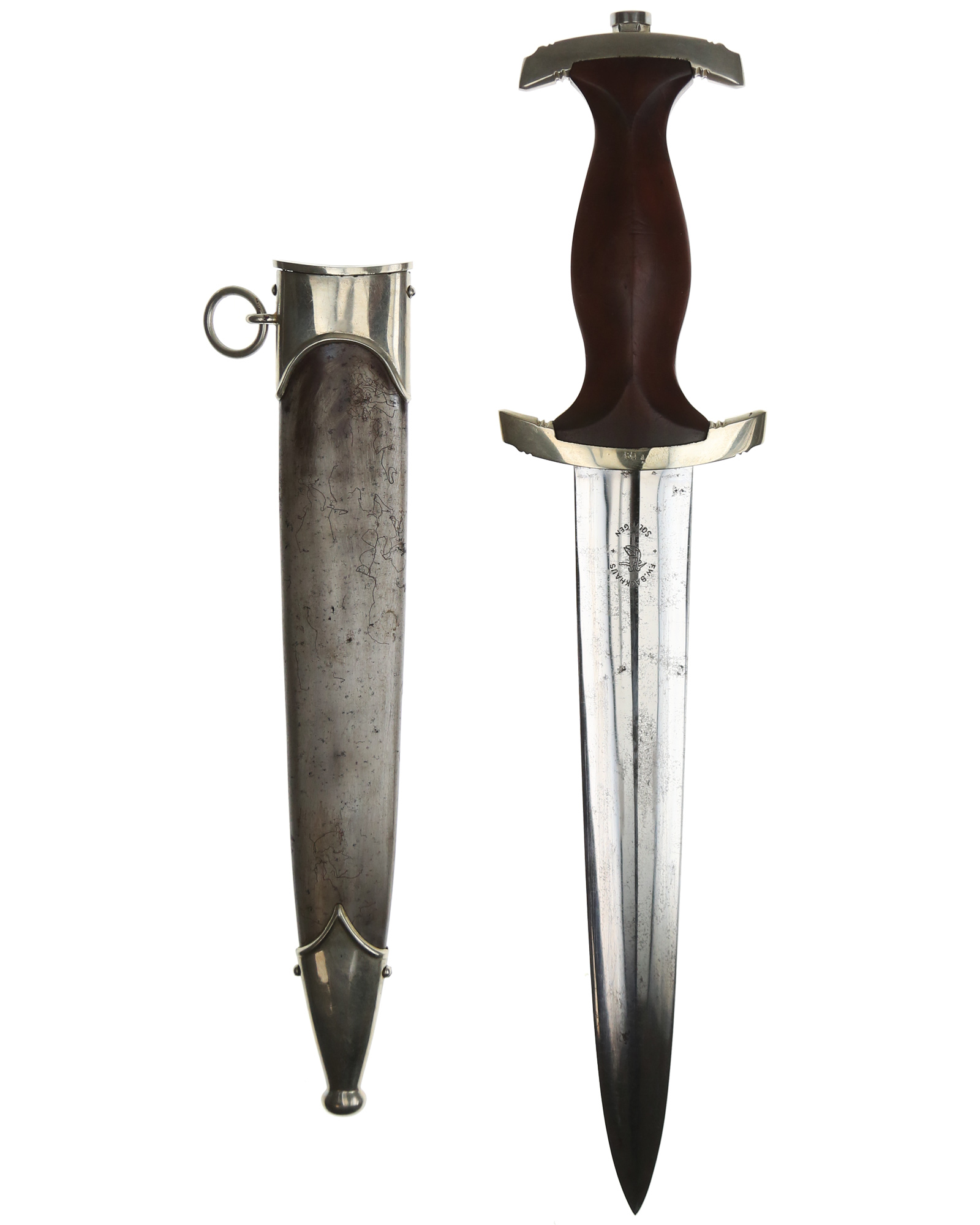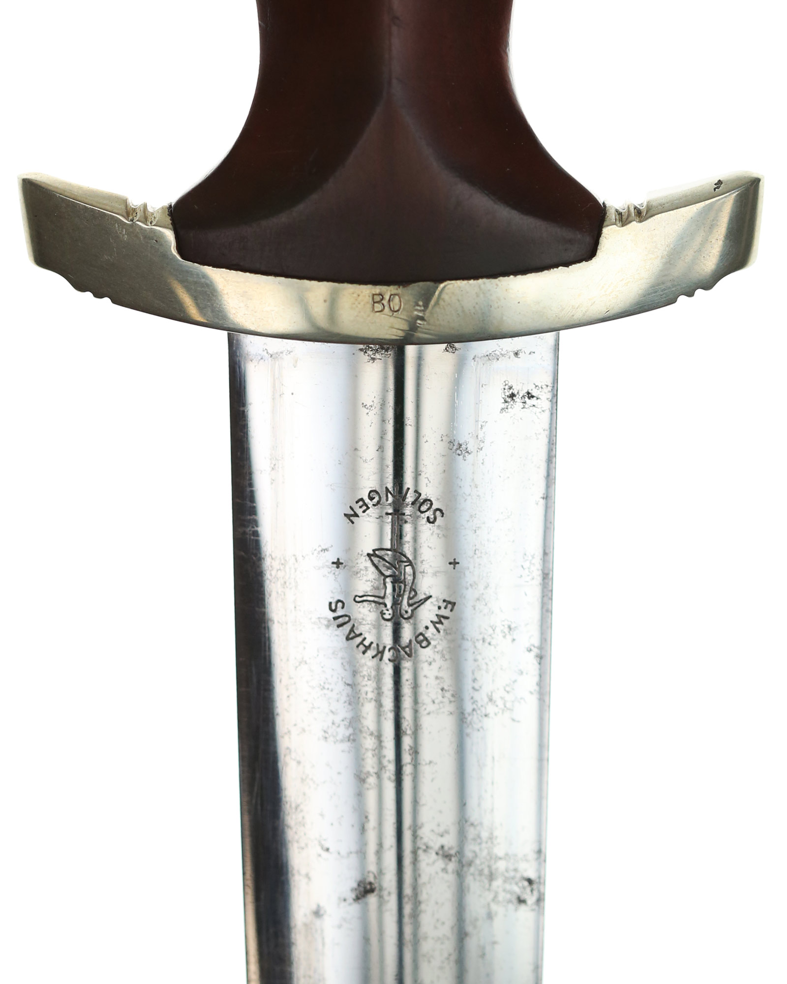 Dienstdolch der Sturmabteilung [SA] in früher Fertigung 1933-1935, mit seltenem Hersteller: F. W. Backhaus, Solingen. Untere Parierstange mit passender Gruppenstempelung BO (Bayrische Ostmark).