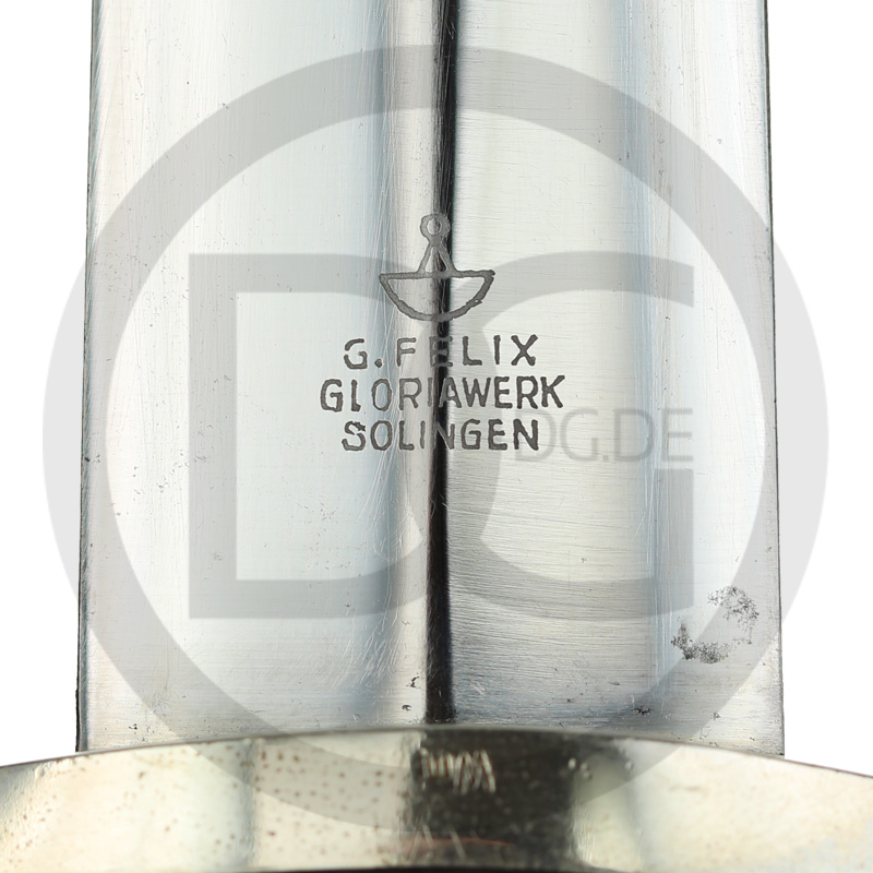 Die Felix Gustav (GLORIAWERK), Stahlwarenfabrik, wurde 1843 in Solingen gegründet. Das Unternehmen spezialisierte sich auf die Produktion von Stahlwaren und erweiterte während der NS-Zeit auf Blankwaffen, insbesondere SA-Dienstdolche [M1933]. Im Jahr 1935 erhielt es den RZM-Code M7/28, der für die Herstellung politischer Dolche vergeben wurde. Der Sitz in Solingen unterstreicht die Tradition der Region als Zentrum für Klingenproduktion in Deutschland. Reichsgau (SA): Nm, Wm.