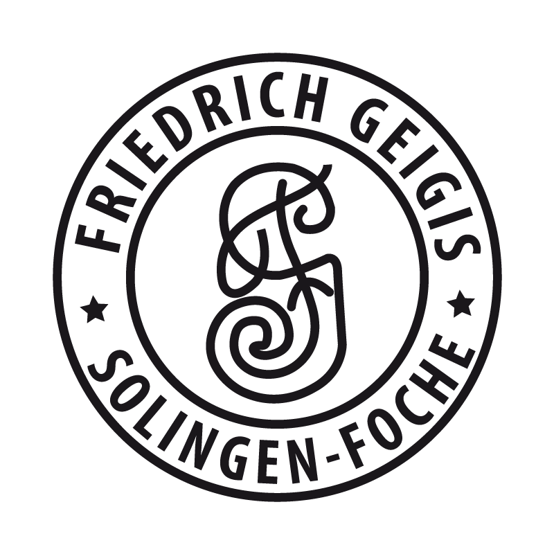 Das Logo von Friedrich Geigis zeigt den Schriftzug „Friedr. Geigis Solingen-Foche“ in klarer, gestreckter Schrift, oft begleitet von der RZM M7/64-Markierung auf den Klingen der Dolche. Das Design vermittelt eine klassische Ästhetik und wurde typischerweise auf Klingen geätzt.