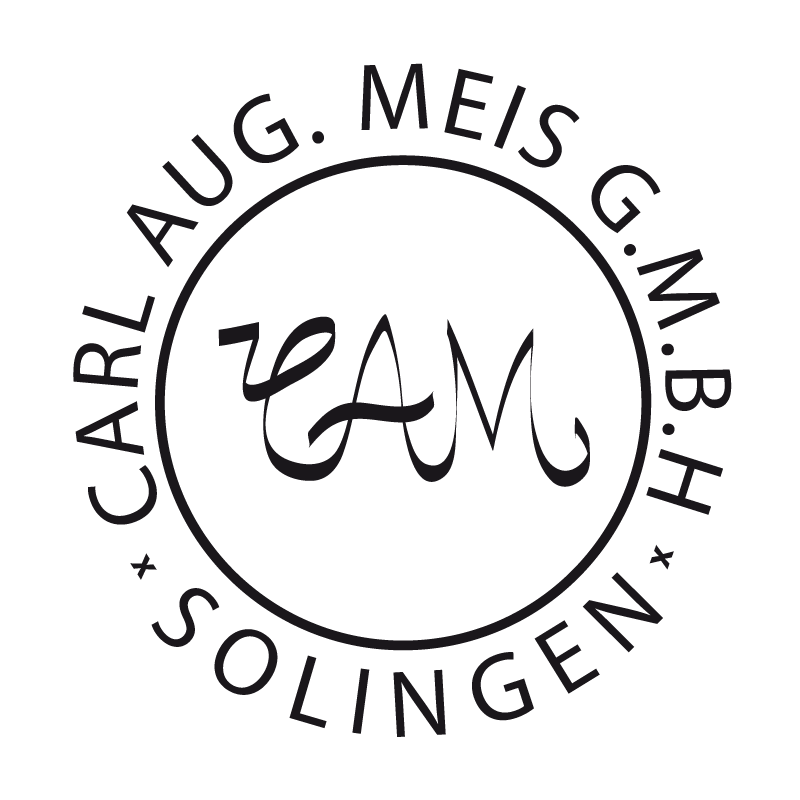 Das Logo von Carl August Meis bestand typischerweise aus dem Text „Carl Aug. Meis G.m.b.H. Solingen“ oder „CAM“, geätzt auf der Klinge. Dieses einfache Markenzeichen unterstrich die funktionale Ausrichtung des Herstellers und machte die Produkte in der Sammlerszene erkennbar.