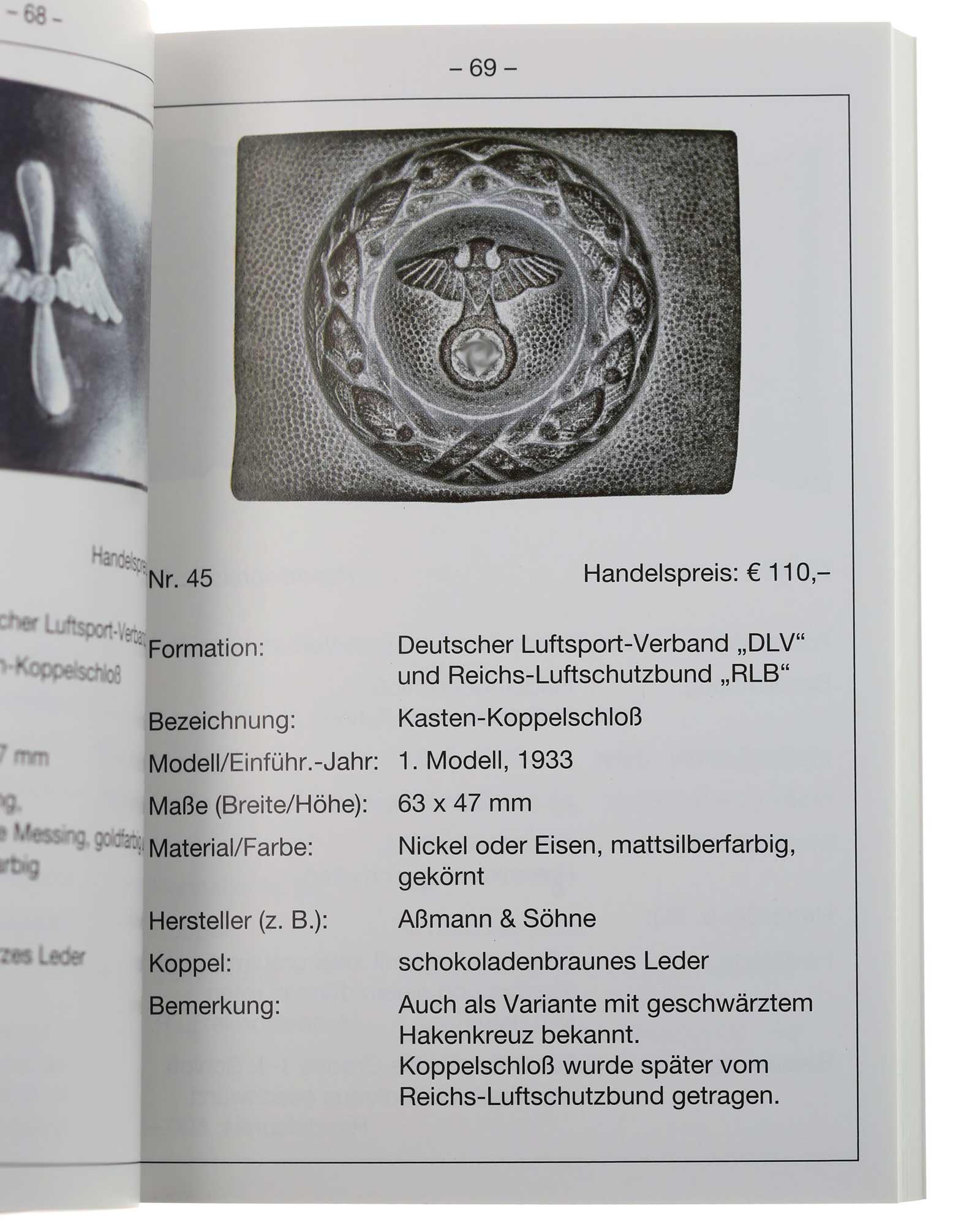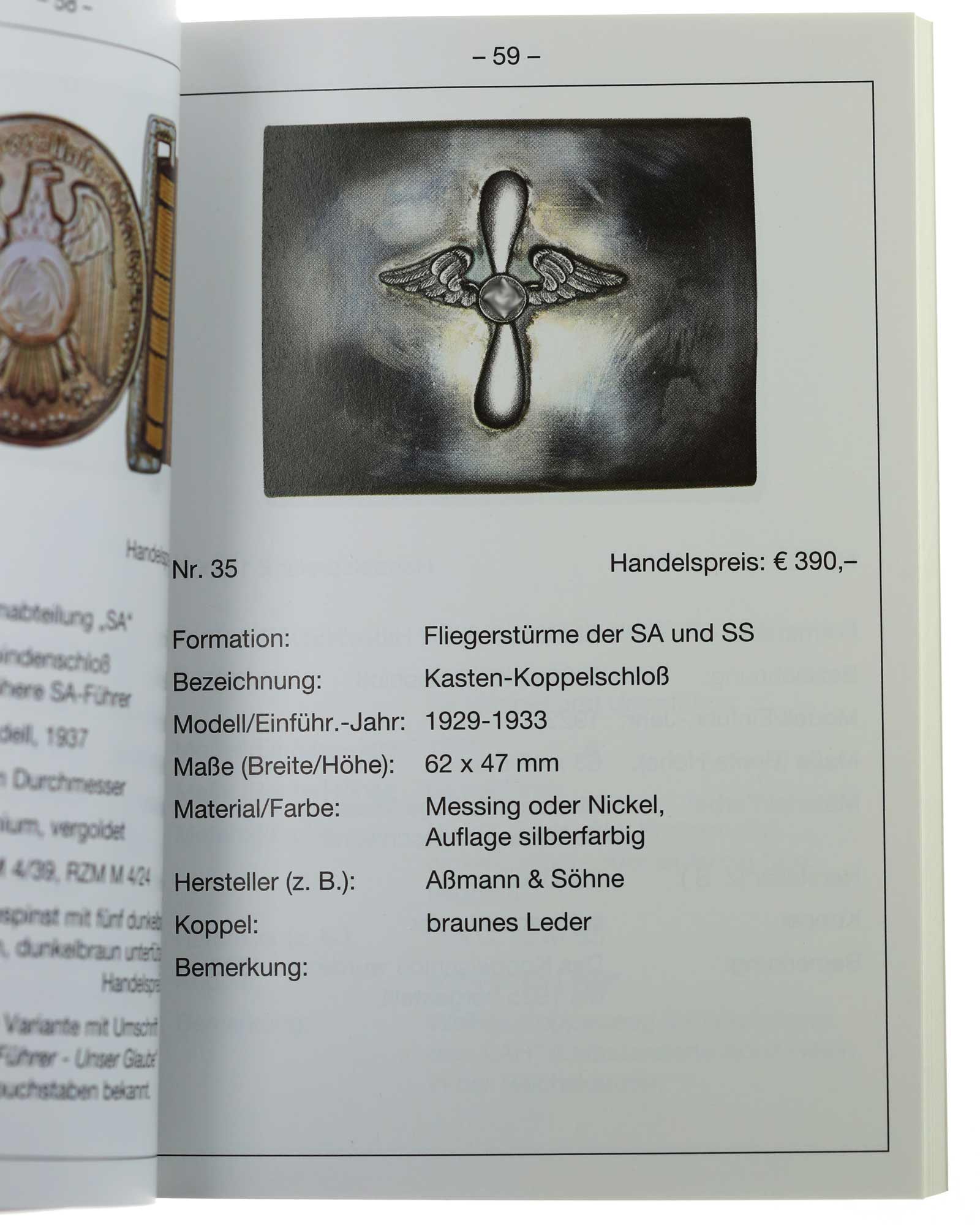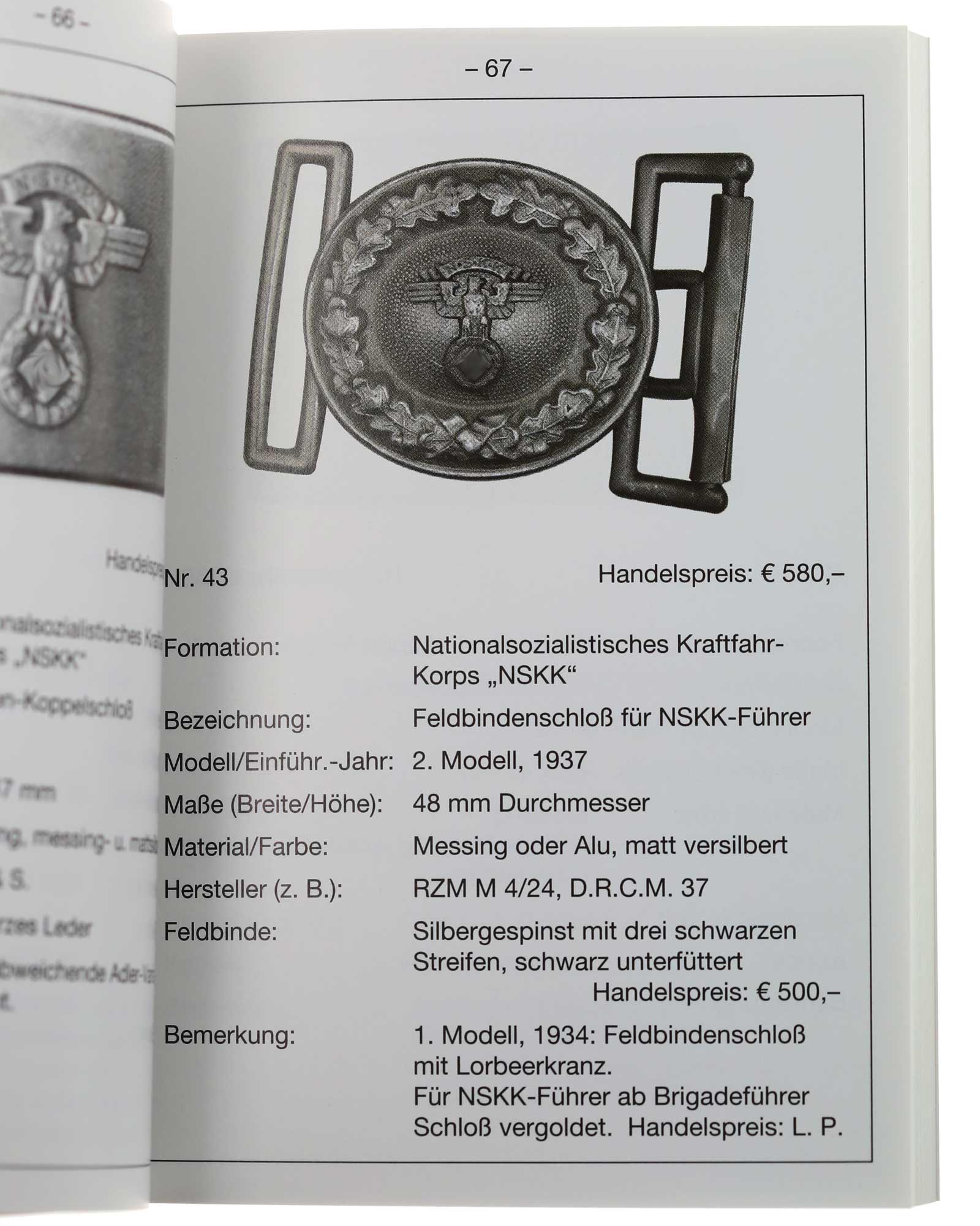 Format DIN A6, 232 Seiten, mehr als 200 Fotos in Farbe mit ca. 260 Handelspreisen der Koppelschlösser, Feldbindenschlösser sowie Feldbinden von 1919-1945 für militärische, politische, paramilitärische, staatliche und zivile Formationen.