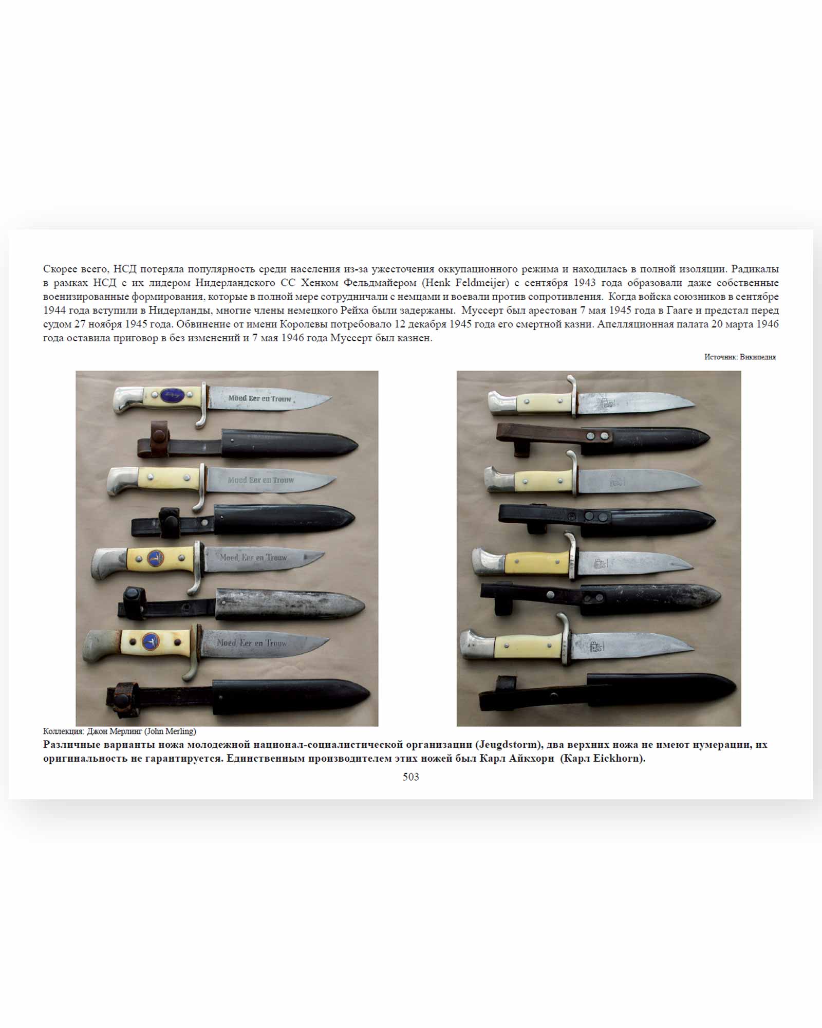 Gründlich bis ins Detail recherchiert, zeigt der Autor in diesem Buch die Varianten der Blankwaffen dieser beiden Organisationen und geht auch hier wieder auf die Kopien dieser Dolche ein. Mit hunderten Fotos in Farbe und schwarz-weiß, Trägerfotos, Dokumenten, Recherchen und Dokumenten zu ehemaligen Trägern und Hintergrundinformationen und Daten zu den Schulen der NPEA. Erstmalig und ausführlich werden auch die Fahrtenmesser ausländischer Jugendorganisationen wie z.B. des Holländischen „Jeugdstorm“ behandelt.
