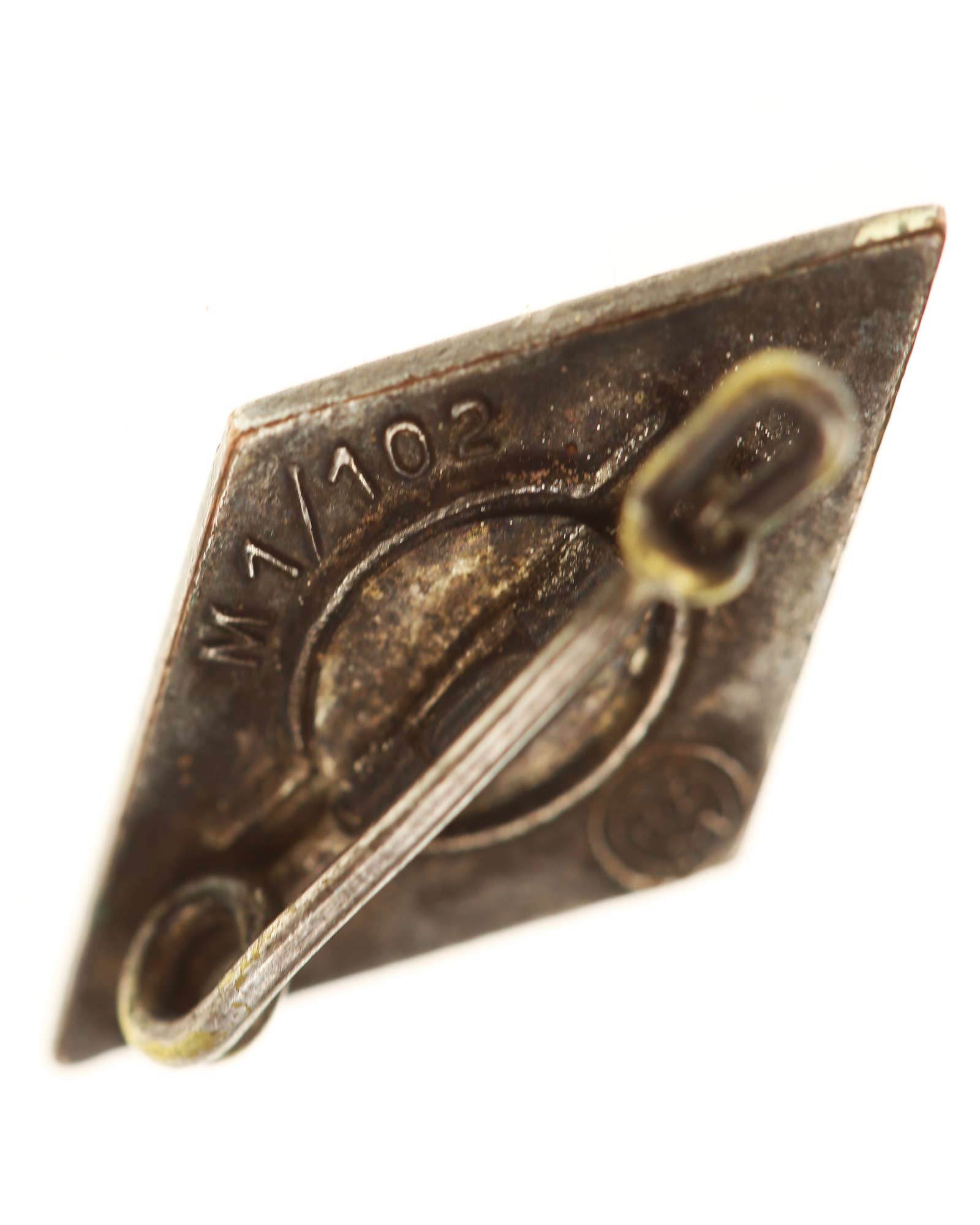 Hitlerjugend [HJ] Mitgliedsabzeichen mit dem Hersteller RZM M1/102 (Frank & Reif Stuttgart) auf der Rückseite und RZM. Gesamtgewicht 3 g. Abmessungen: 24,96 x 14,36 mm.
