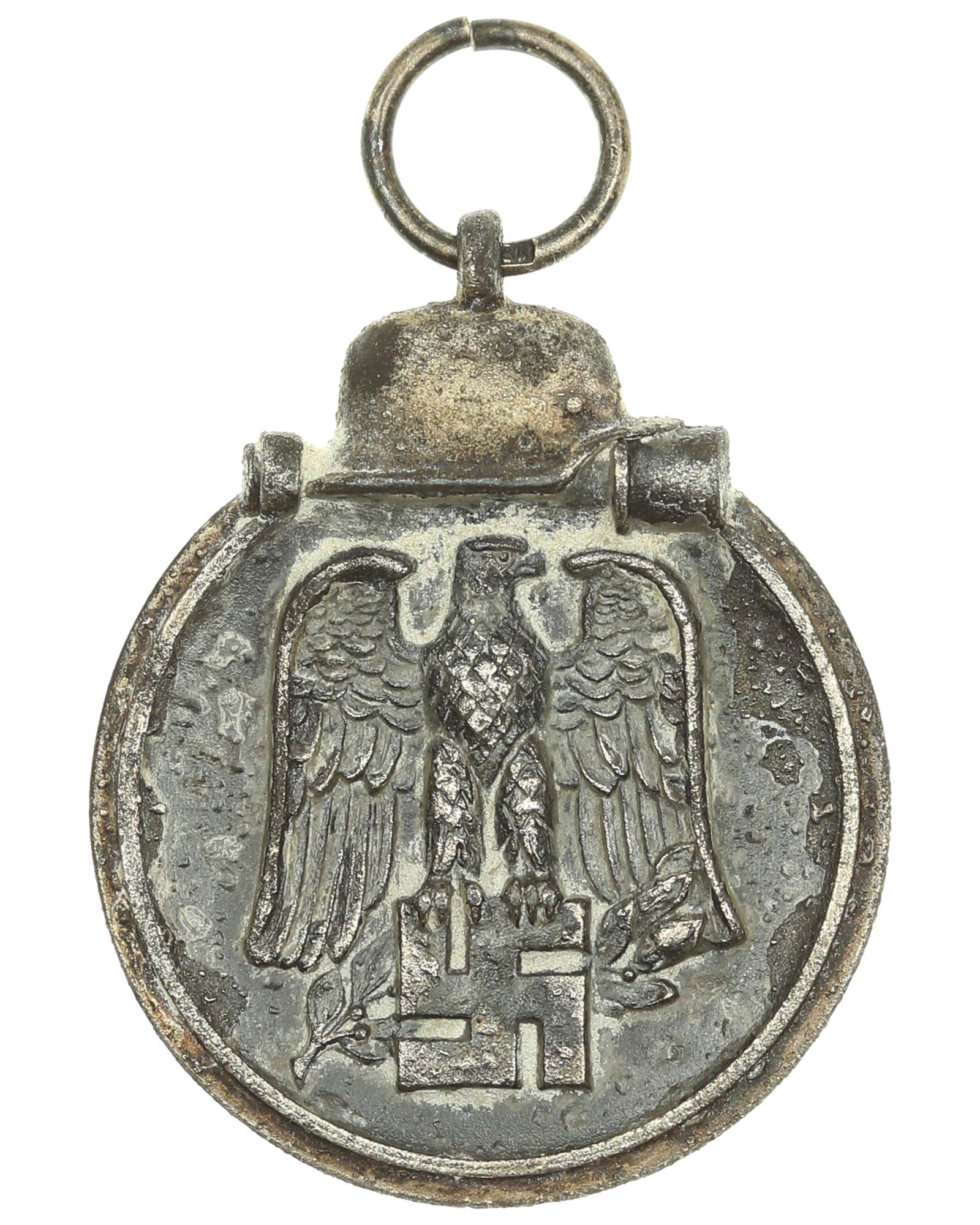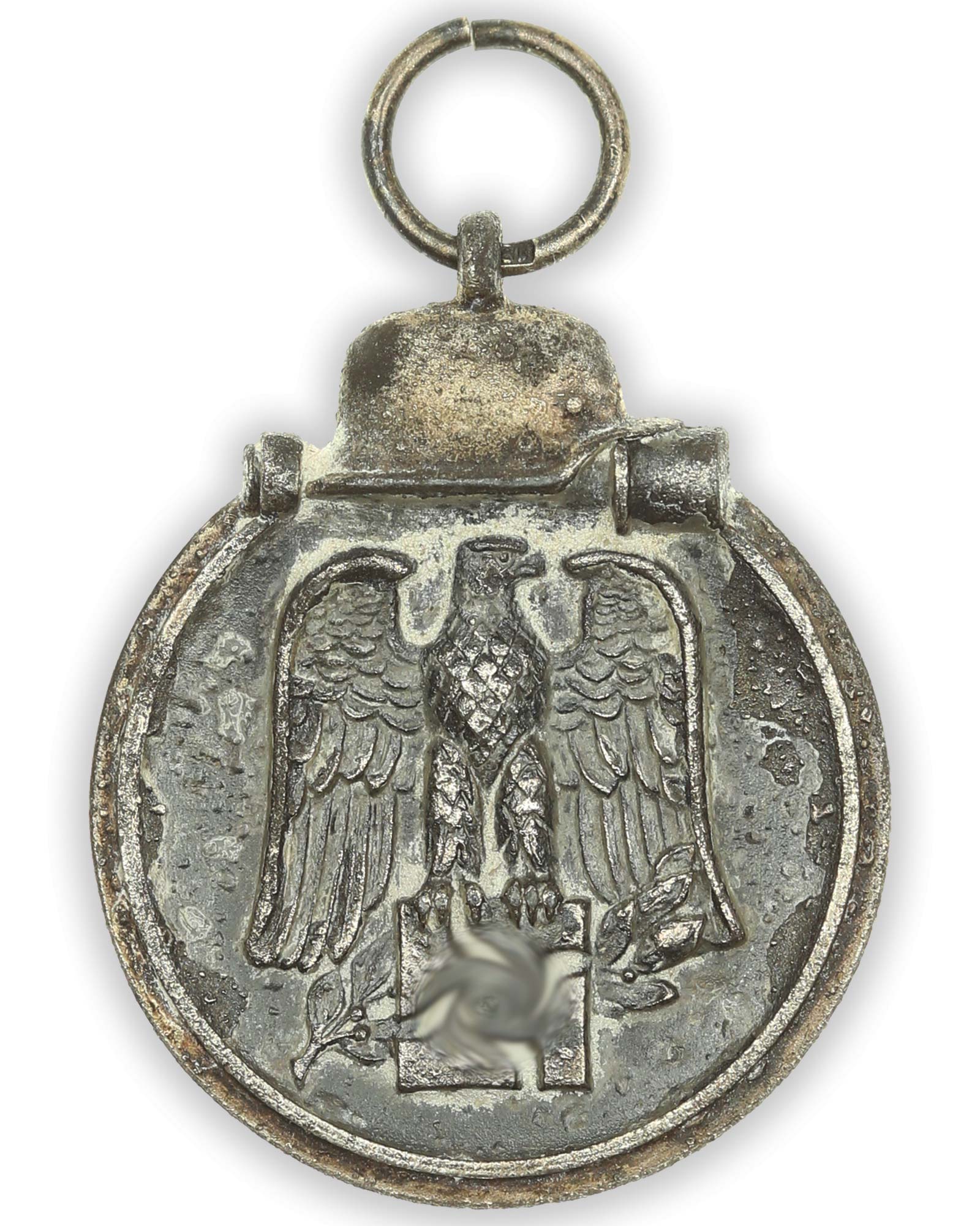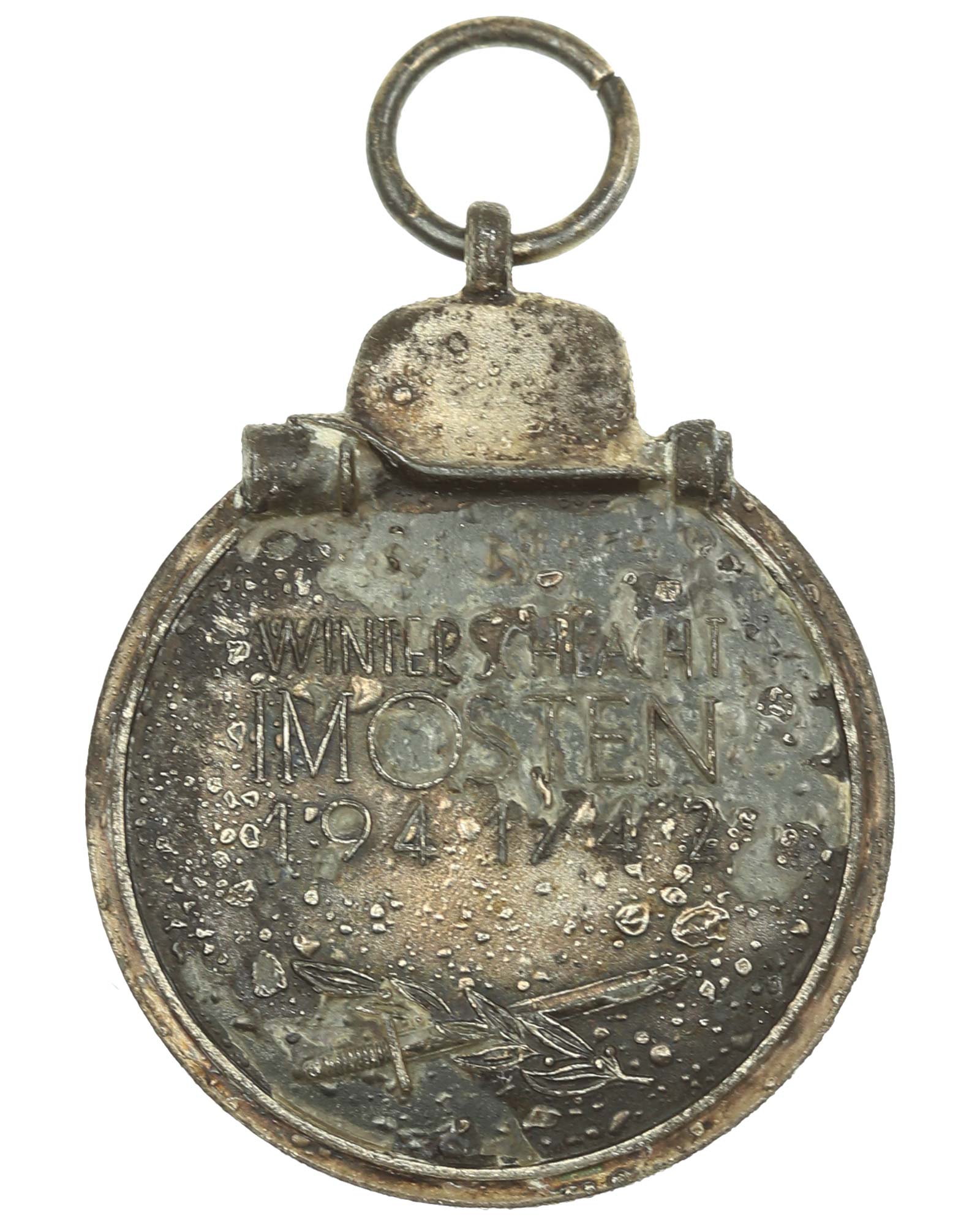 Die Ostmedaille wurde am 26.5.1942 gestiftet als Anerkennung Für die Bewährung im Kampf gegen den bolschewistischen Feind und den russischen Winter innerhalb des Zeitraumes vom 15.11.1941- 15.4.1942. Herstellermarkierug: Karl Wurster Markneukirchen (18). Gesamtgewicht 16 g. Abmessungen: 35,38 x 44,00 mm.