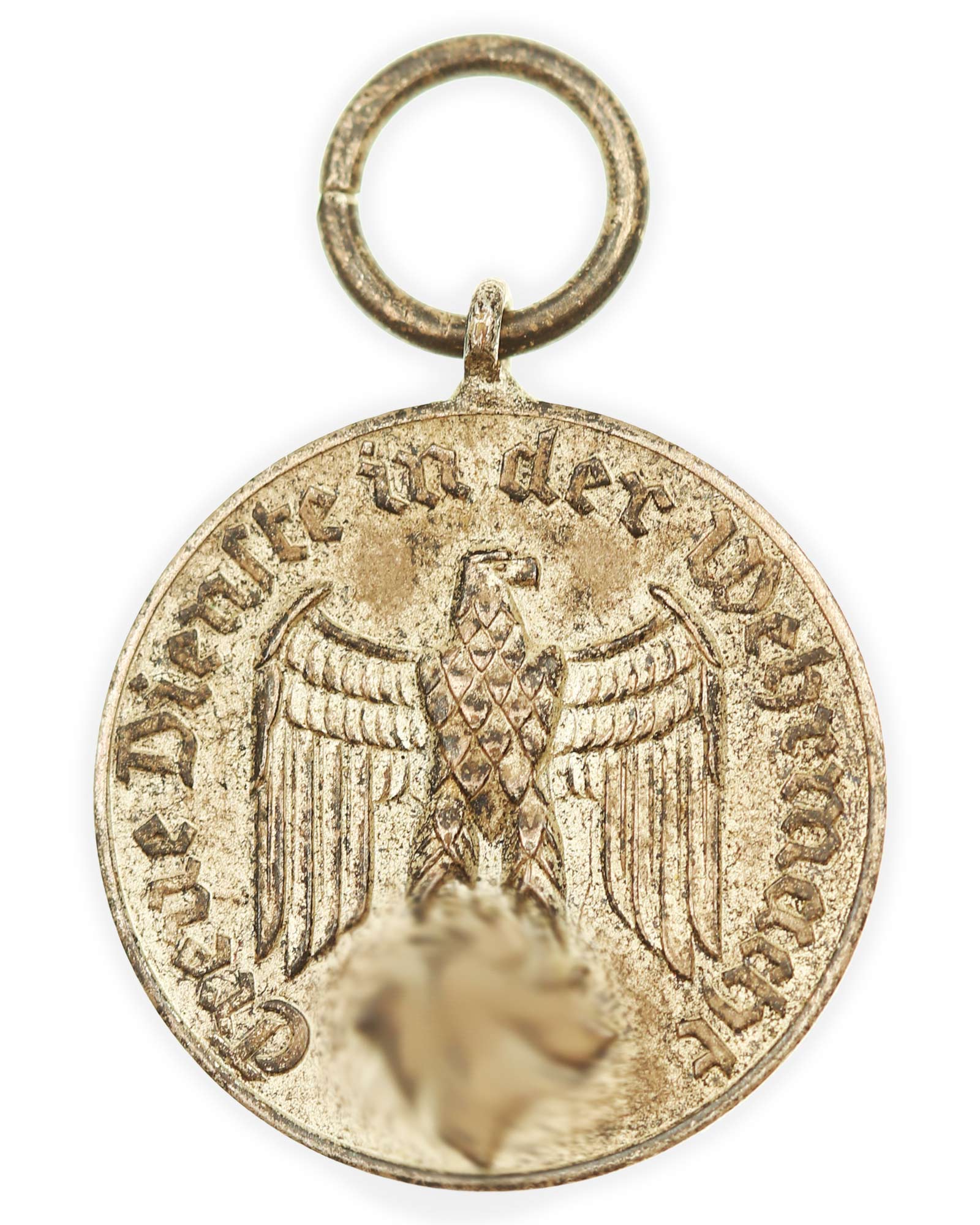 Wehrmacht-Dienstauszeichnung für 4 Jahre, Treue Dienste in der Wehrmacht. Gesamtgewicht 12 g. Abmessungen: 31 mm.