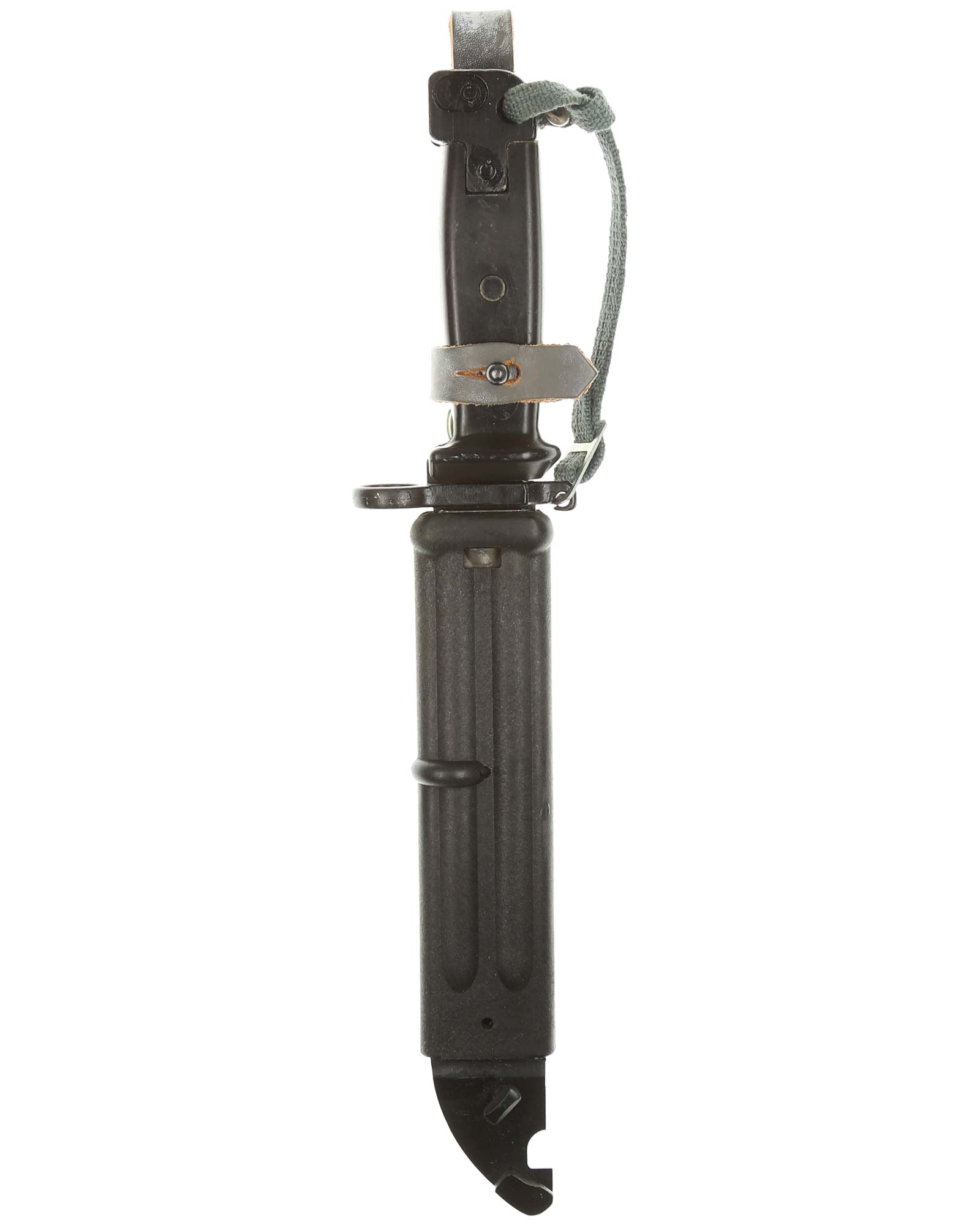 AK Bajonett Typ 6Ch4 (Schwarz) mit Scheide. Griff aus Plastik. Gesamtlänge 33,0 cm. Einschneidige Klinge. Das Bajonett ist gekennzeichnet (267218, 1940/4). Gesamtgewicht 449 g. Gesamtlänge: 330 mm. Zustand 1-.