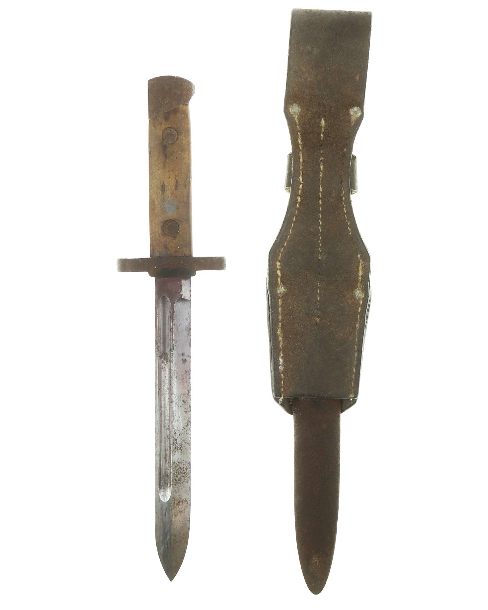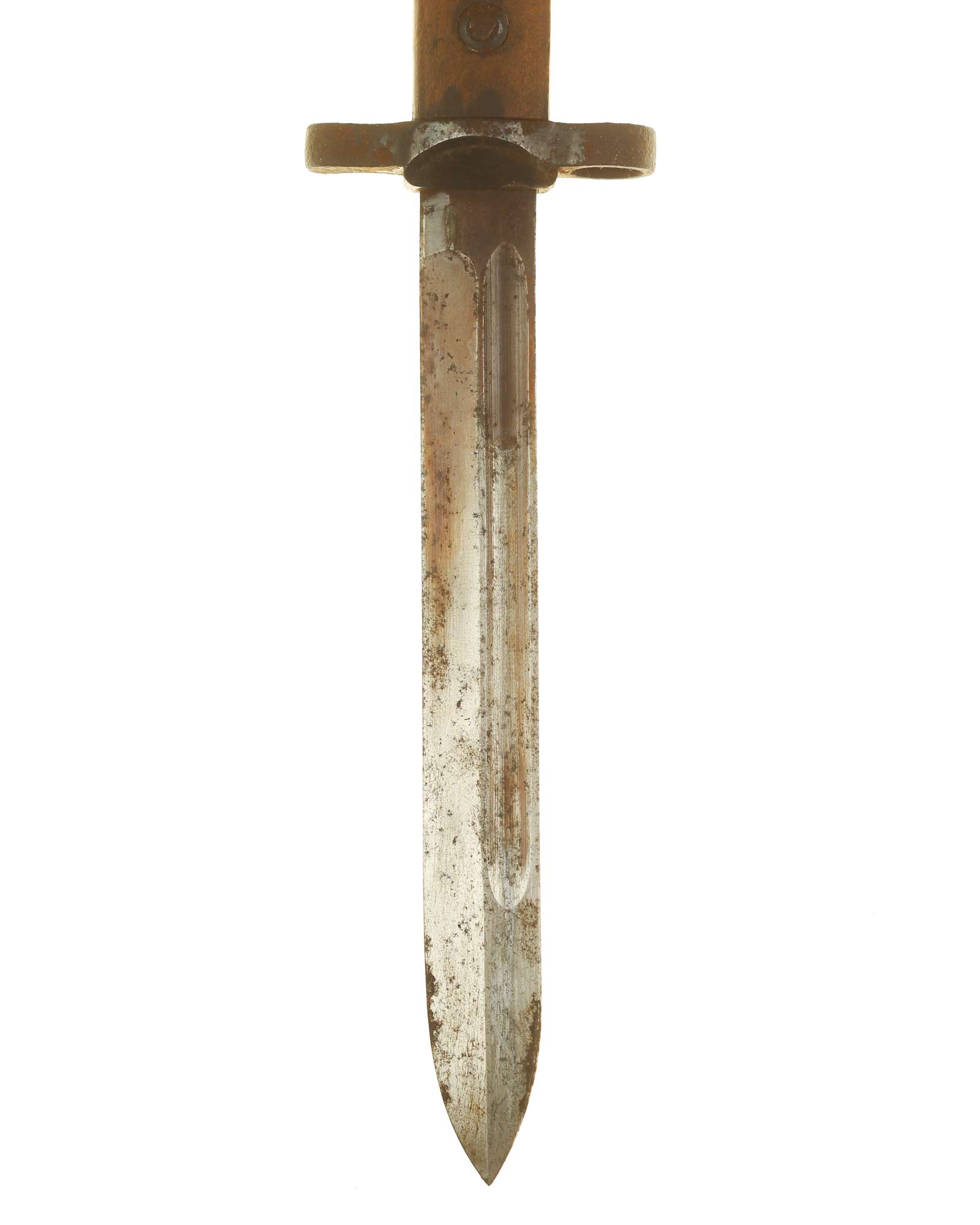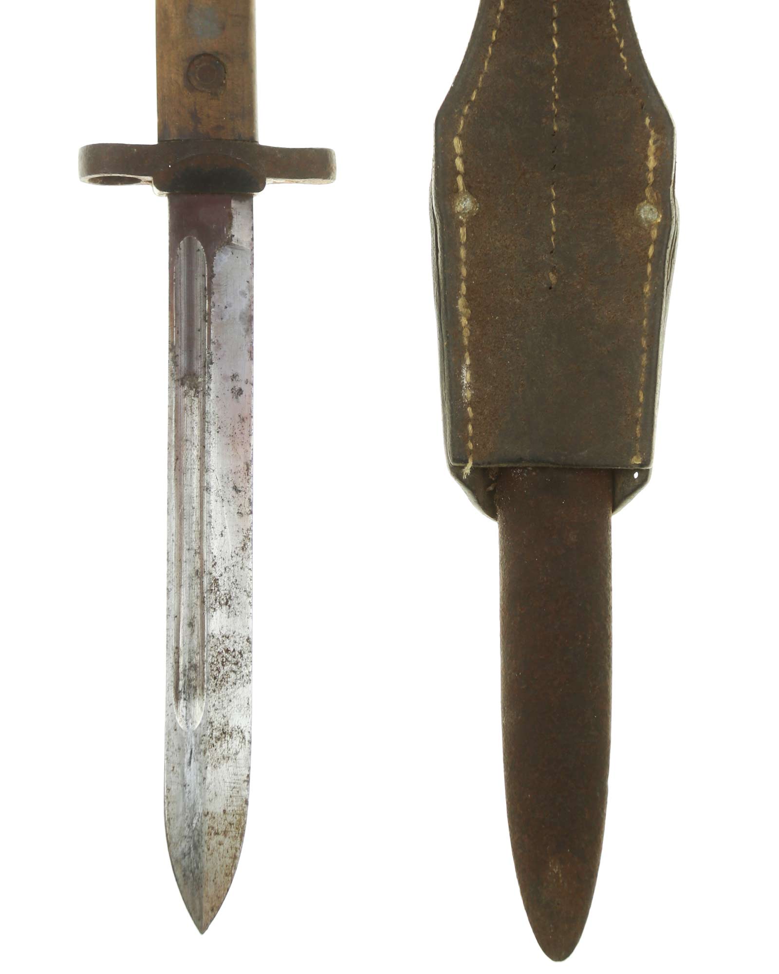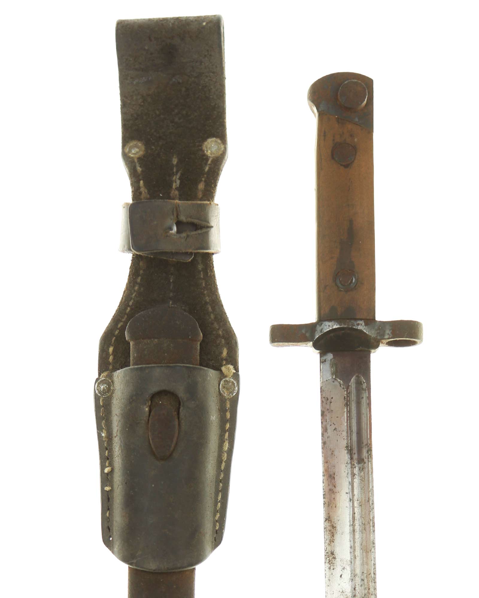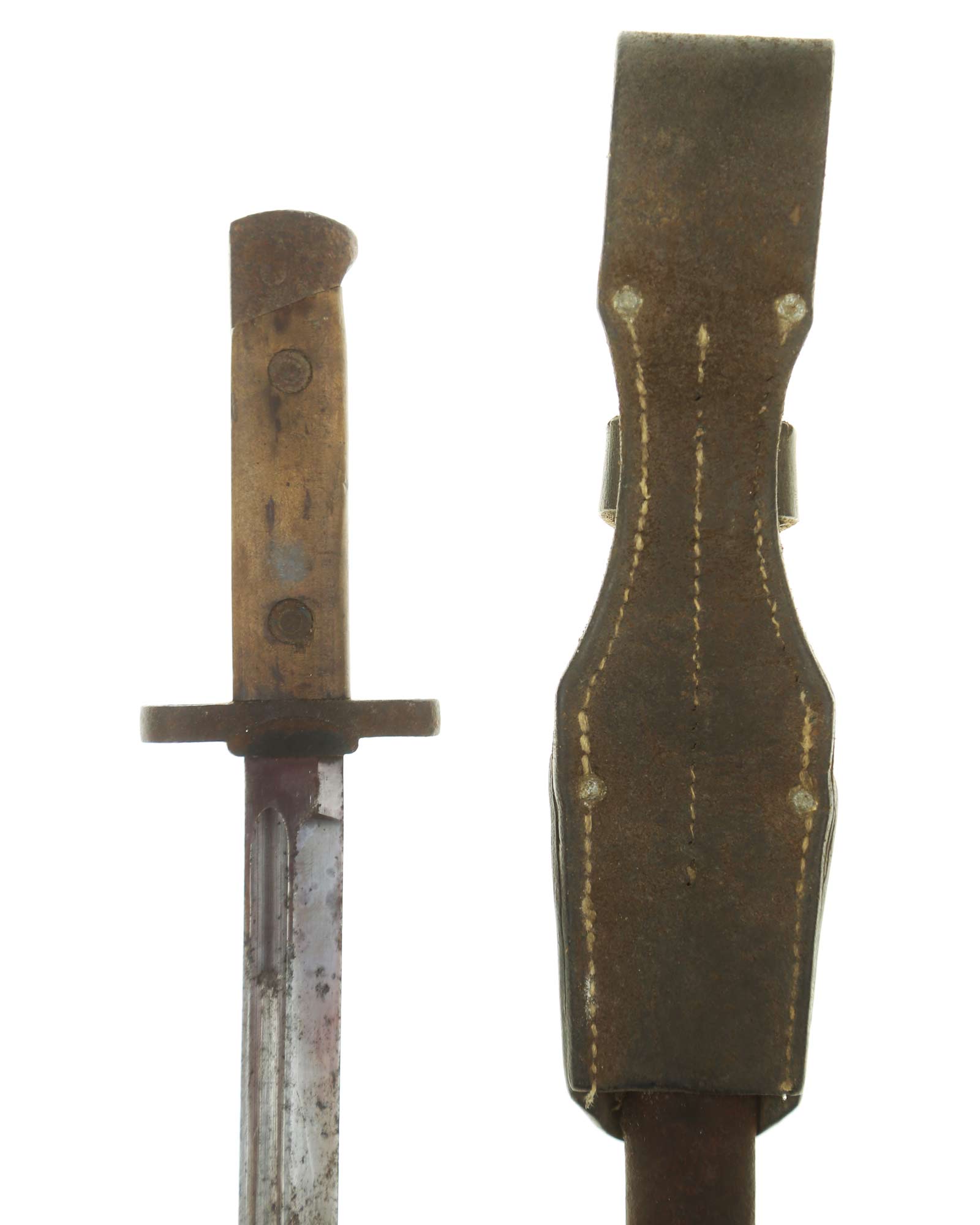 Bajonett Italien CARCANO Modell 1891 mit Leder-Koppelschuh. Gesamtlänge 31,2 cm.