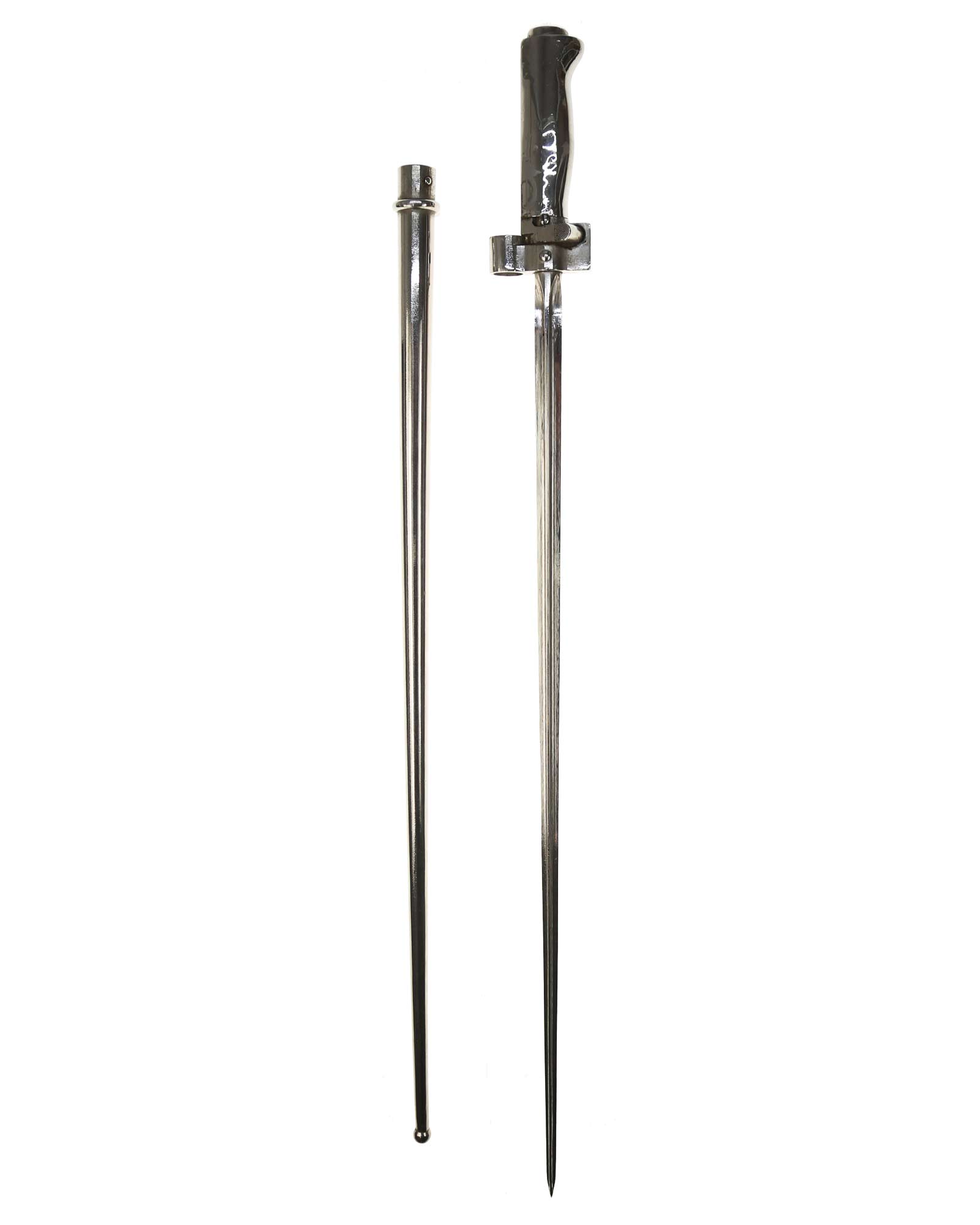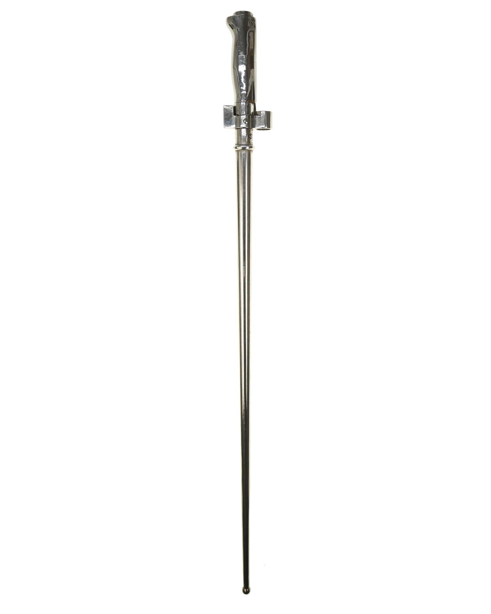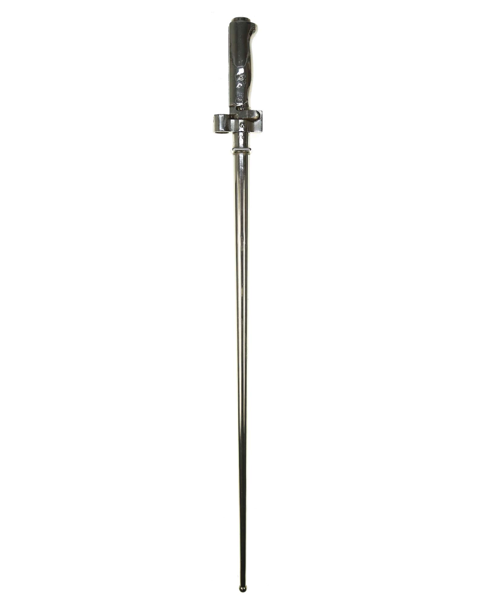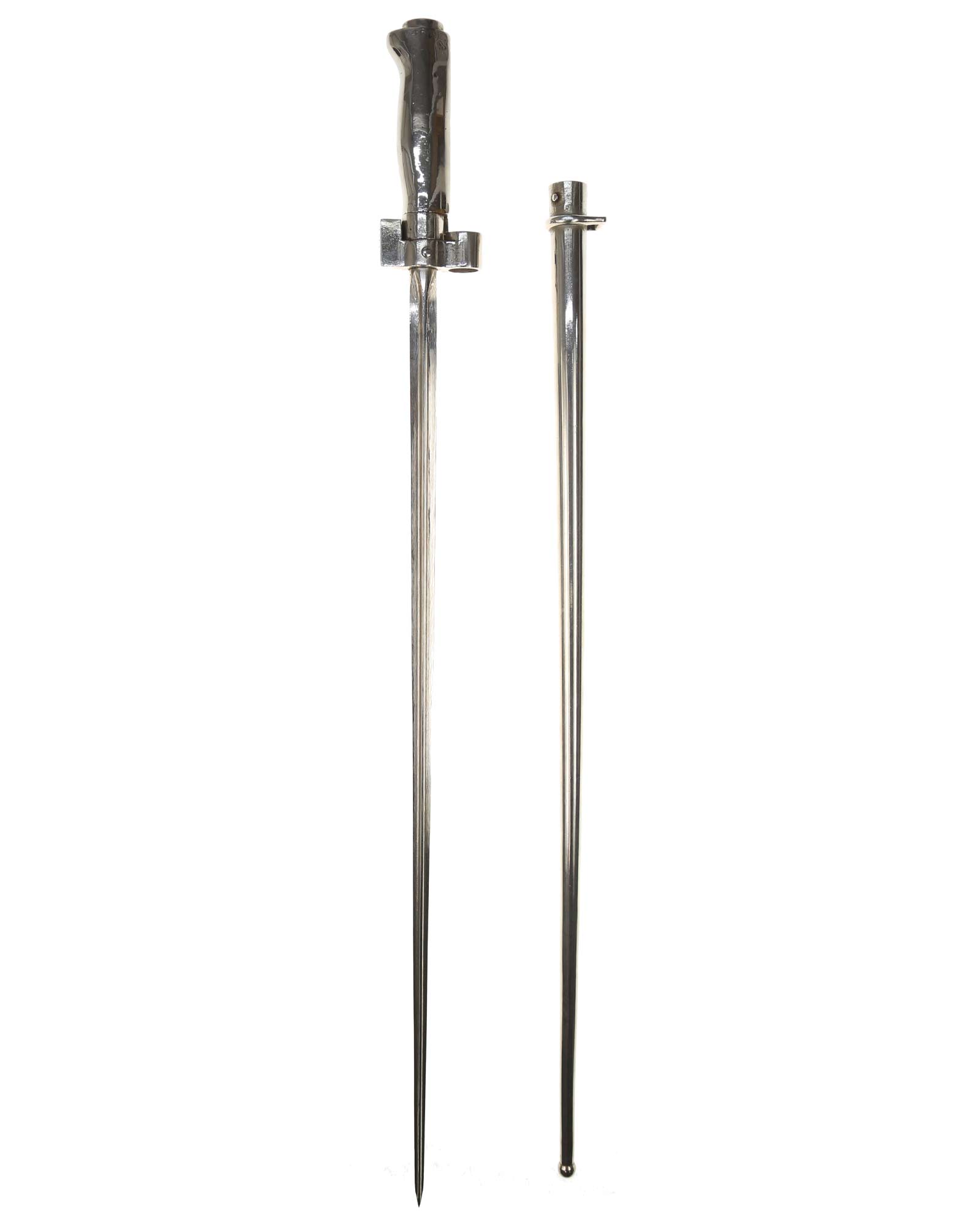 Frankreich Lebel-Bajonett M1886-15, Seitengewehr zum Infantriegewehr System Lebel. Griff mit stählerner Aufpflanzeinrichtung, im Querschnitt kreuzförmige spitz zulaufende Klinge, stählerne Rundscheide mit fester Trageöse.