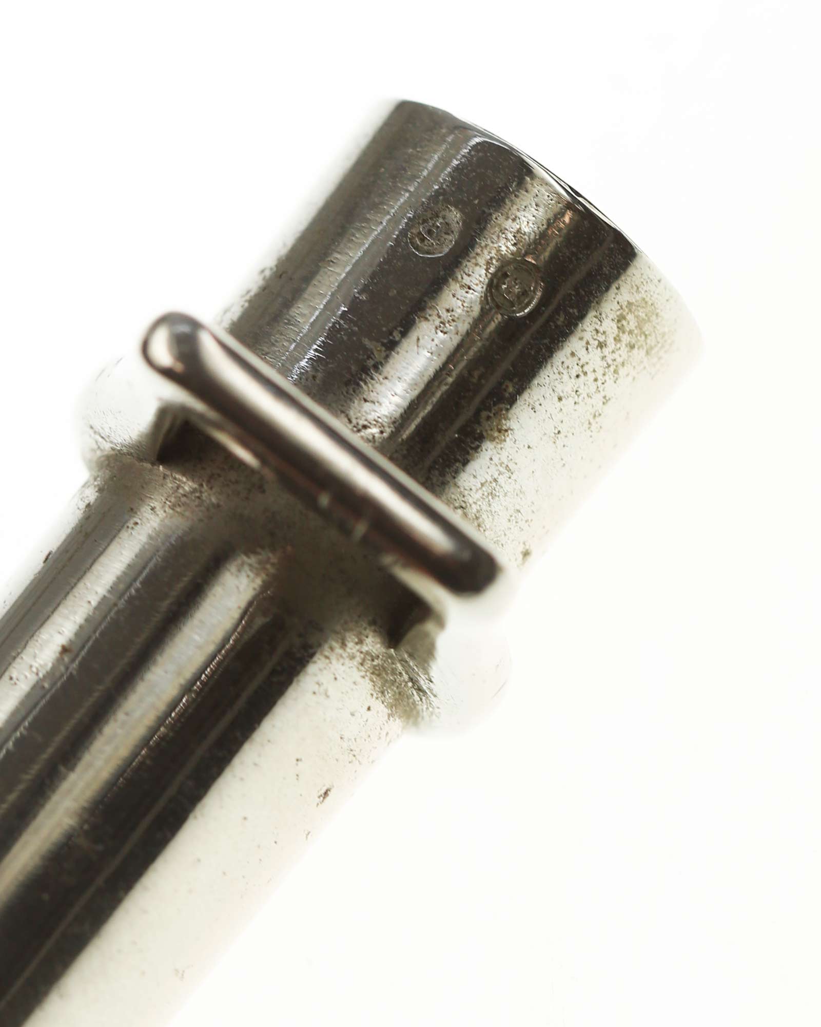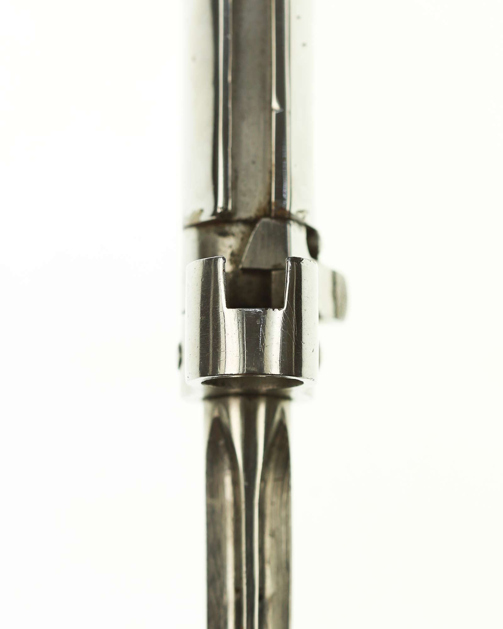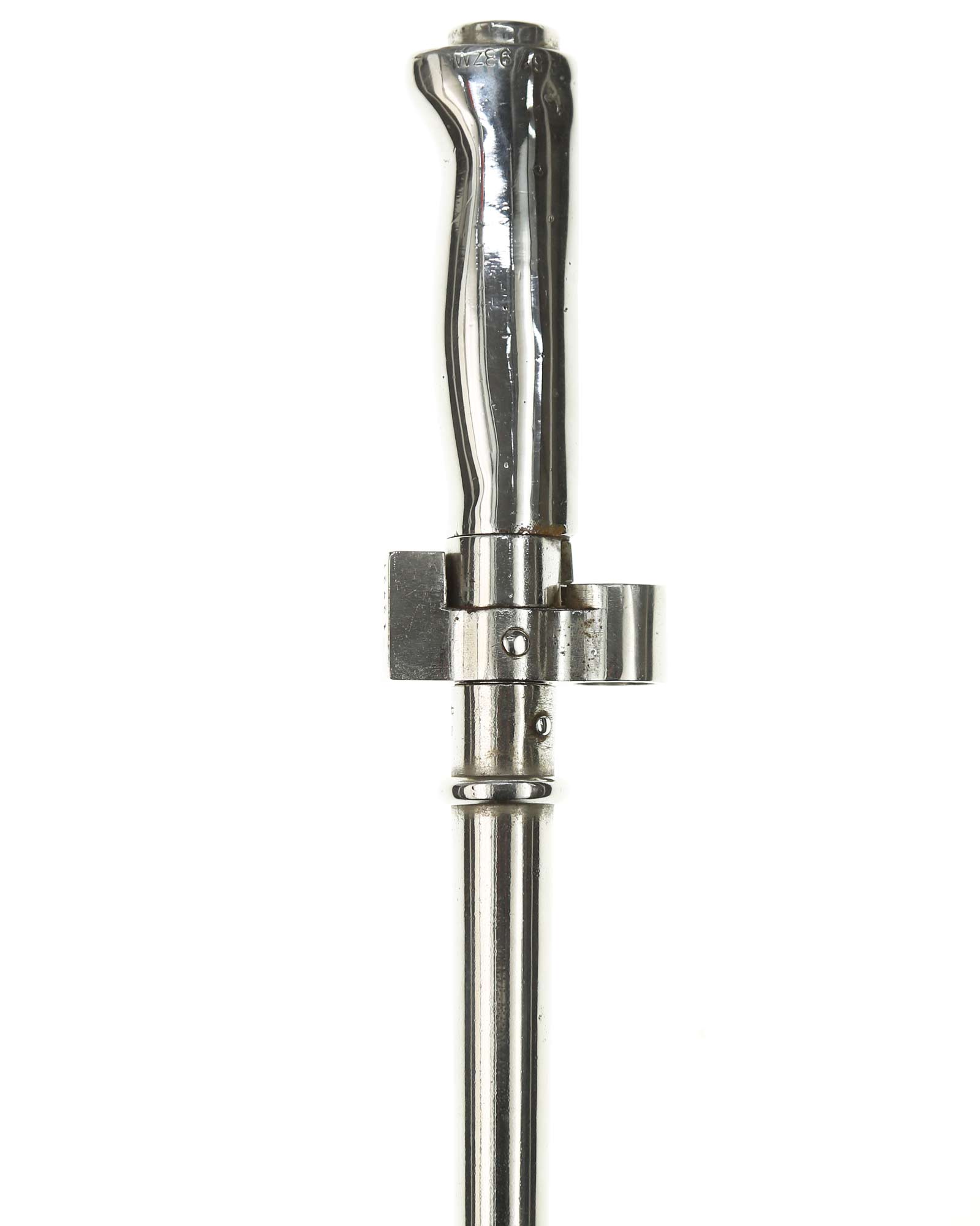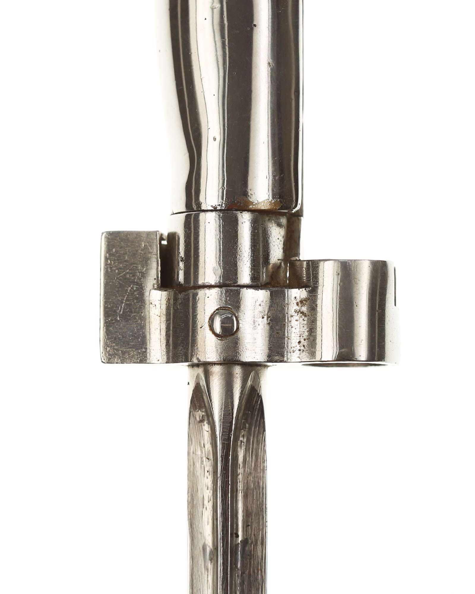 Frankreich Lebel-Bajonett M1886-15, Seitengewehr zum Infantriegewehr System Lebel. Griff mit stählerner Aufpflanzeinrichtung, im Querschnitt kreuzförmige spitz zulaufende Klinge, stählerne Rundscheide mit fester Trageöse.