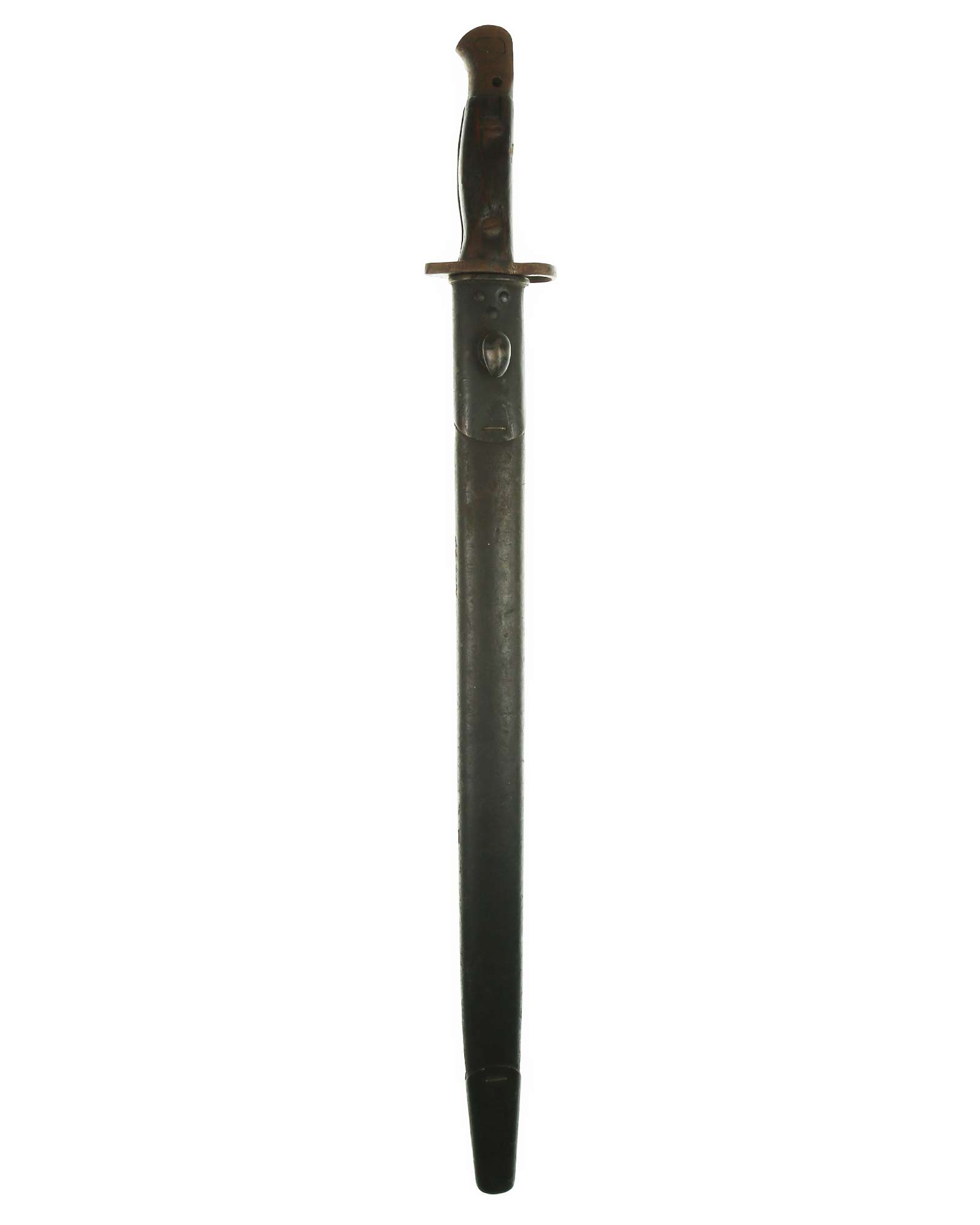 Großbritannien Seitengewehr P 1907. Die Scheide ist aus Leder mit zwei Beschlägen. Gesamtlänge 58,1 cm.