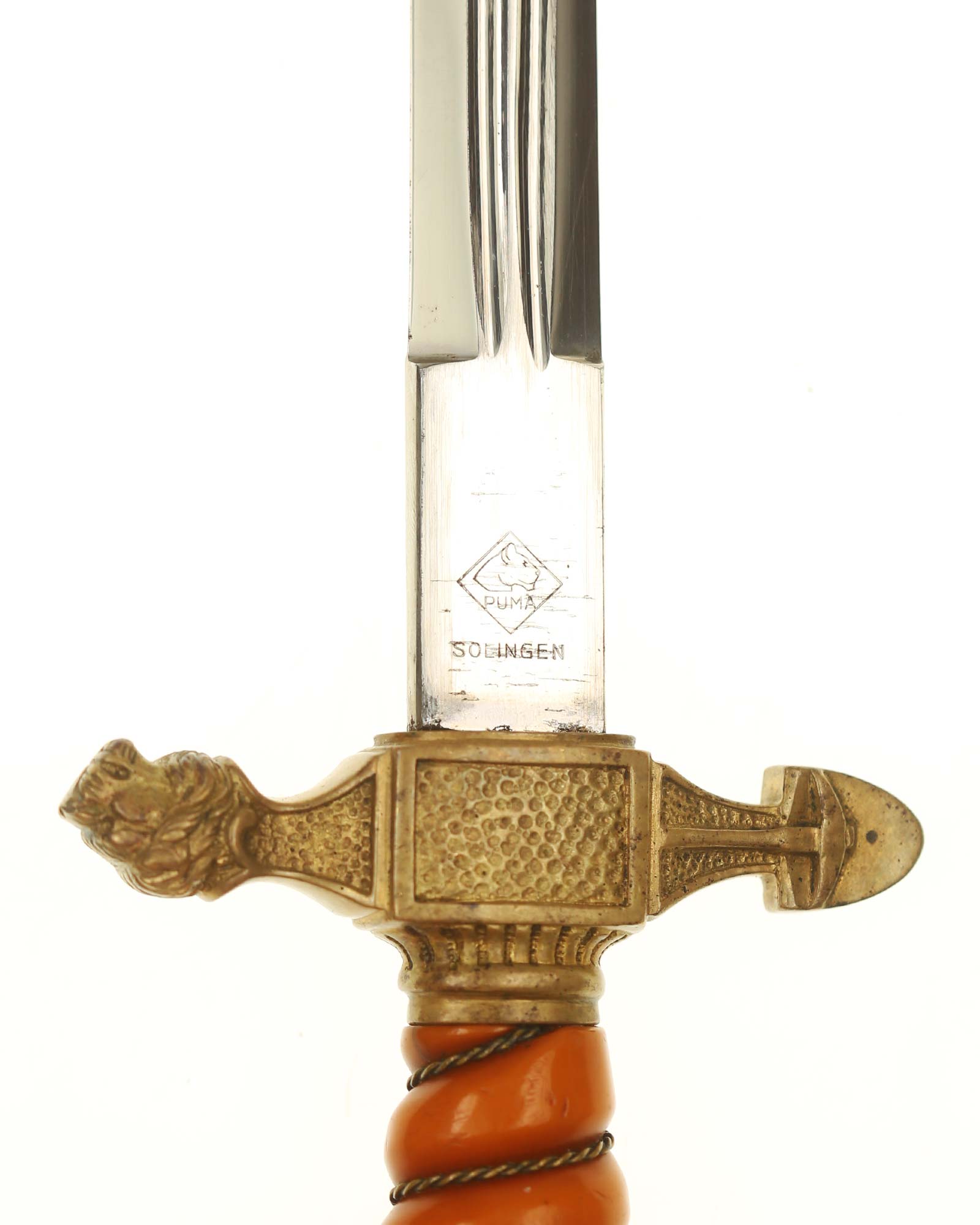Bulgarien Dolch M1938 für Angehörige der Arbeitsfront (Modell 1938) mit dem Solinger Hersteller auf der Klinge: Puma Solingen. Gesamtlänge beträgt 41,2 cm. Der Dolch wurde von Offizieren der bulgarischen Arbeitsfront in der Zeit von 1938-1945 getragen.