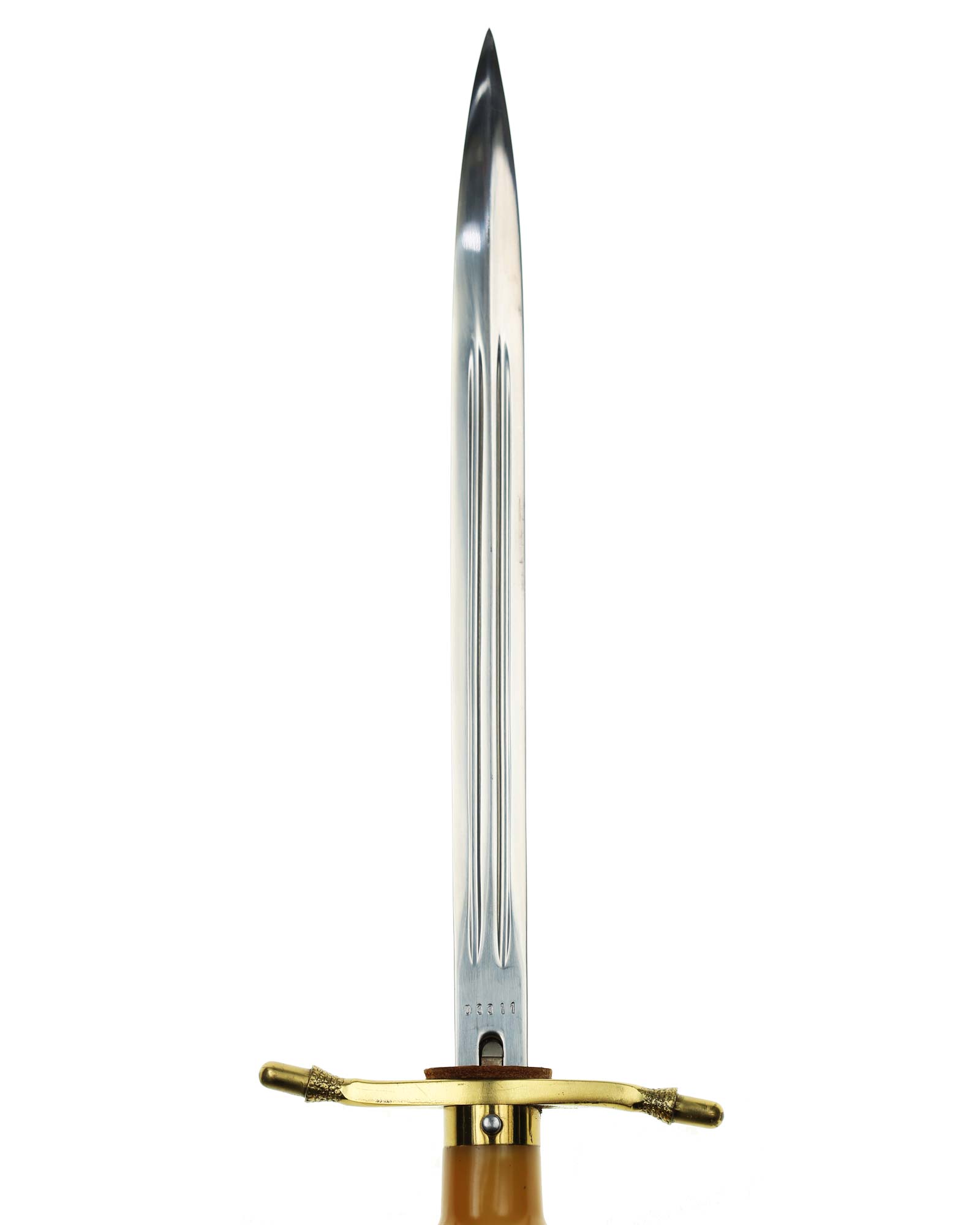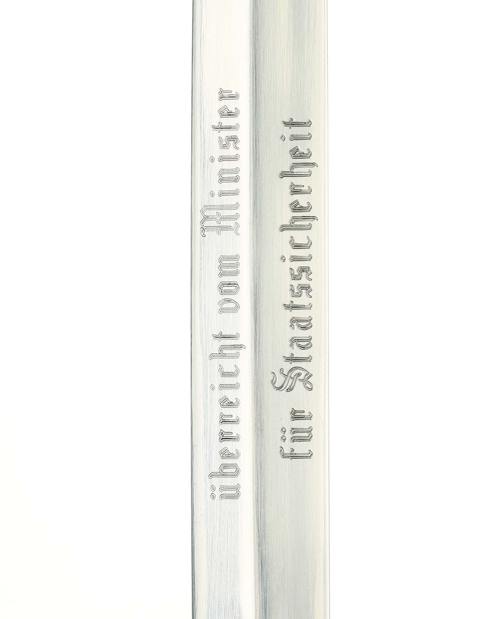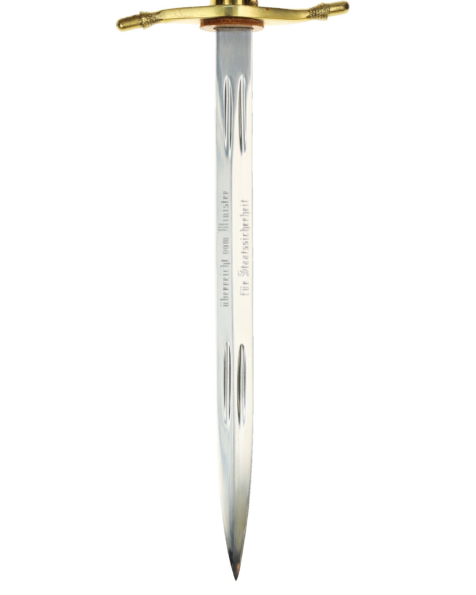 Klinge: Zweischneidige, vernickelte Präsentklinge in besonders gutem Zustand,