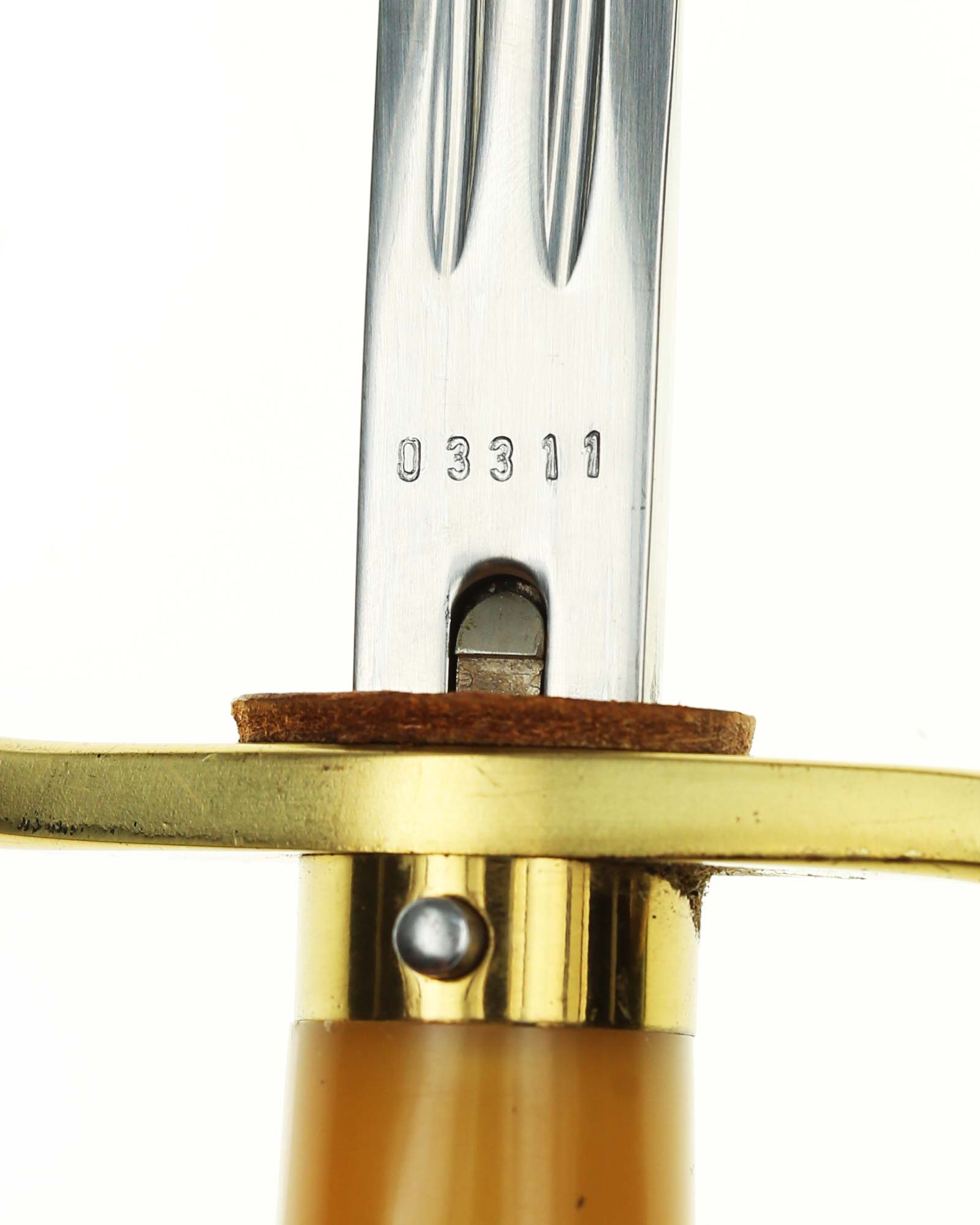 vergoldetem Knauf und vergoldeten Parierstangen. Der Knauf zeigt den fein ausgearbeiteten