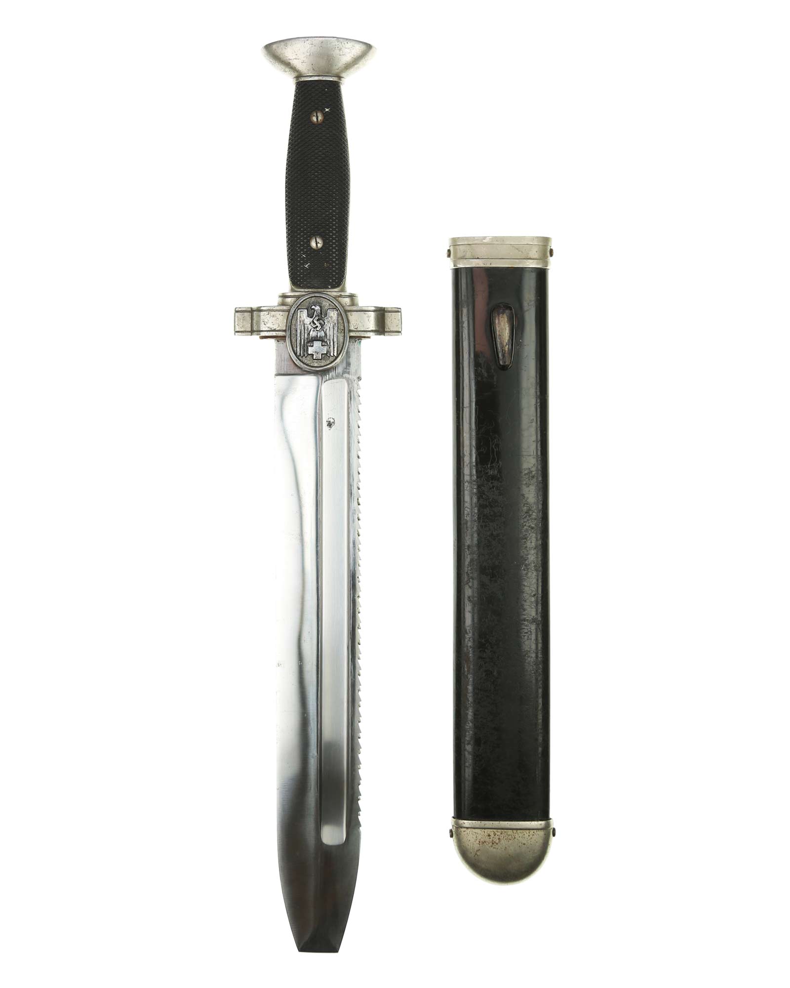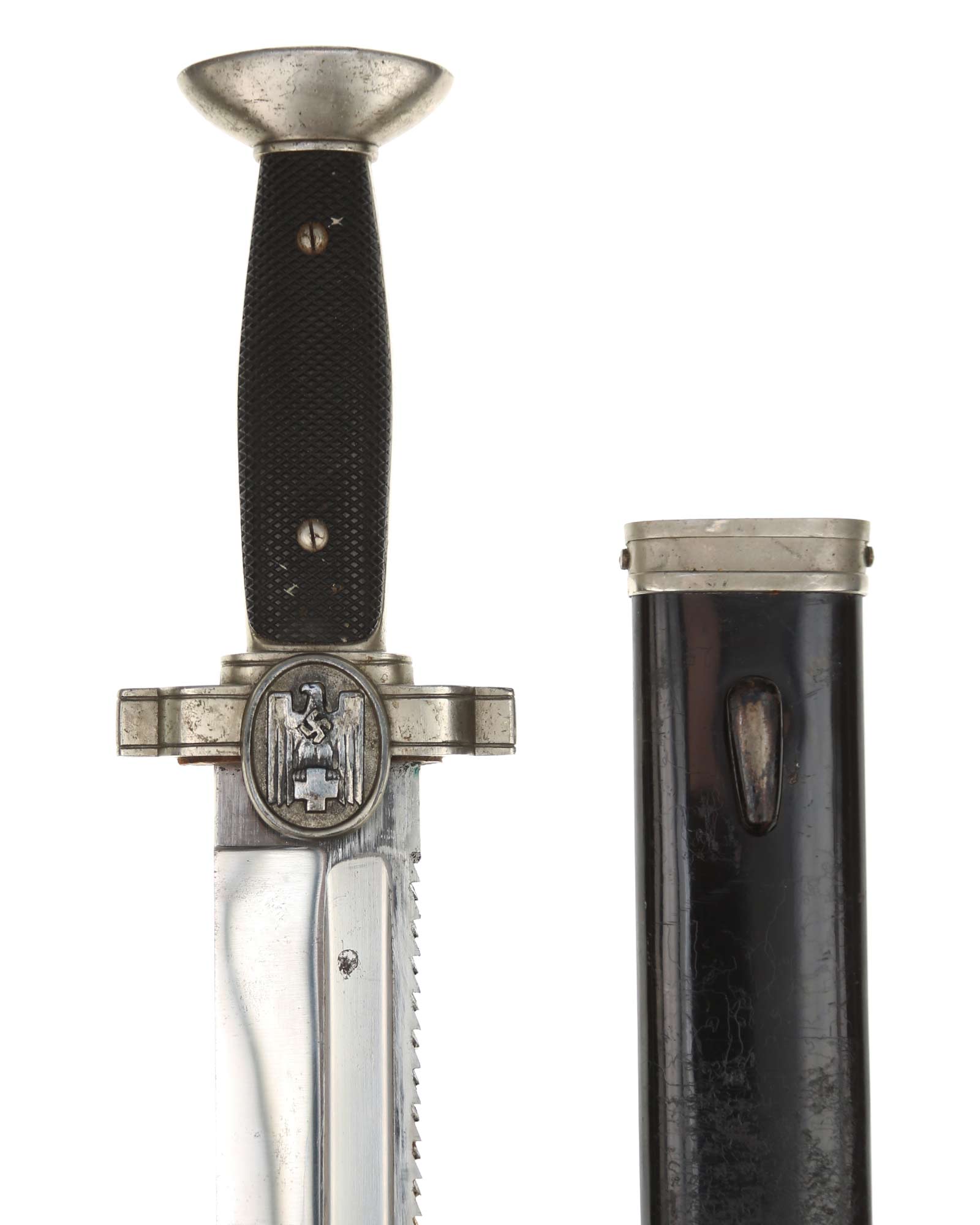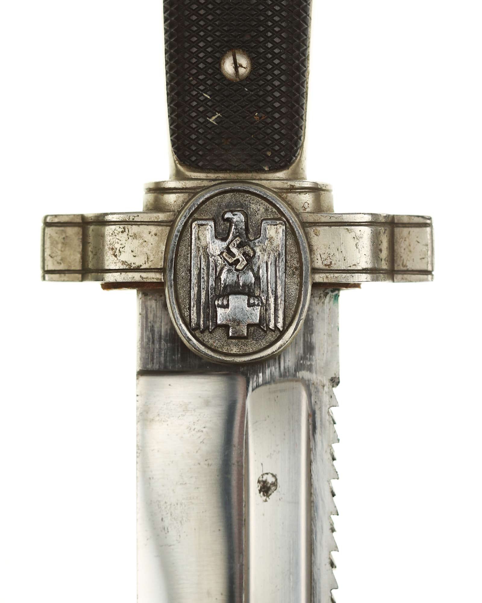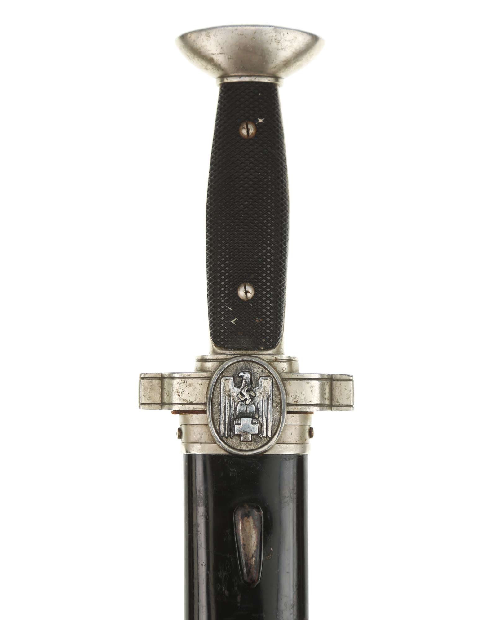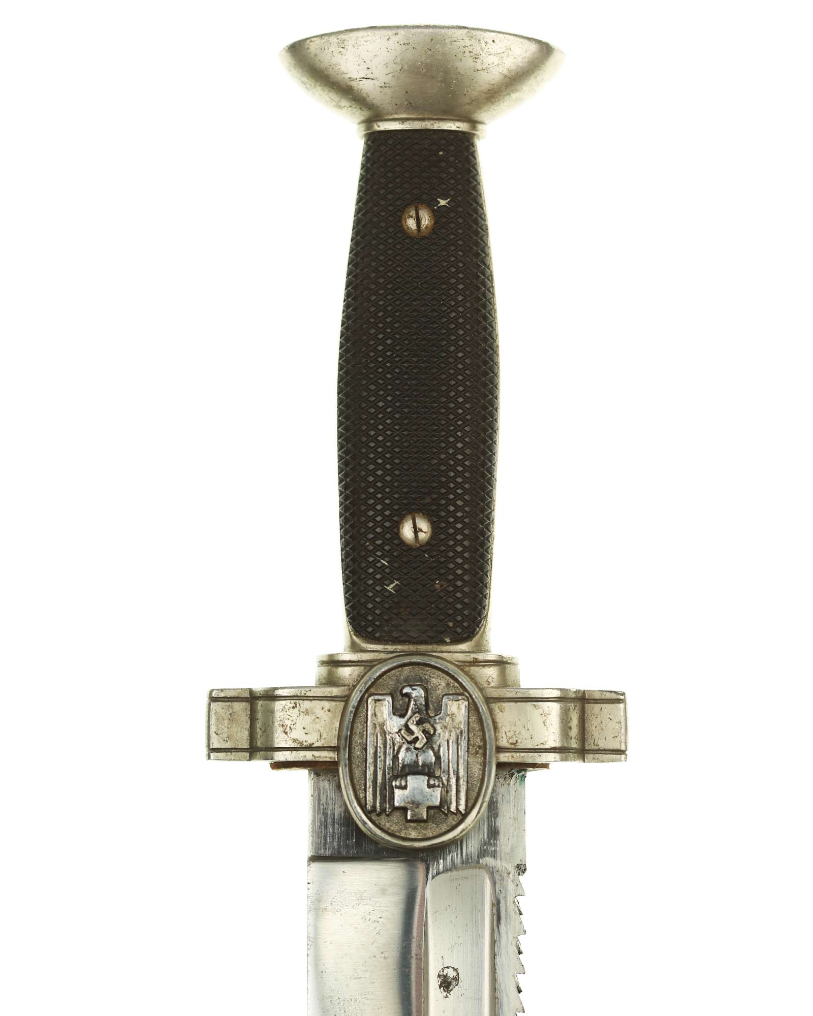 DRK [Deutsches Rotes Kreuz] Hauer für Mannschaften. Modell 1938. Die Gesamtlänge beträgt 41,2 cm. Die Scheide ist mit vier Schrauben.