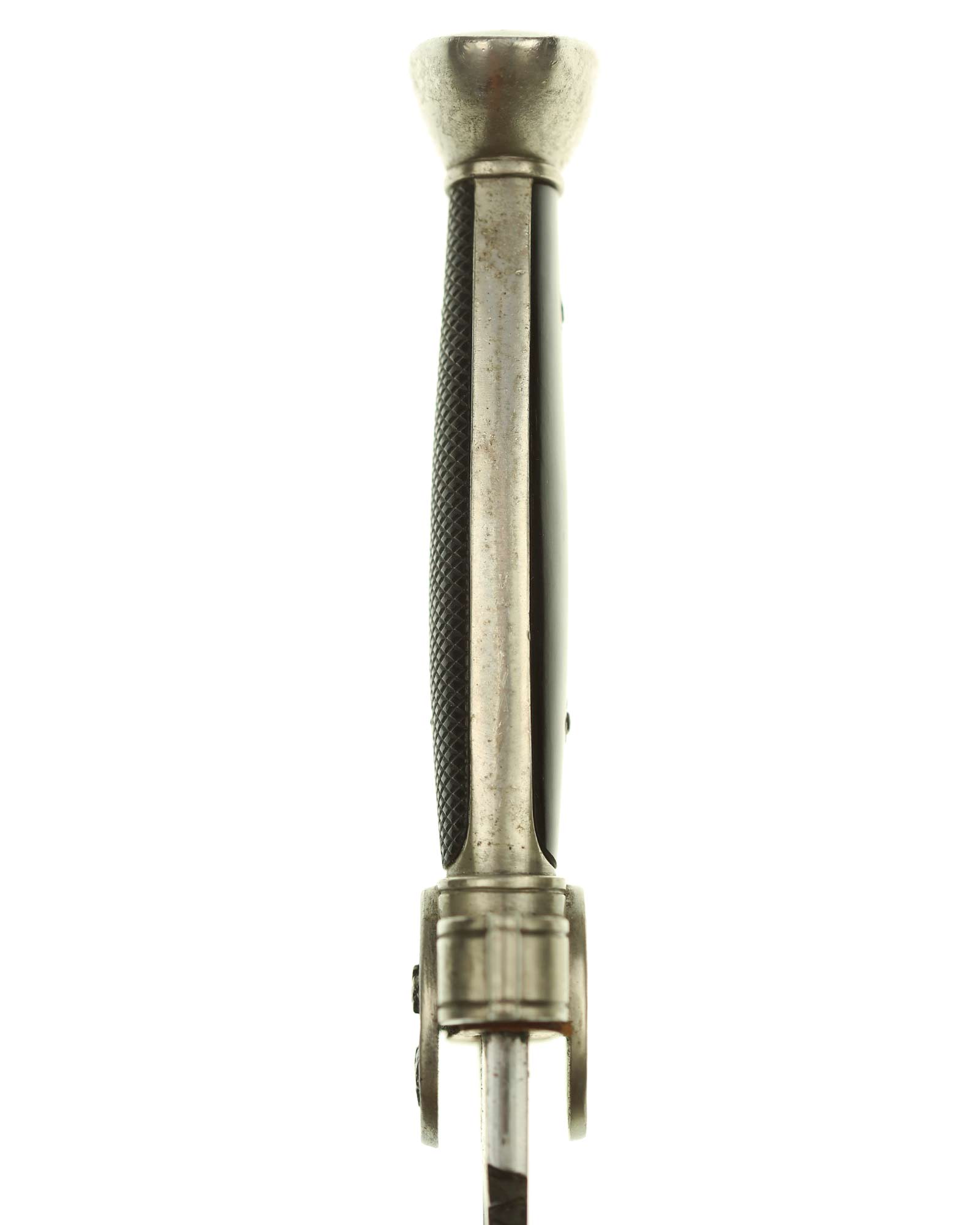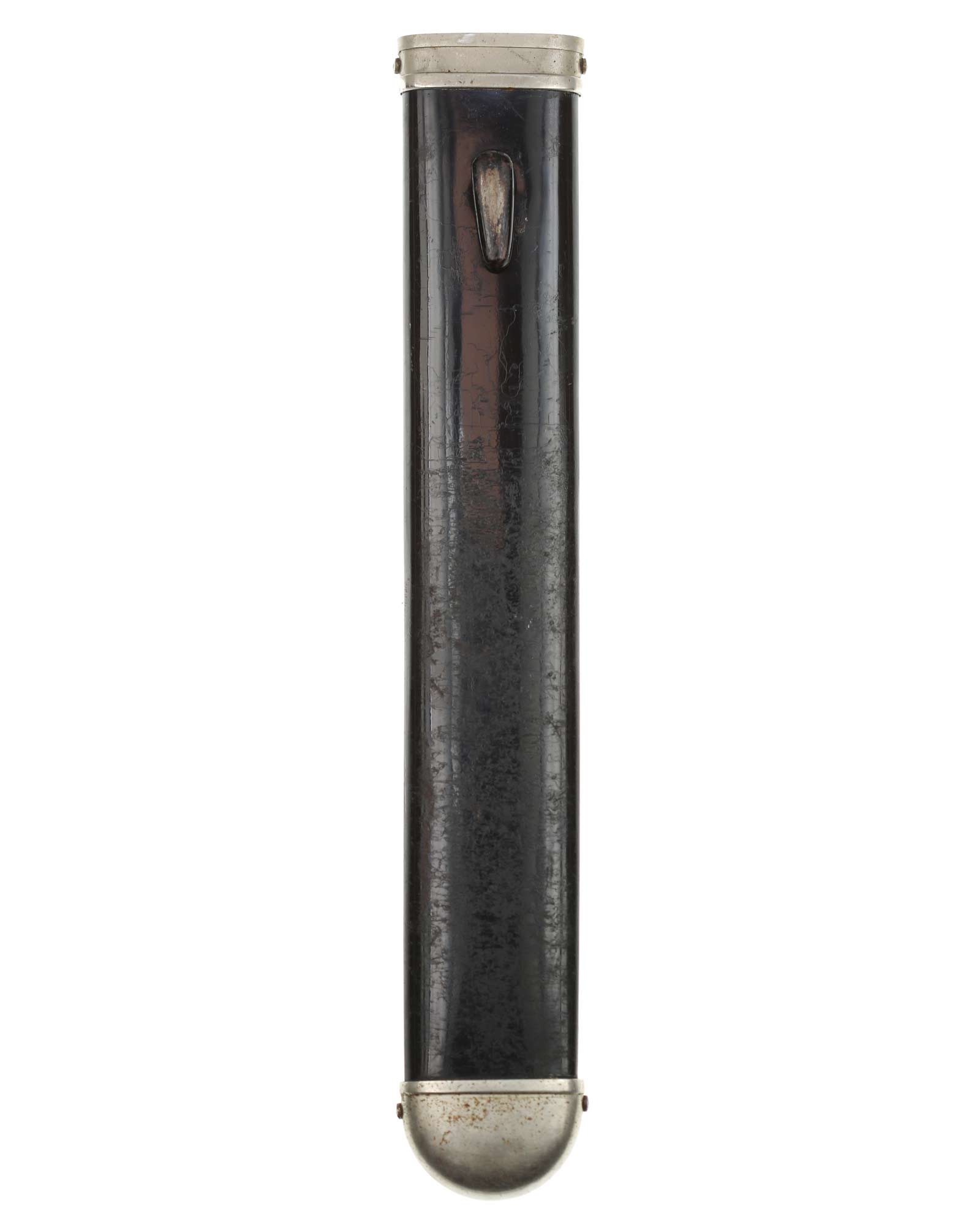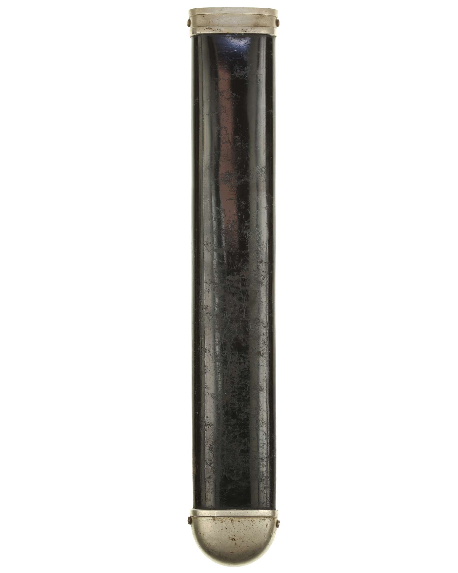 Scheide: Schwarz lackierte Stahlscheide mit 95% Originallack. Die Beschläge werden mit jeweils zwei seitlich angebrachten Schrauben befestigt. Im oberen Bereich befindet sich der Halteknauf, zum Einhängen des Koppelschuhs.