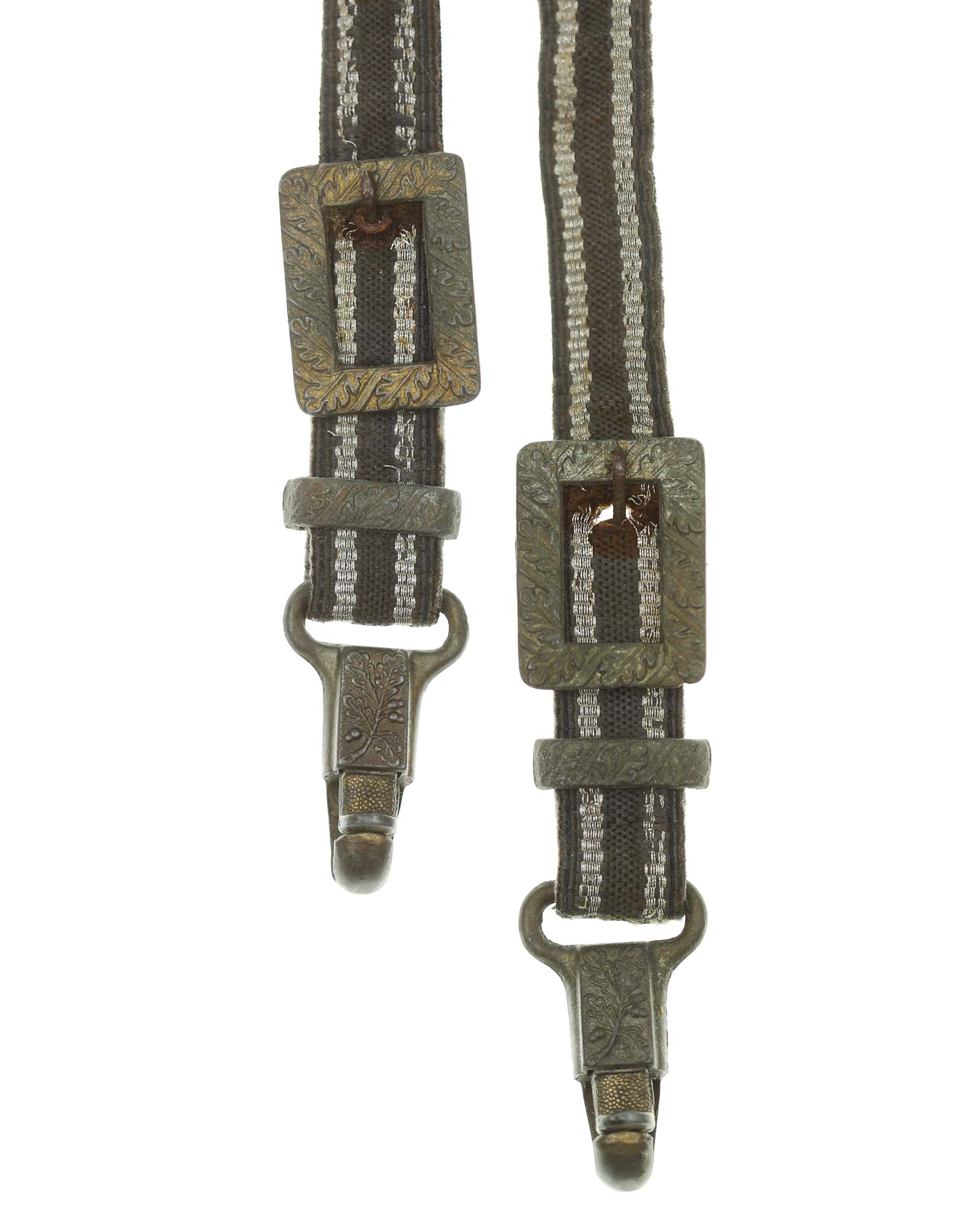 Gehänge für den Offiziersdolch der Luftwaffe im guten Zustand. Vorderseite markiert mit DRGM. Gesamtlänge beträgt 26,5 cm.