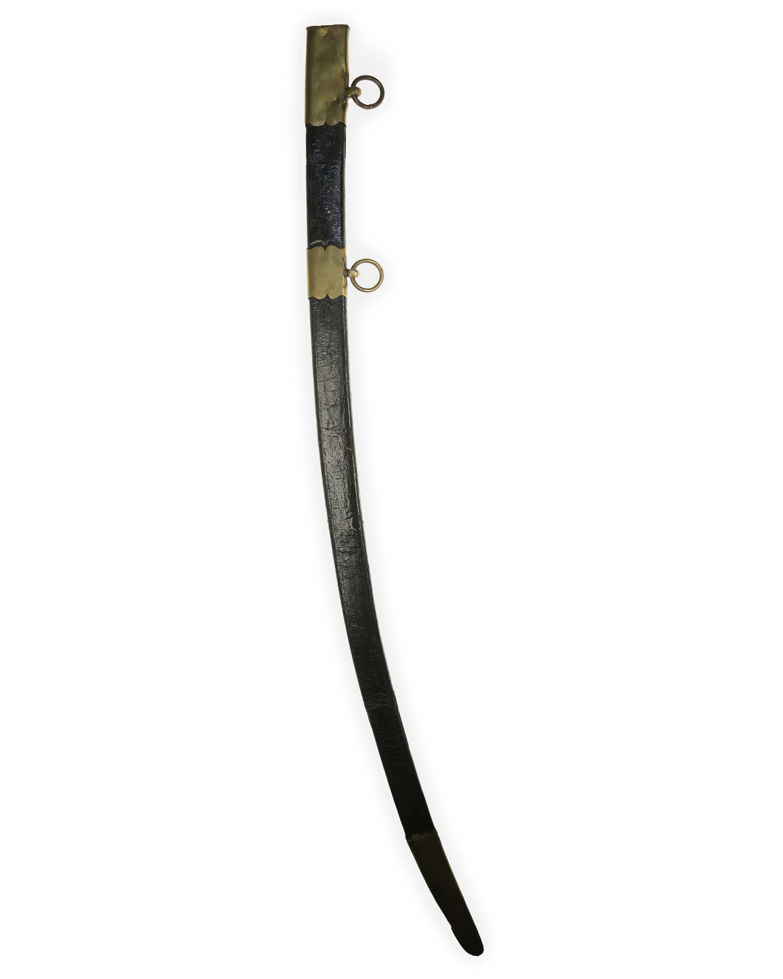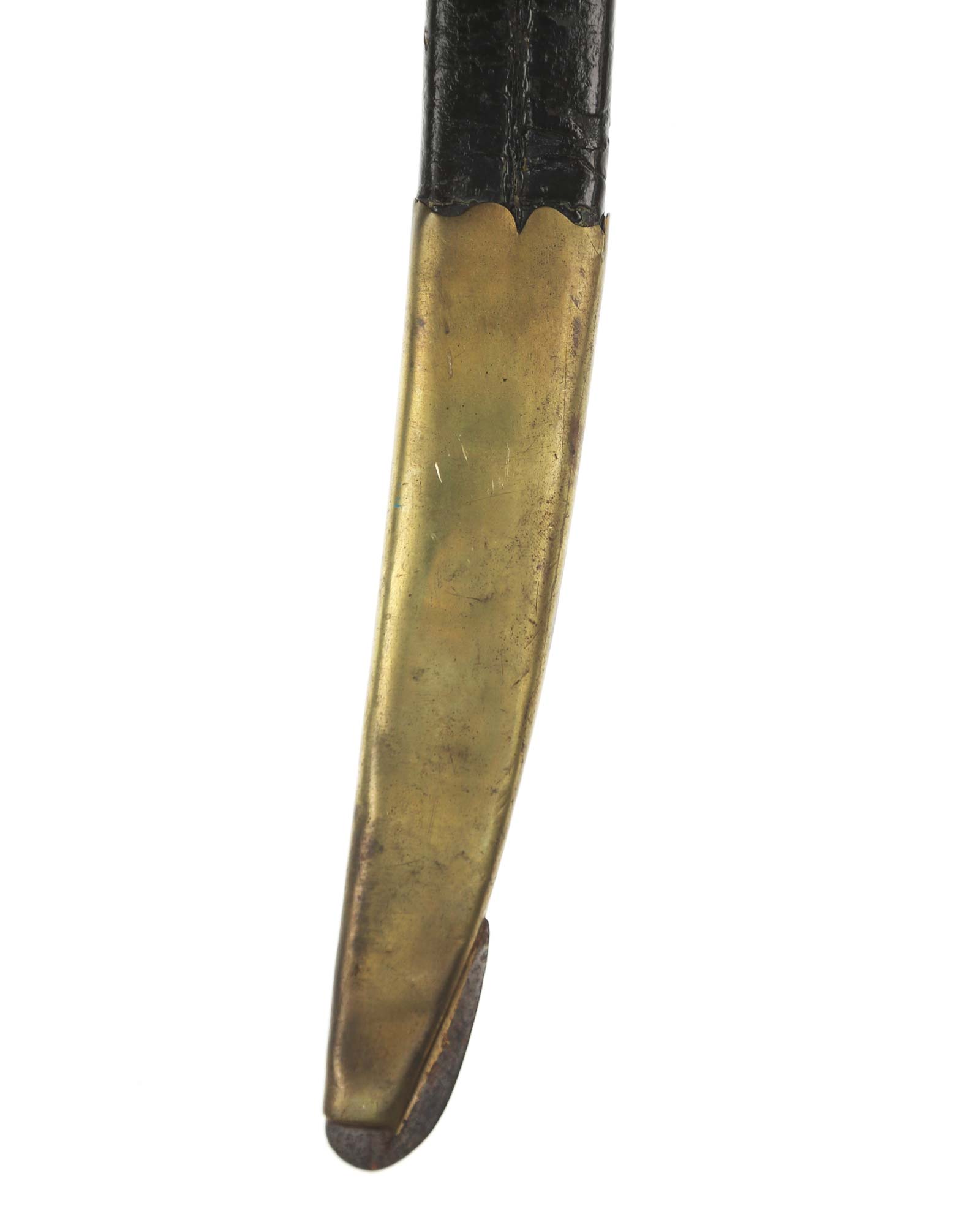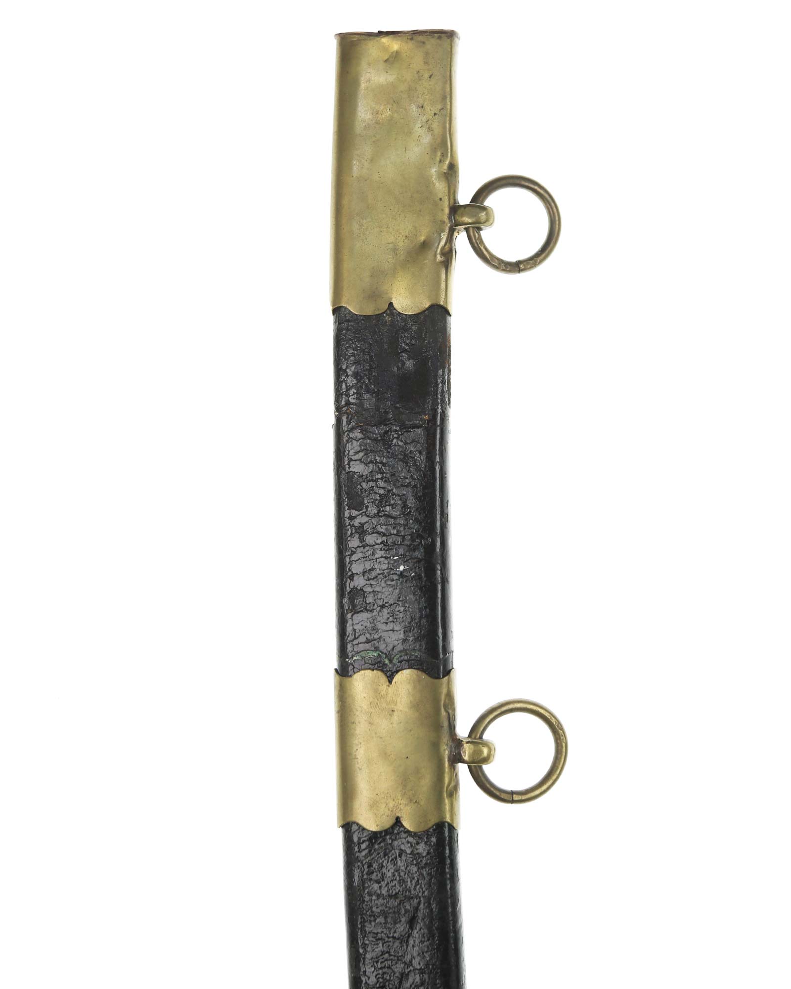Lederscheide für Säbel mit drei Beschlägen.Gesamtlänge ca. 89 cm. Zustand 2.