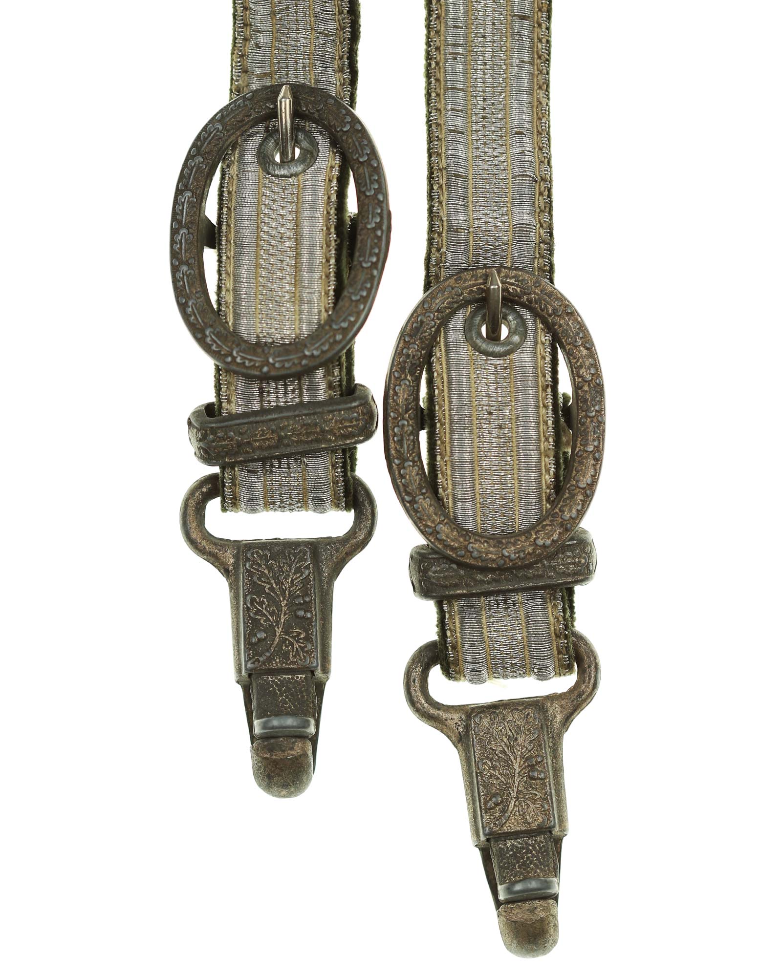Gehänge für den Offiziersdolch des Heeres im guten Zustand. Vorderseite markiert mit DRGM. Gesamtlänge beträgt 26,6 cm.