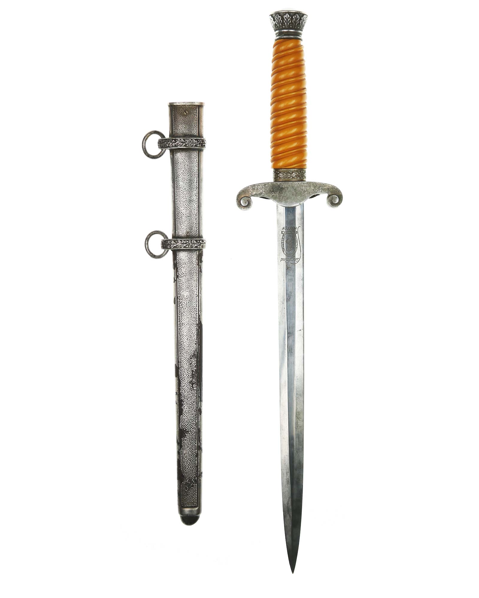 Dolch für Offiziere des Heeres. Modell 1935. Die Gesamtlänge beträgt 40,5 cm. Der Heeresdolch hat das geätzte Herstellerlogo: E. Pack & Söhne Solingen.