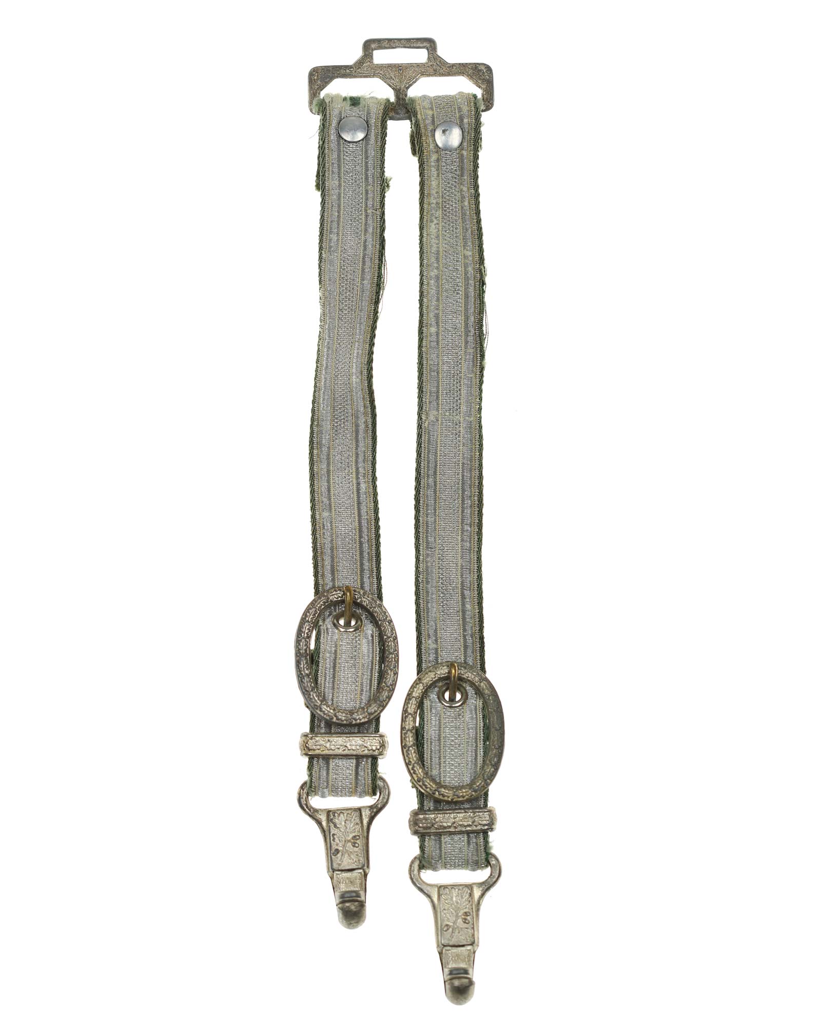 Scheide: Die Scheide besteht aus Mundblech und aus zwei Eichenlaub verzierten Scheidenbändern mit zwei losen Trageringen, diese sind komplett geschlossen. Die Scheide ist aus einem Stück Stahlblech gezogen und auf der Vorder- und Rückseite mit körniger Oberflächenstruktur versehen. Die Spitze ist abgerundet und nicht eingedrückt. Das Mundstück ist separat eingesetzt und mit einer Schraube befestigt.