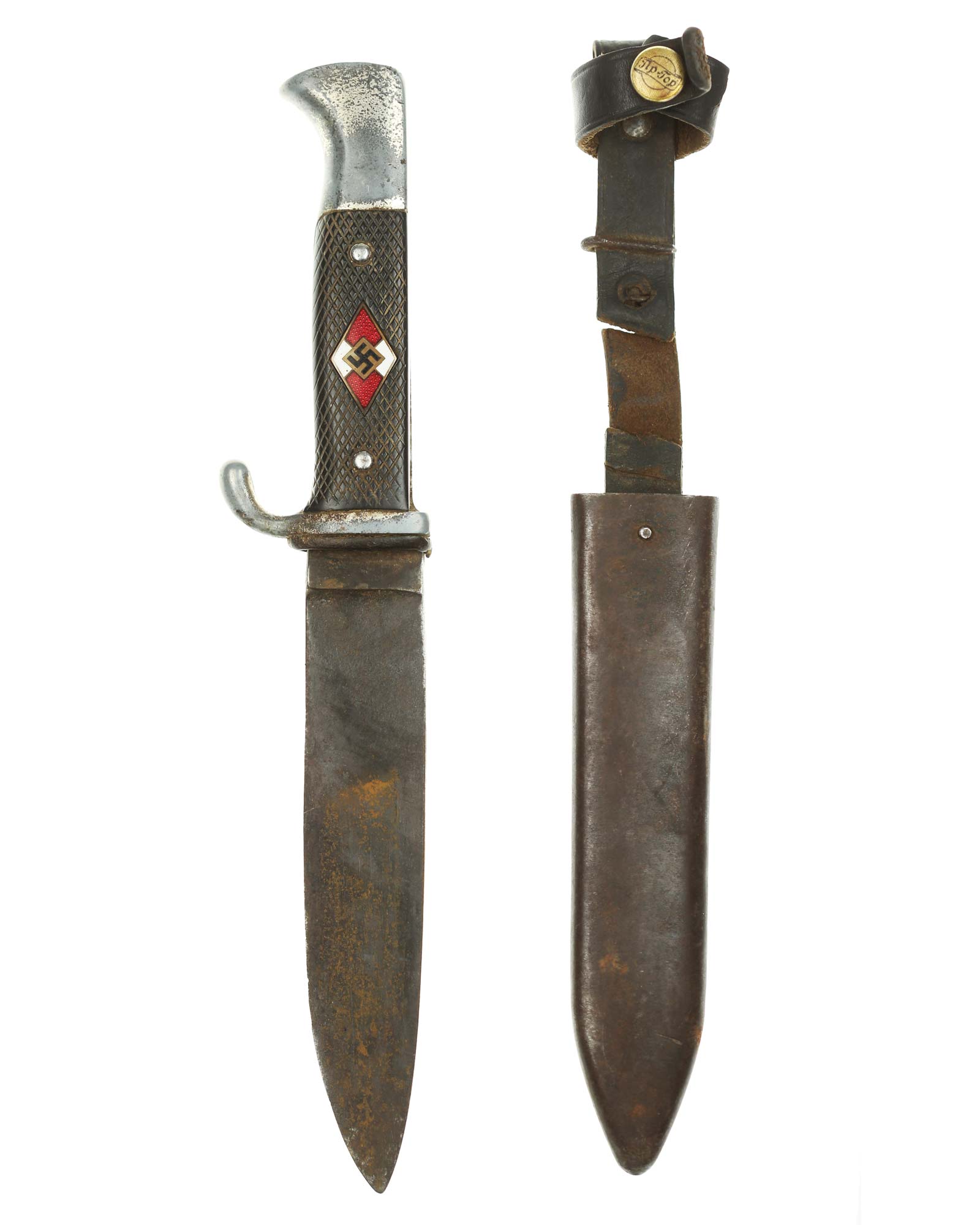 HJ Fahrtenmesser [Hitlerjugend] in mittlerer Fertigung 1936-1938. In einem ungereinigten Zustand.
