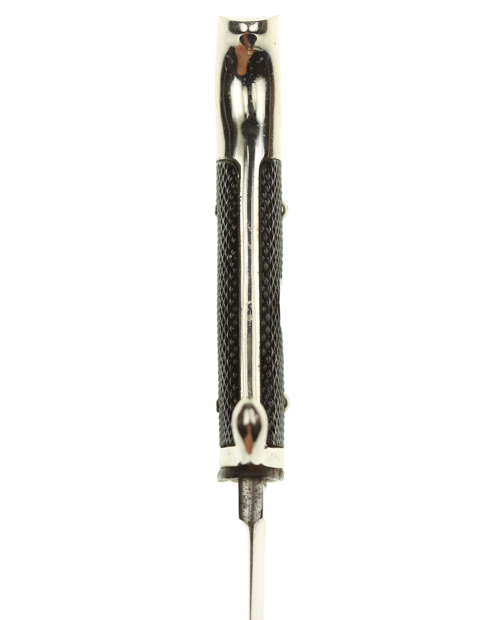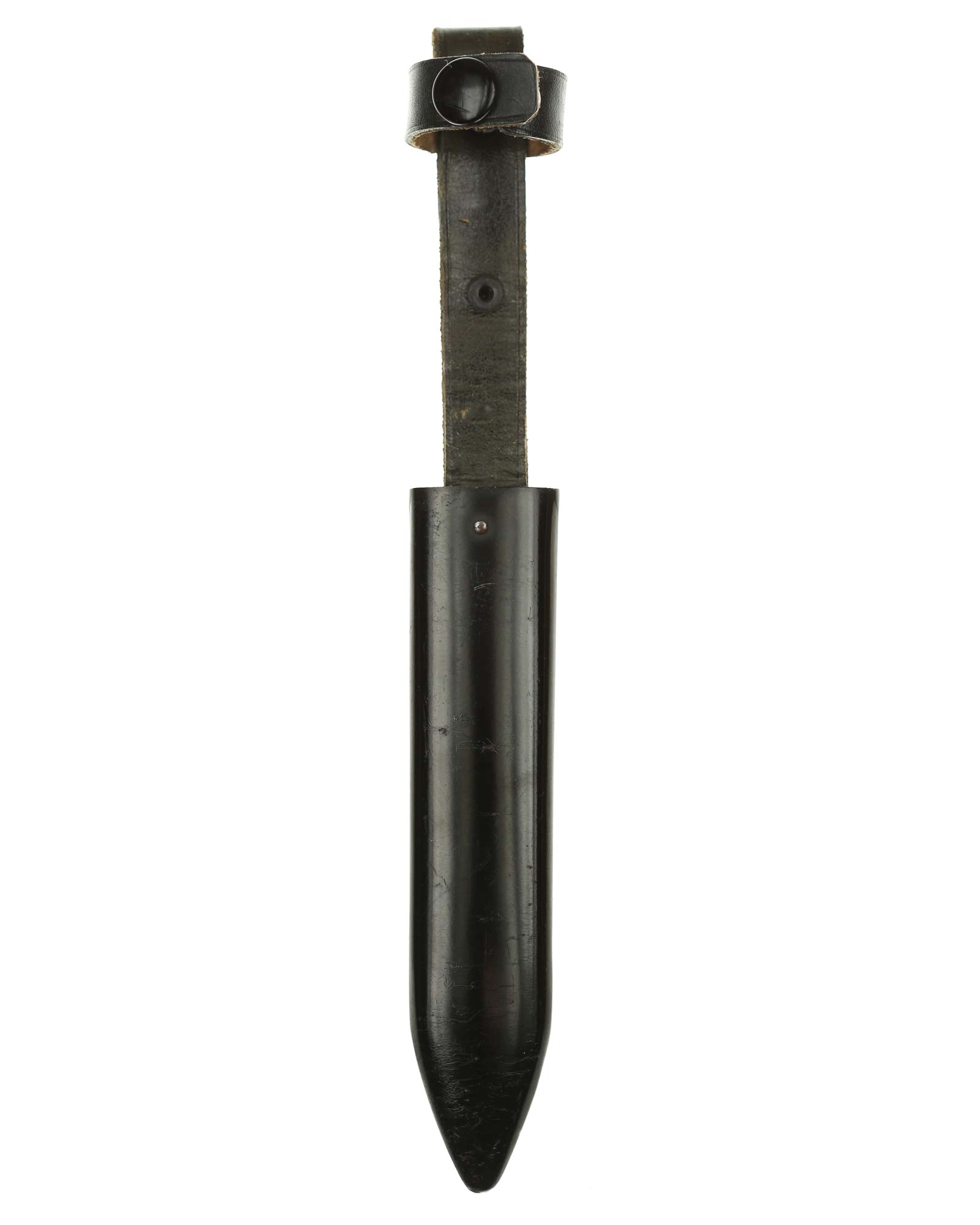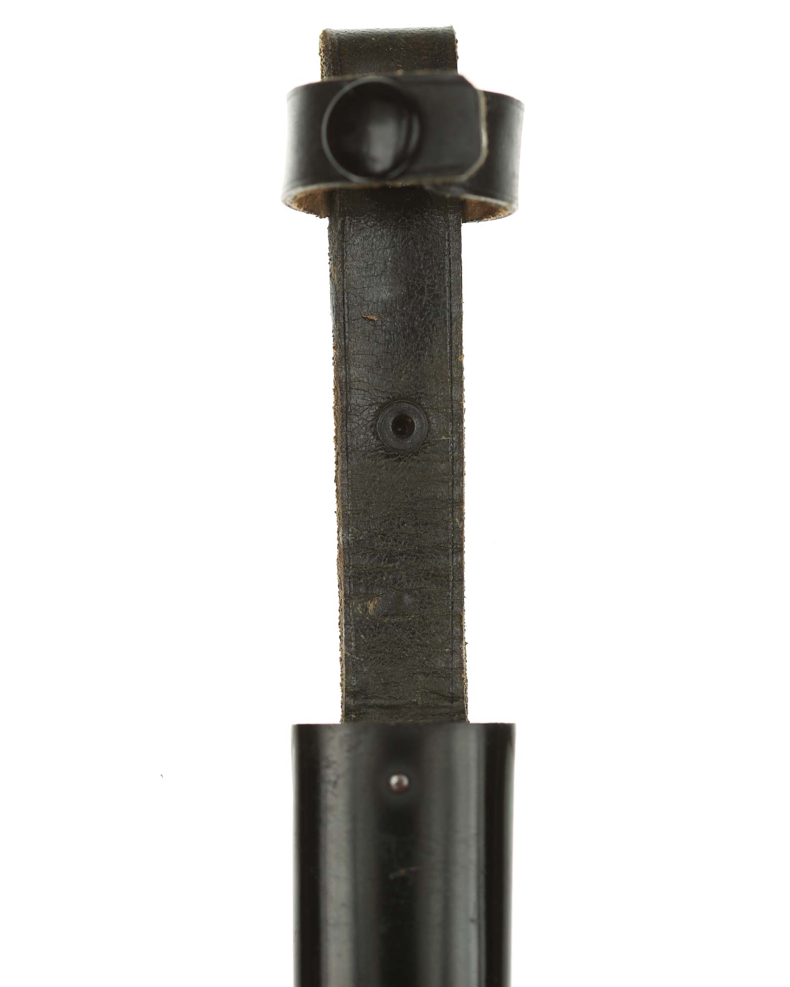 Scheide: Die Scheide ist aus Eisen und schwarzlackiert. Die Tragevorrichtung besteht aus einer Lederschlaufe, die aus einem doppelt gelegten Riemen besteht.