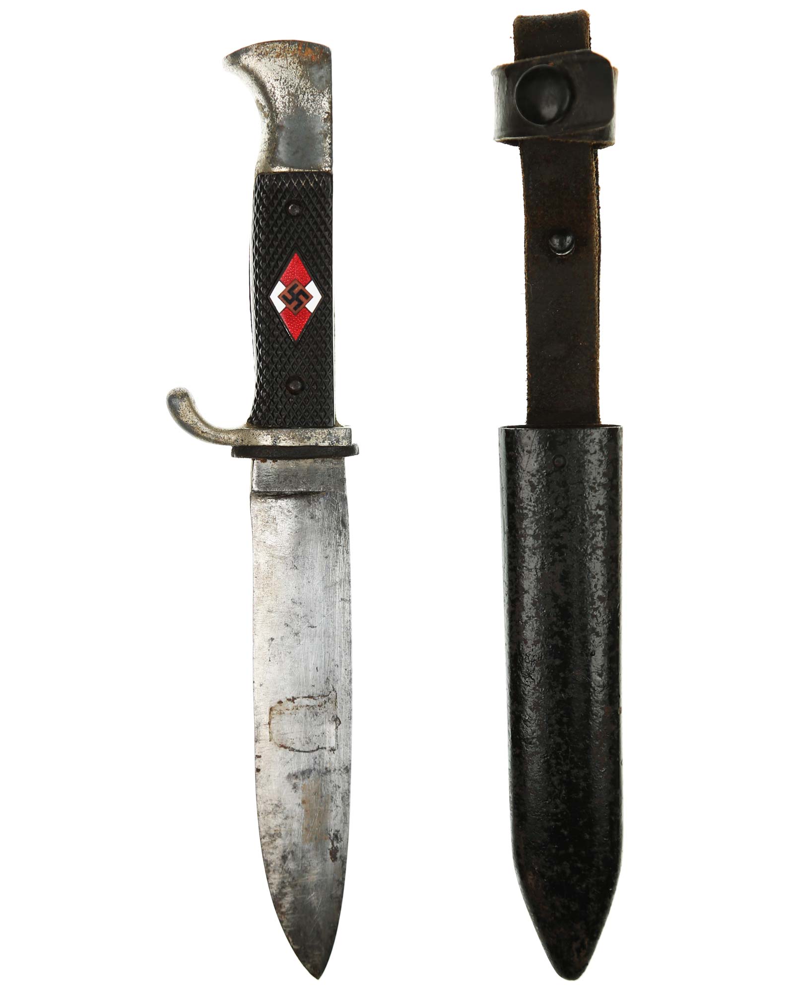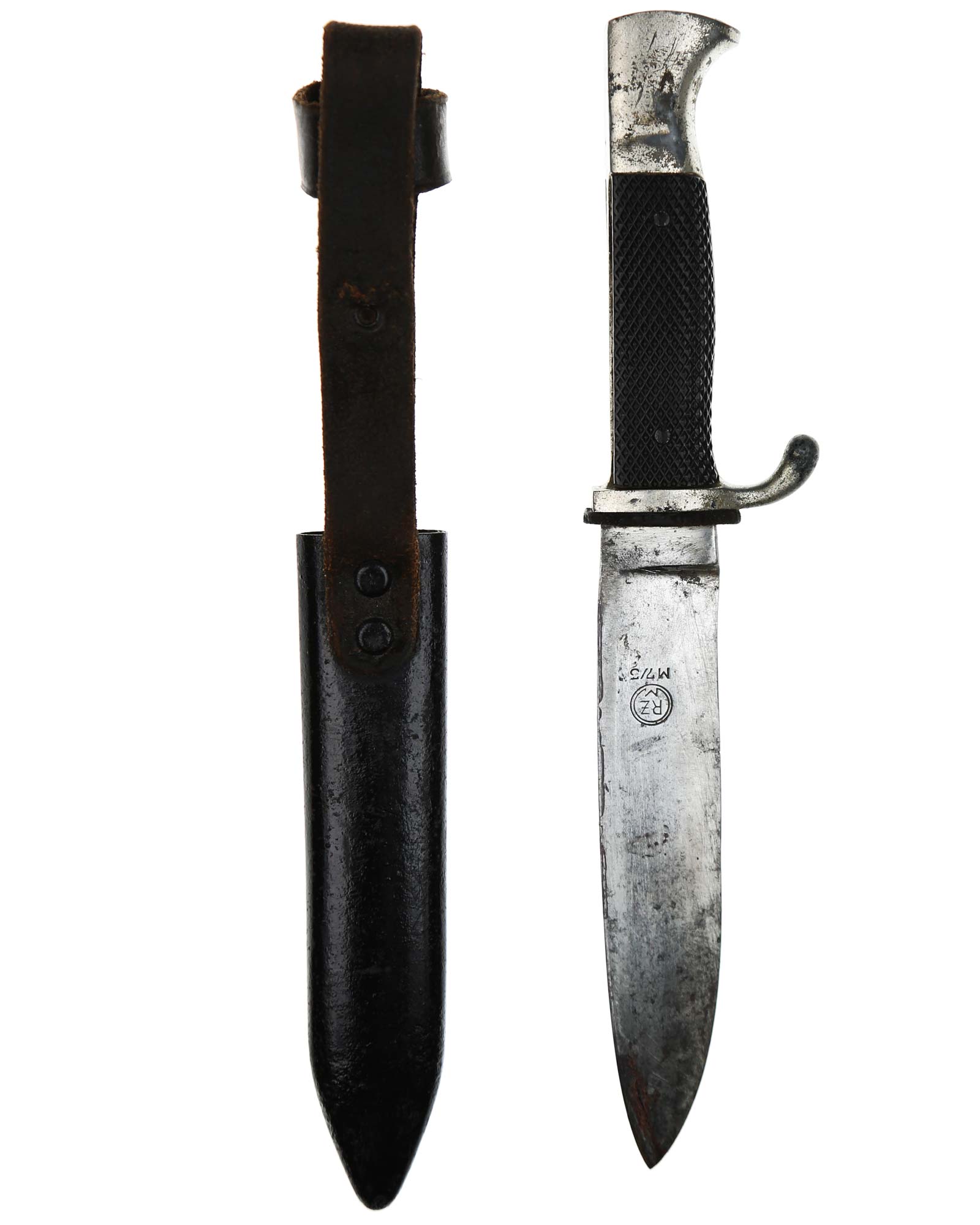 HJ Fahrtenmesser [Hitlerjugend] in später Fertigung 1940-1942. HJ Messer ist auf der Rückseite mit RZM Code: M7/3 (Kuno Ritter Solingen) gekennzeichnet.