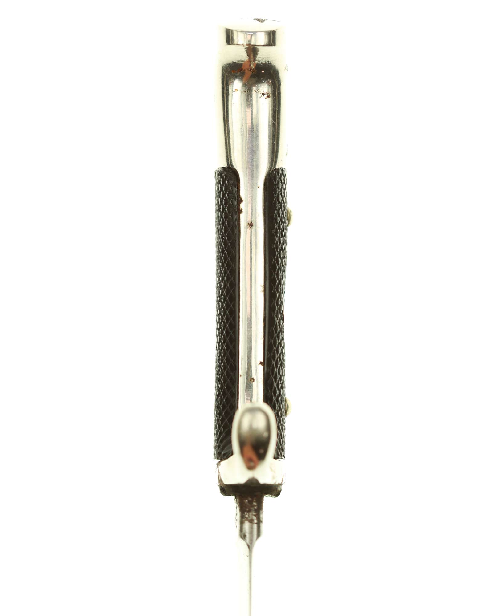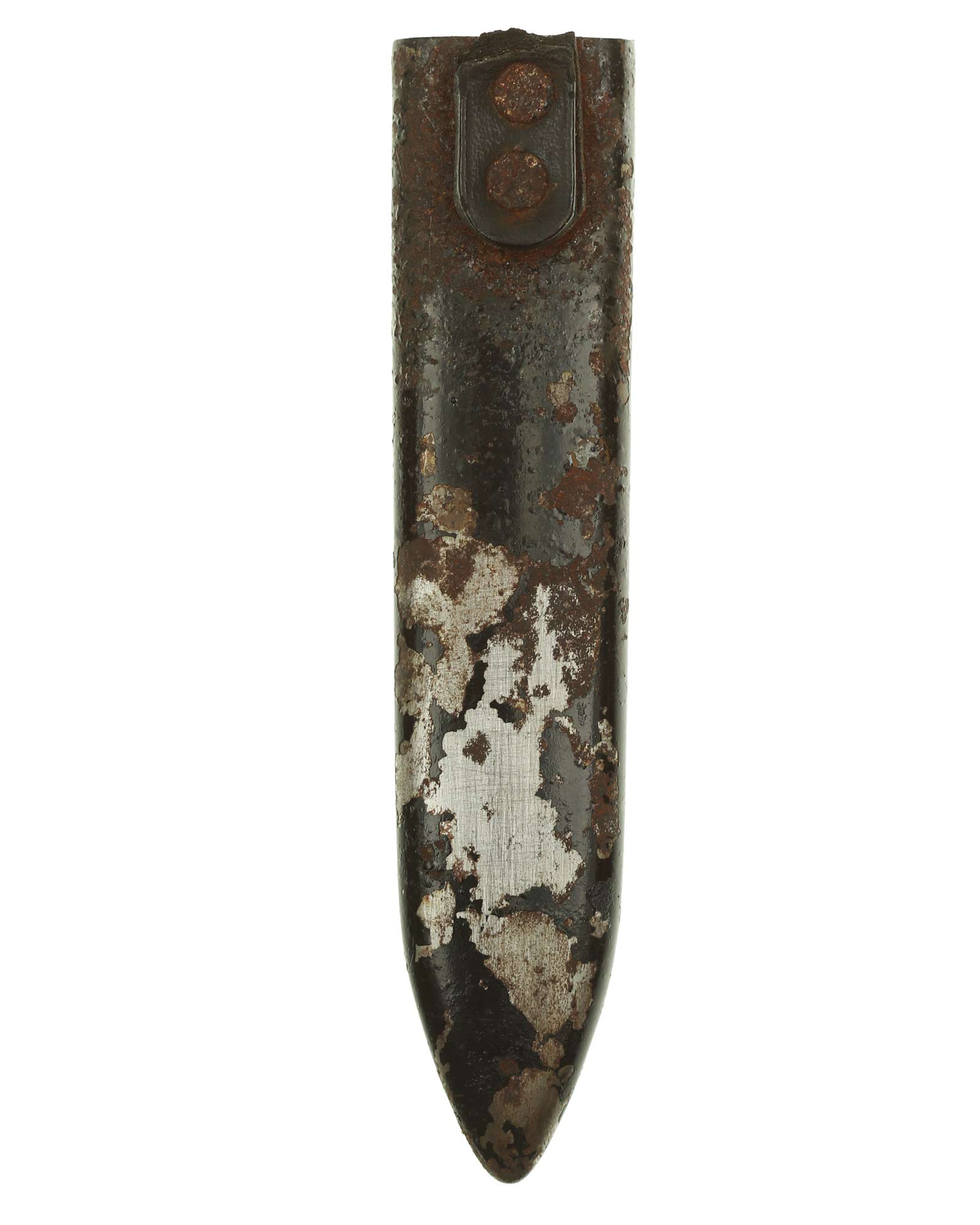 Scheide: Die Scheide ist aus Eisen und schwarzlackiert. Die Tragevorrichtung besteht aus einer Lederschlaufe, die aus einem doppelt gelegten Riemen besteht.