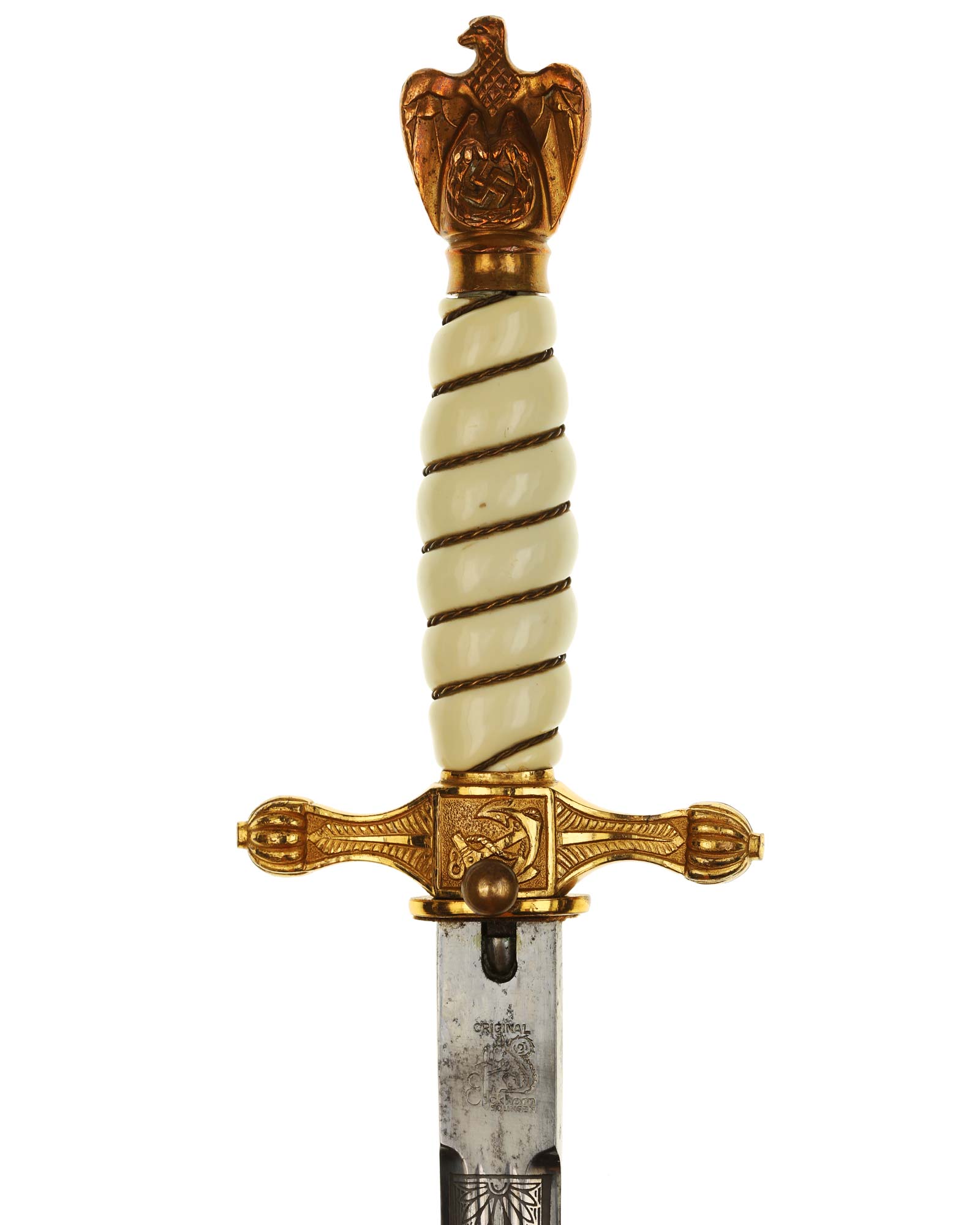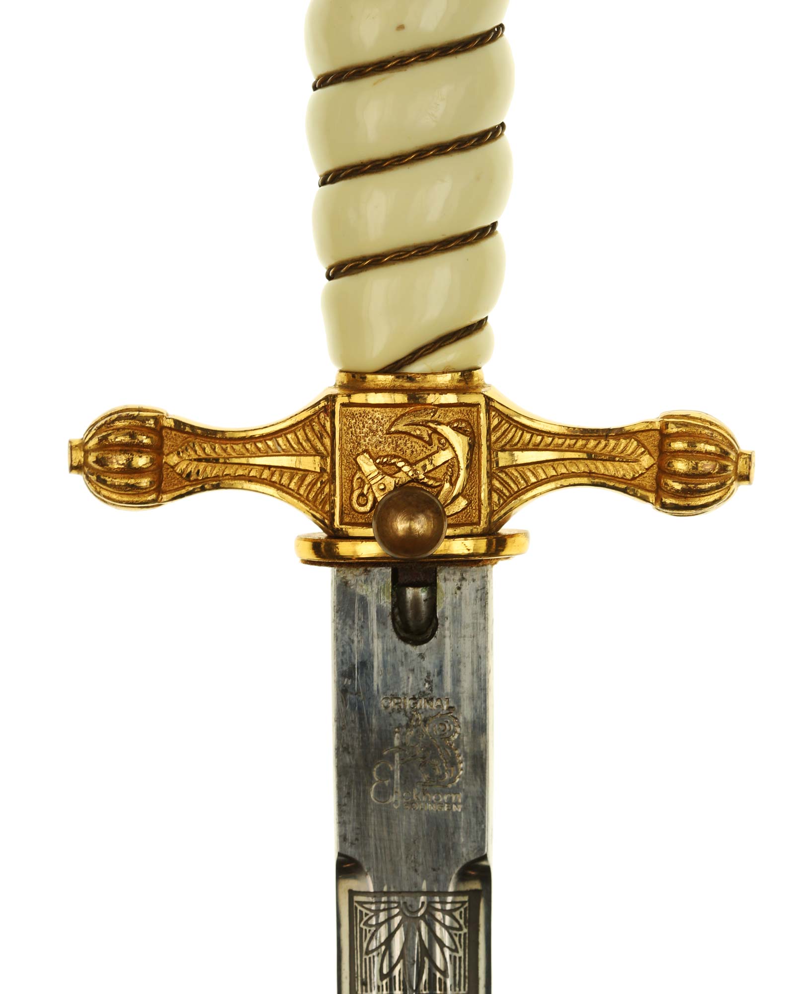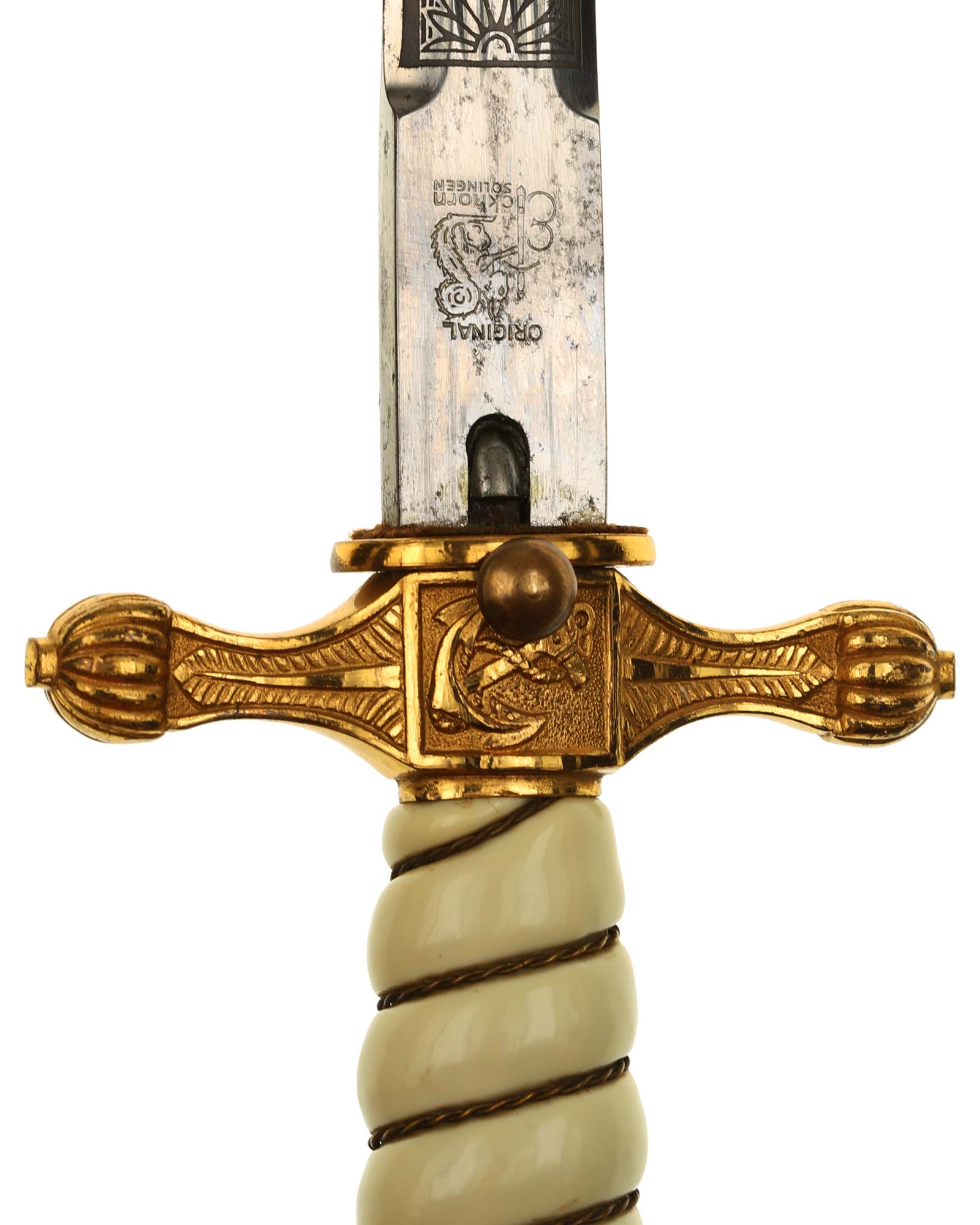 Kriegsmarine Offiziersdolch (Modell 1938) mit dem Hersteller auf der Klinge: Carl Eickhorn Solingen. Gesamtlänge beträgt 42,0 cm.