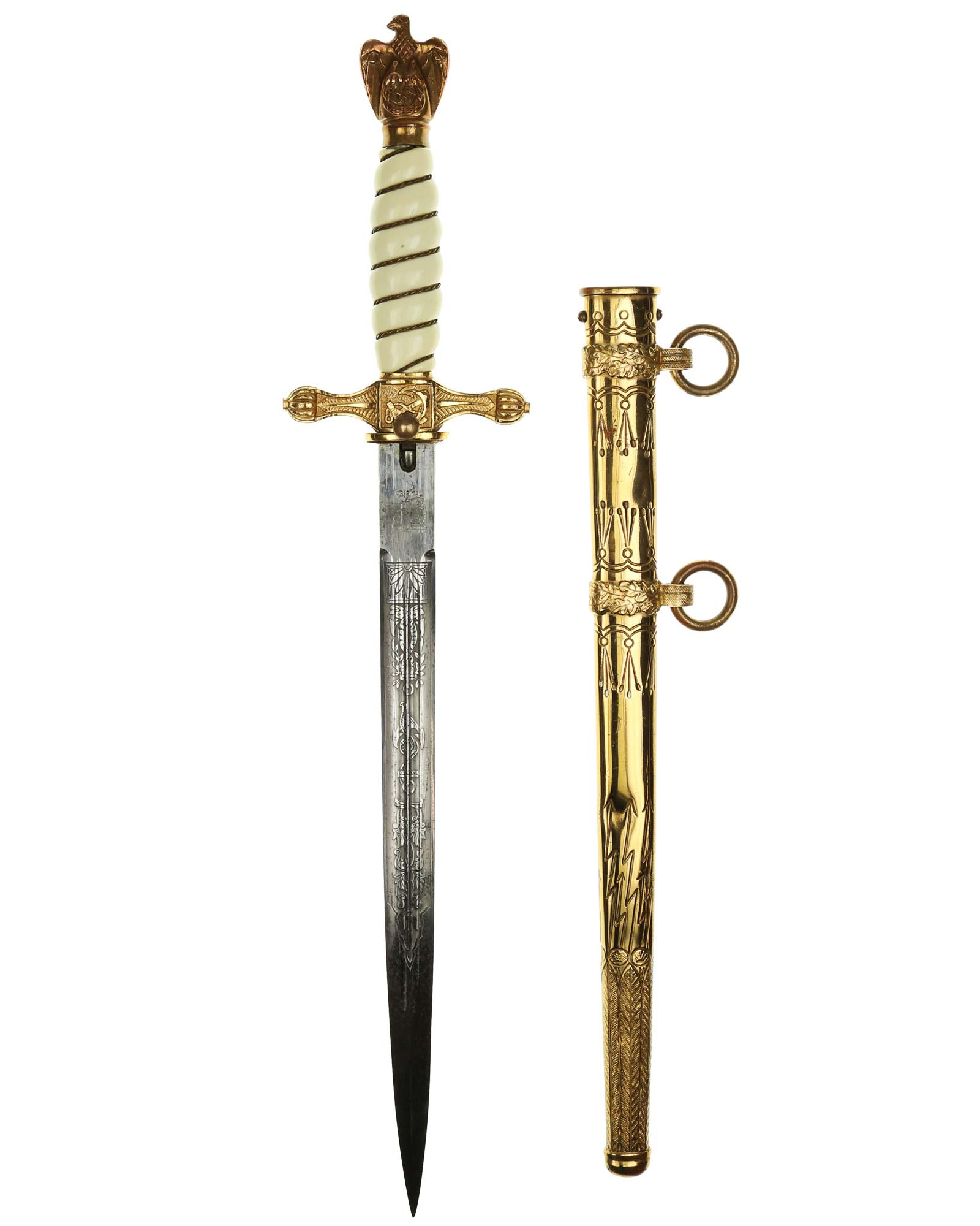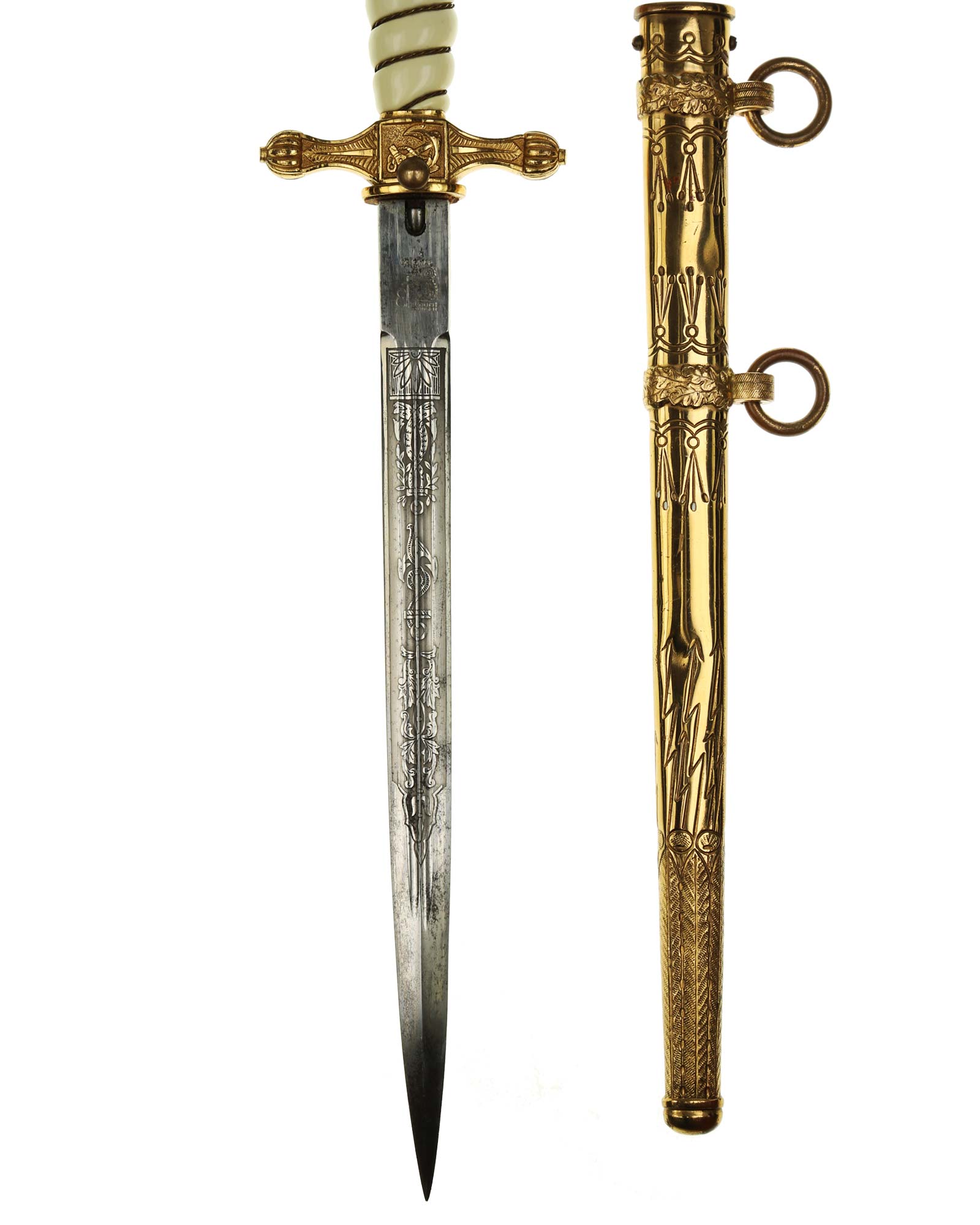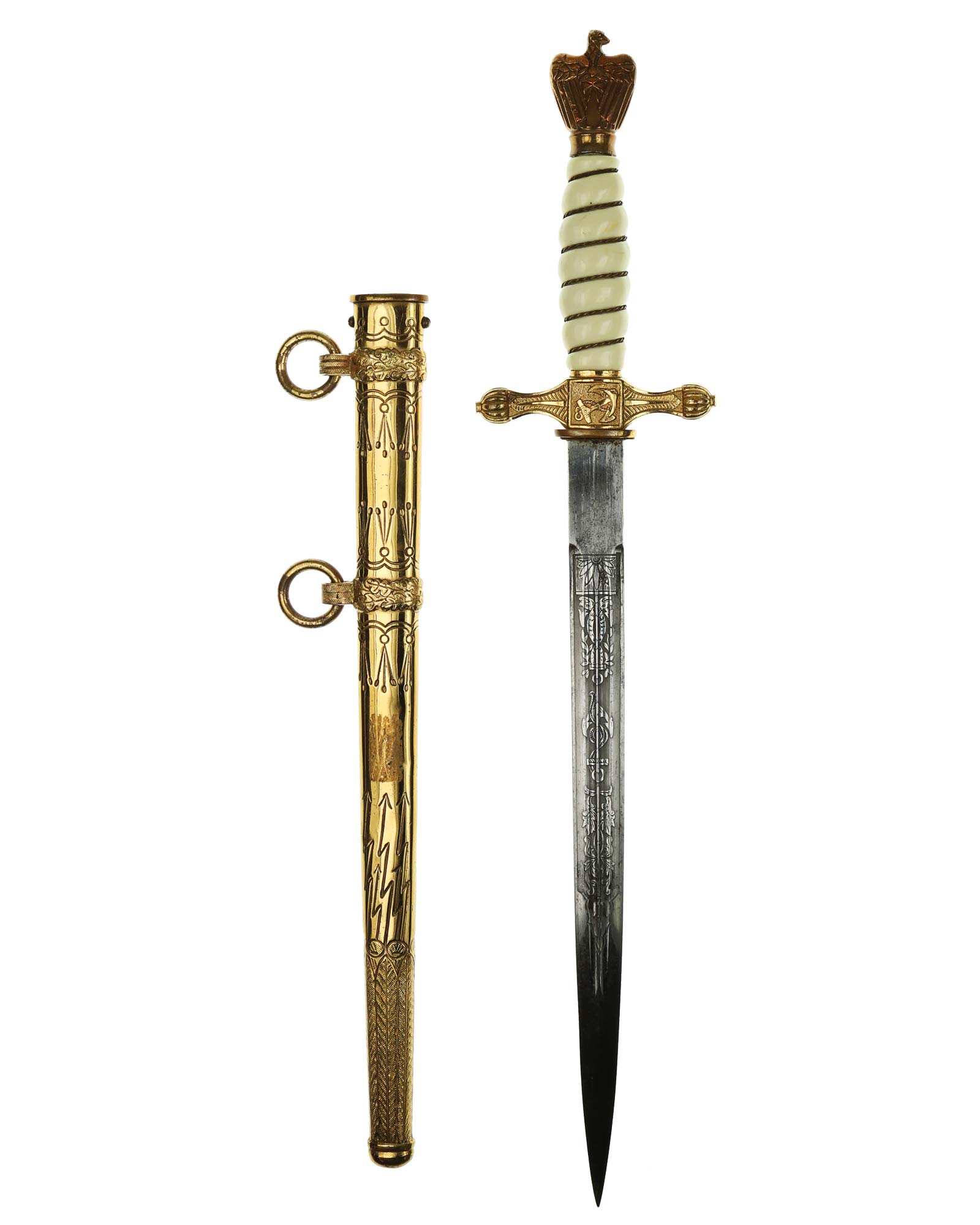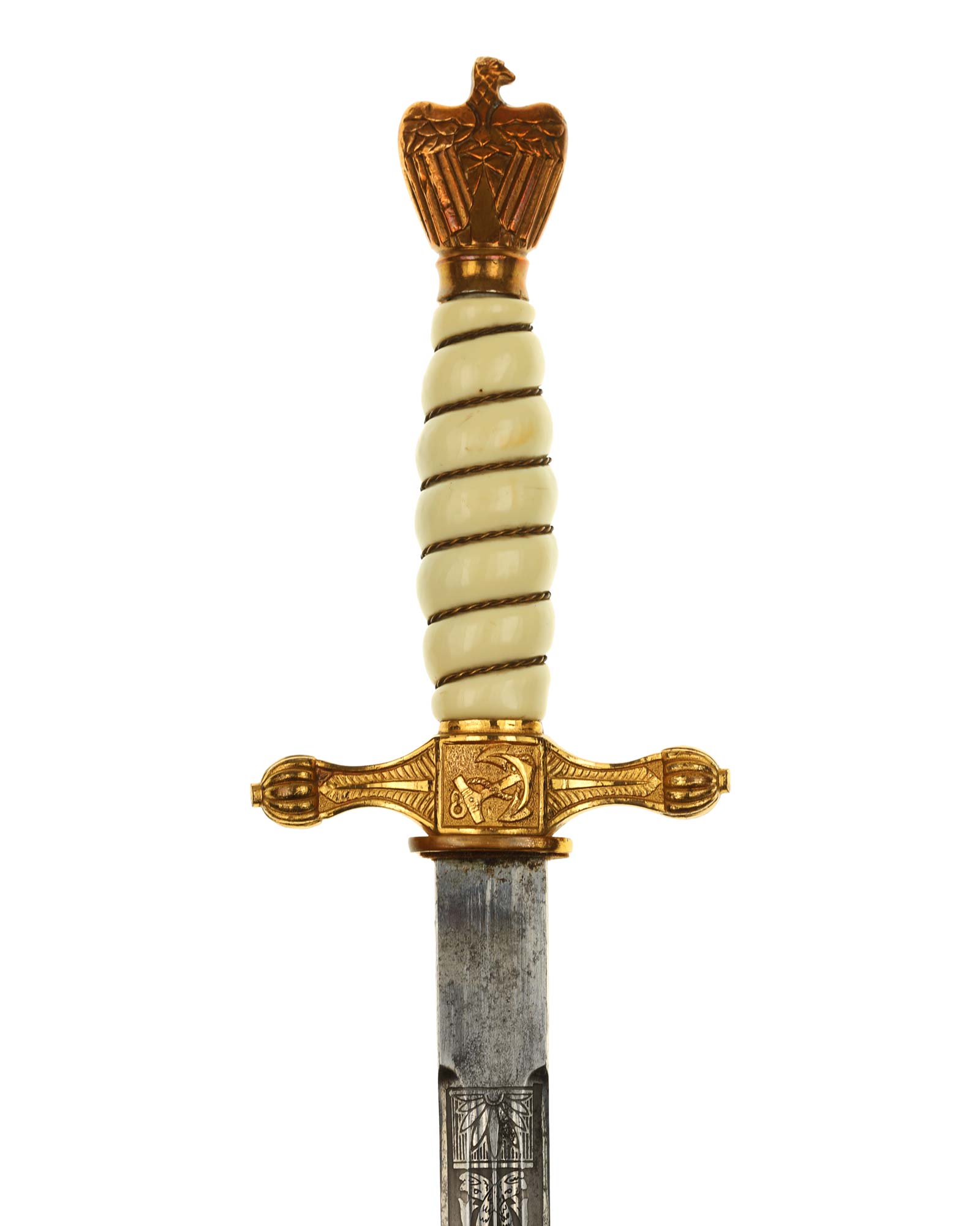 Kriegsmarine Offiziersdolch (Modell 1938) mit dem Hersteller auf der Klinge: Carl Eickhorn Solingen. Gesamtlänge beträgt 42,0 cm.
