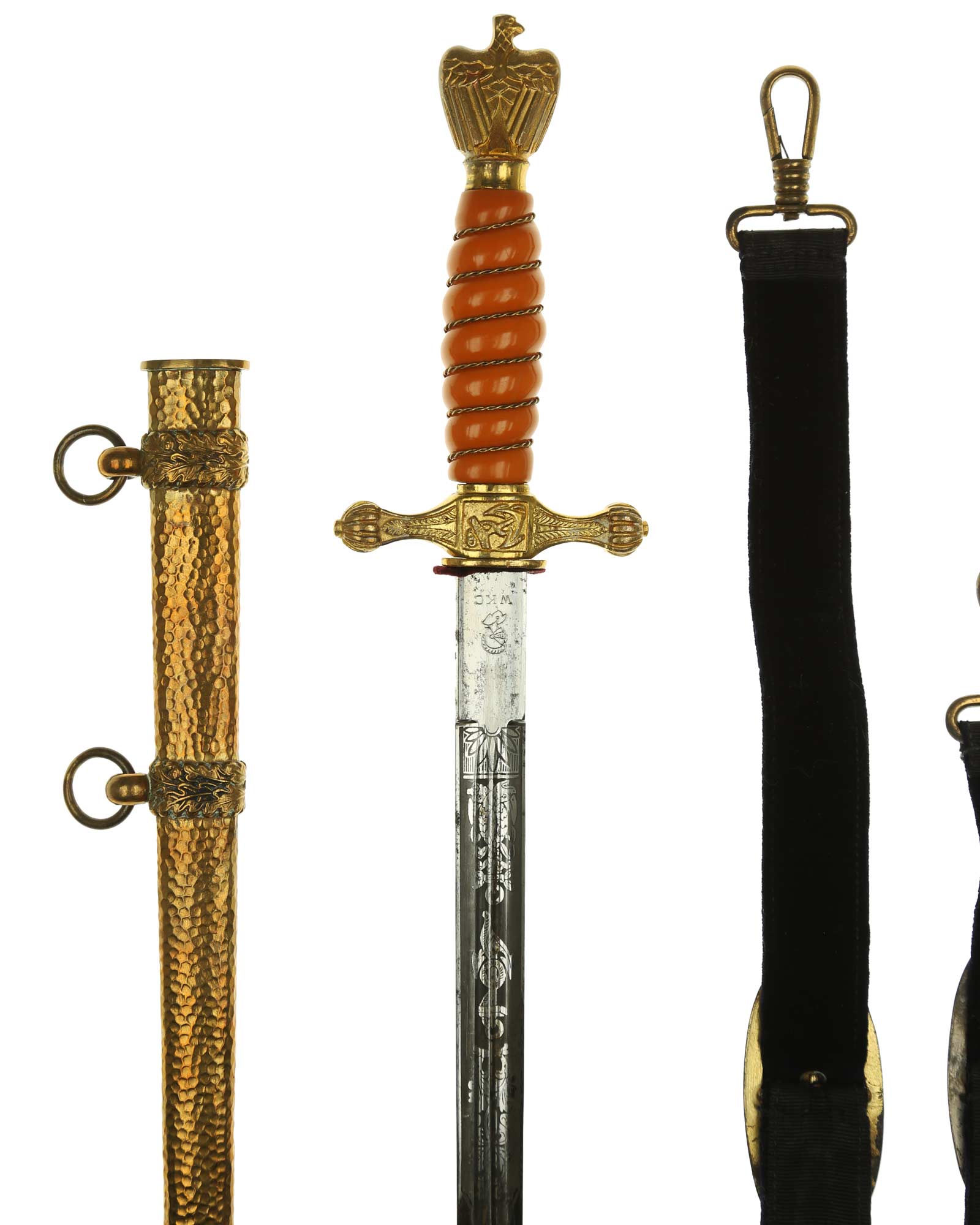 Kriegsmarine Offiziersdolch mit gehämmerter Scheide & Gehänge – WKC Solingen