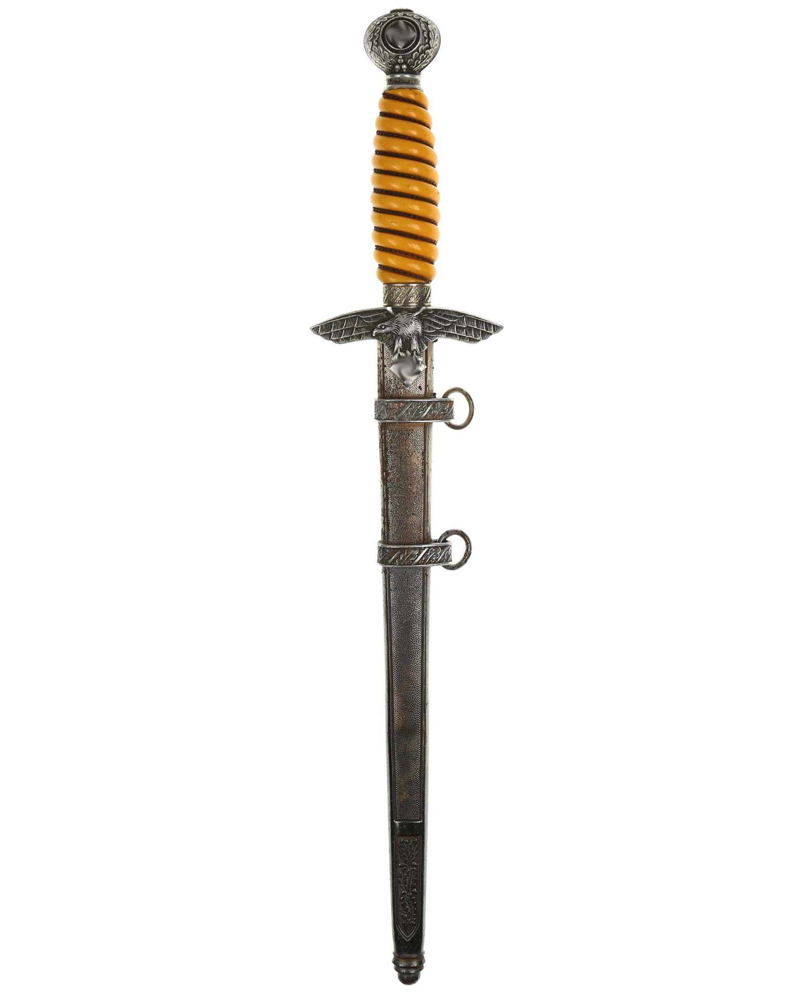 Dolch für Offiziere der Luftwaffe M1937 - 2. Modell. Die Gesamtlänge beträgt 42,6 cm. Der Luftwaffen Offiziersdolch ist ohne Herstellermarkierung.
