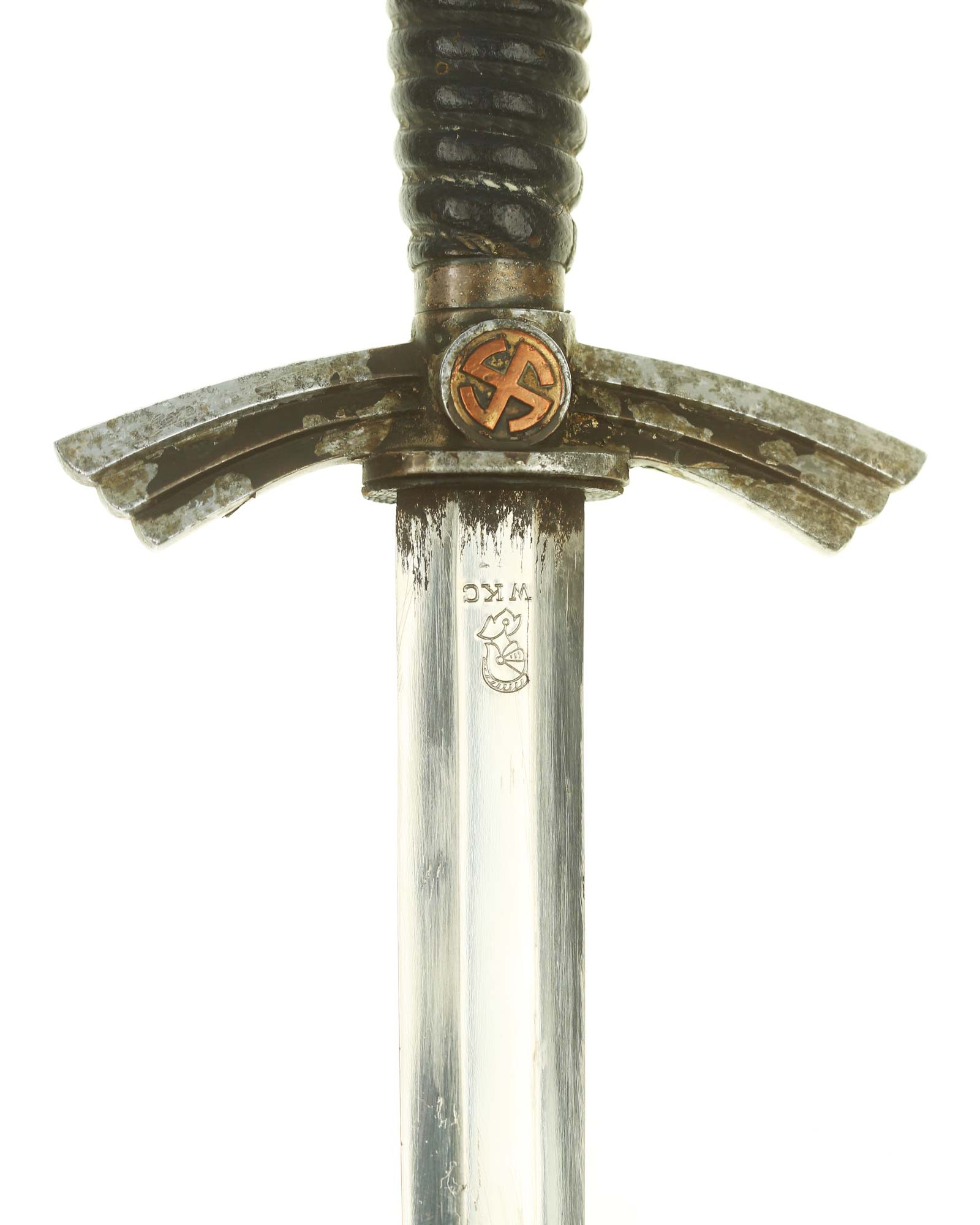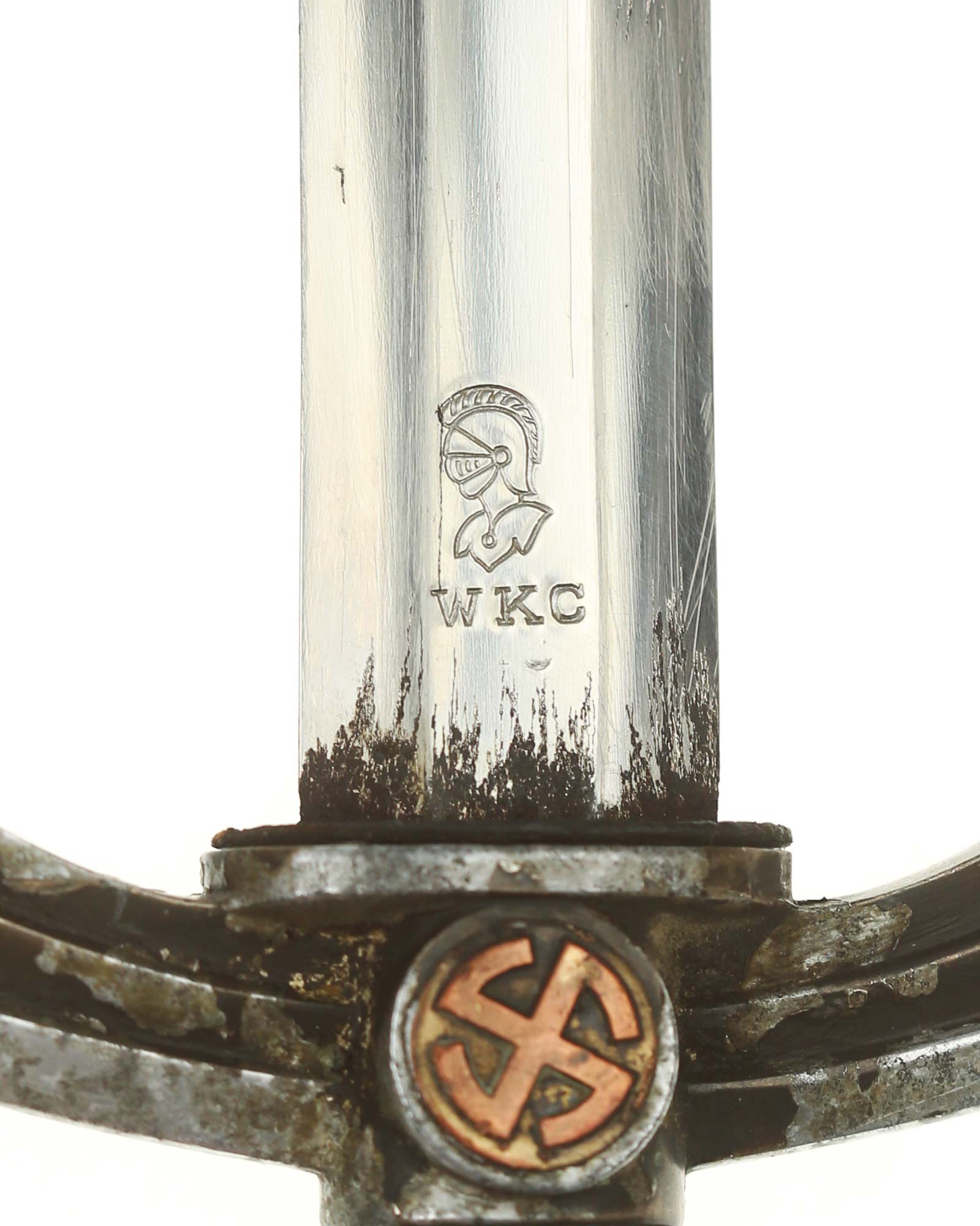 Luftwaffen Borddolch [1935] in früher Fertigung. Die Gesamtlänge beträgt 49,0 cm. Die Rückseite der Klinge ist mit Hersteller: WKC Solingen.