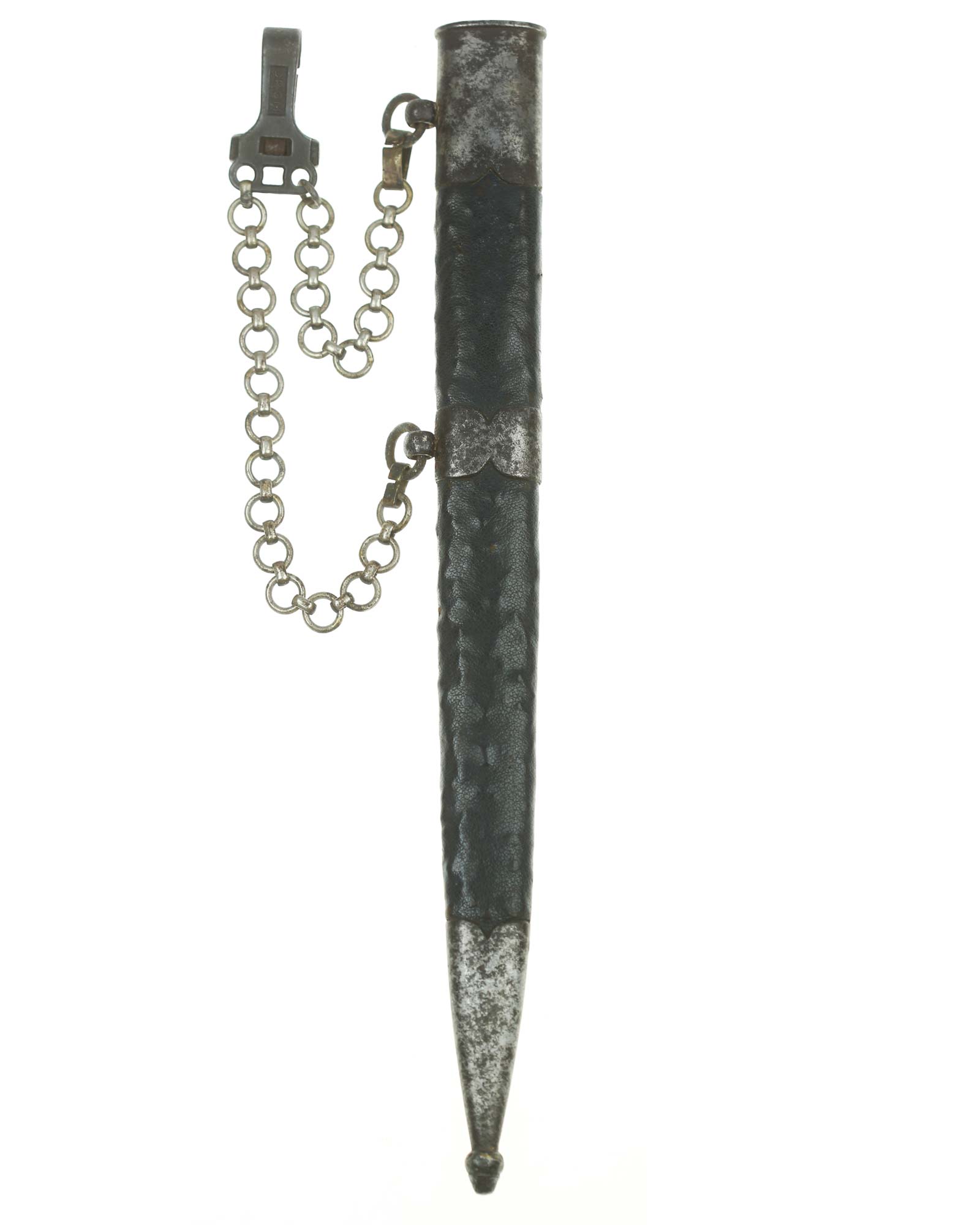 Scheide: Die Scheide ist dreiteilig und mit blauem Saffianleder umwickelt.