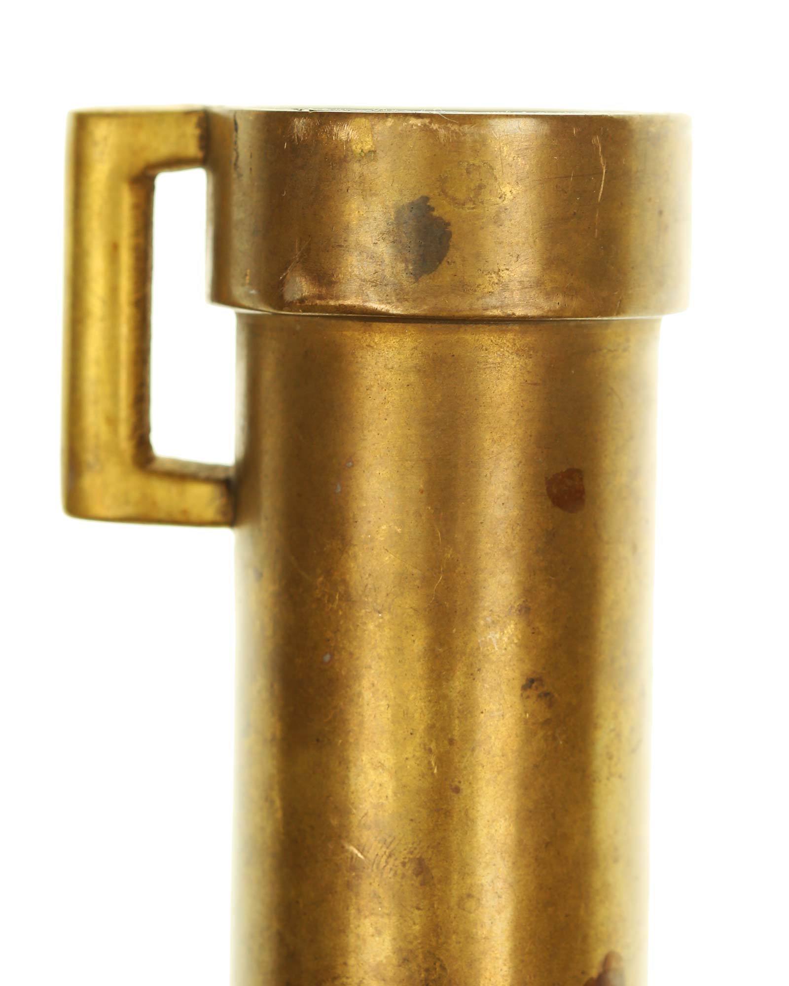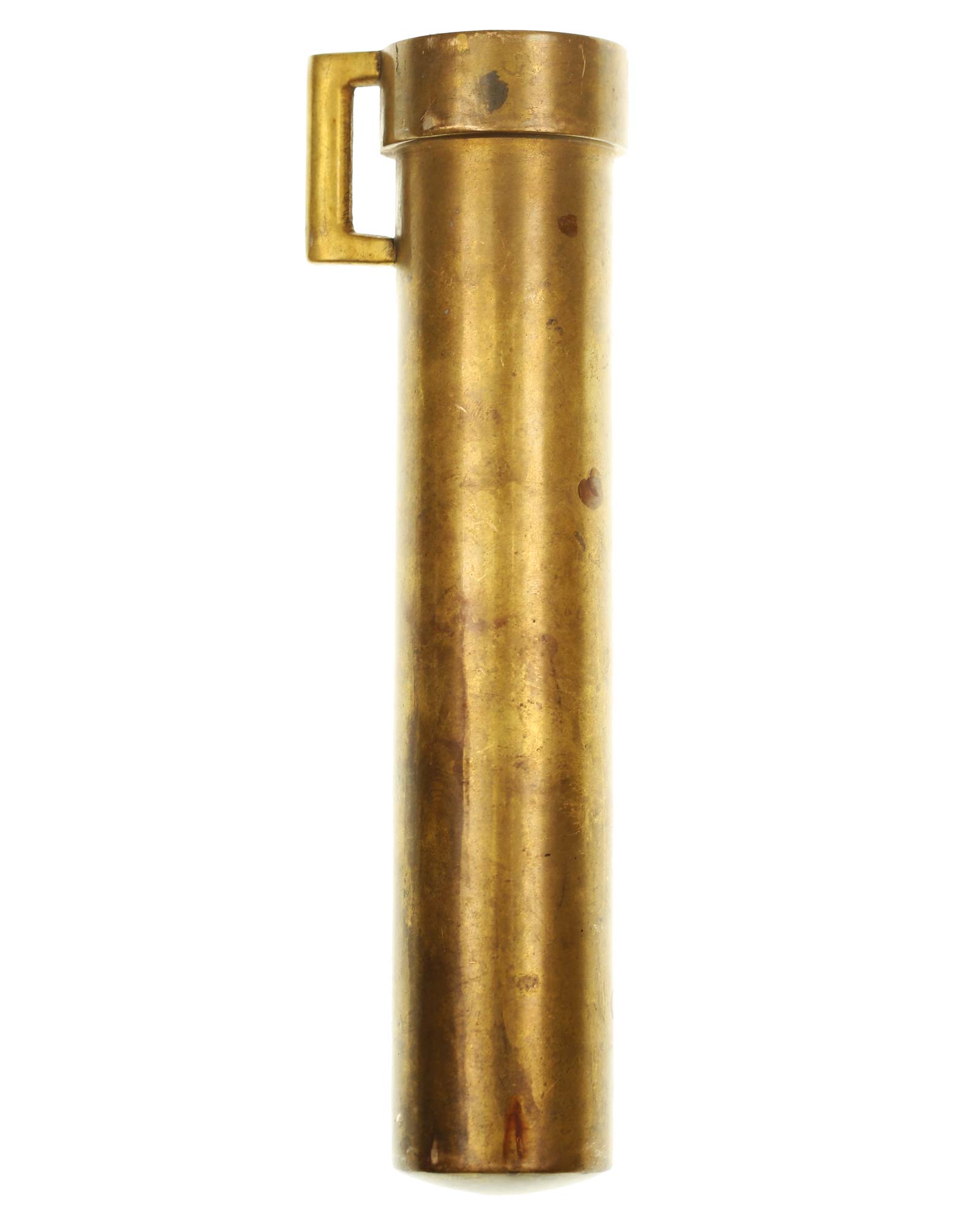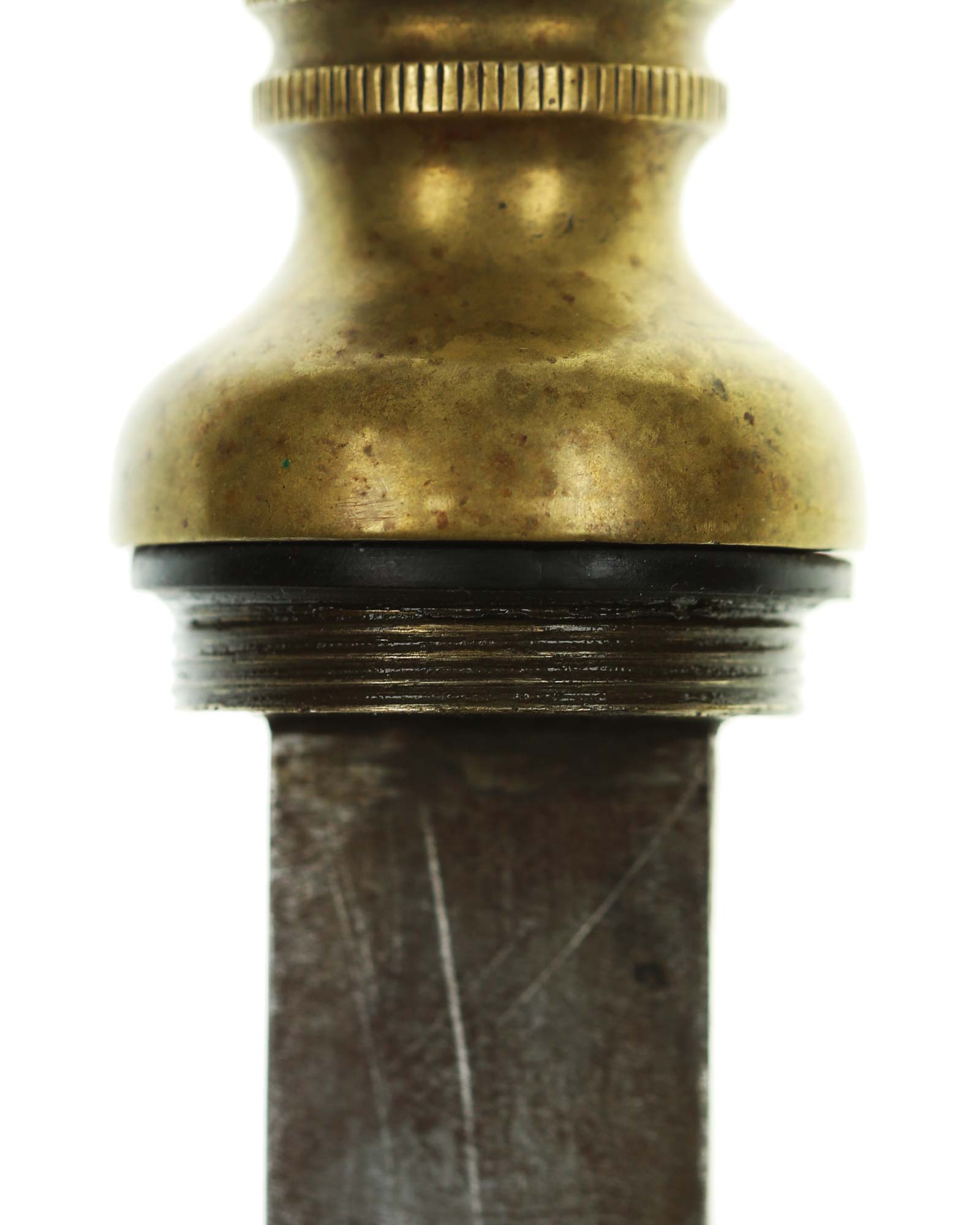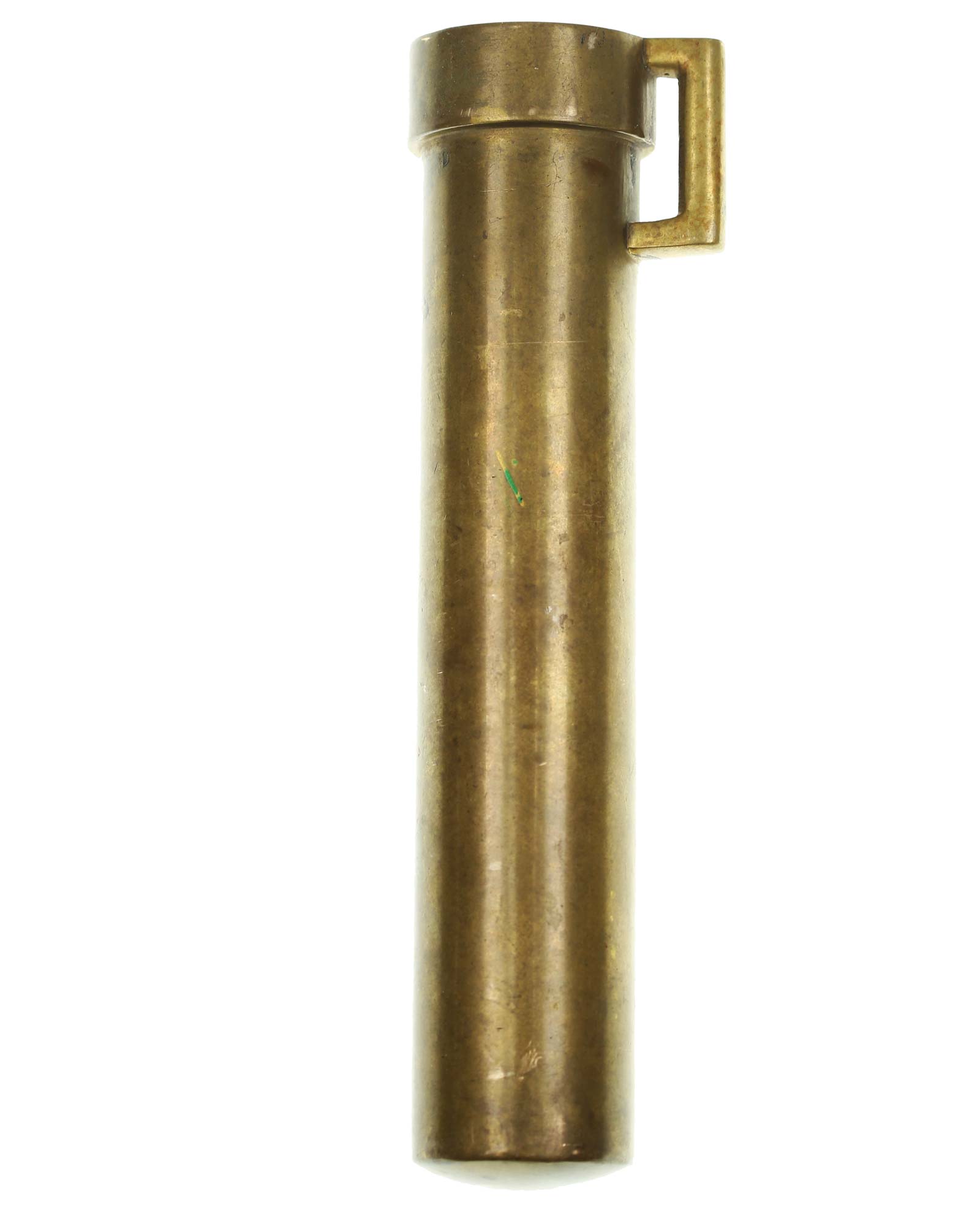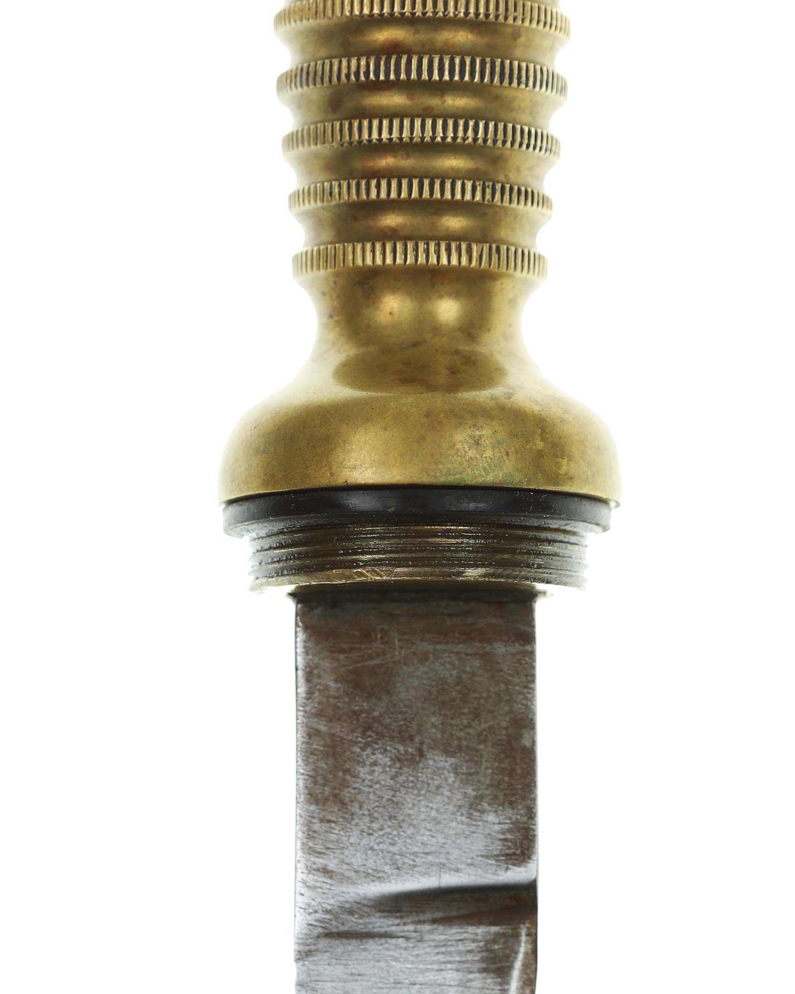 Seltenes Kriegsmarine Tauchermesser für Helmtaucher. Der Griff ist komplett aus Messing. Die Klinge ist aus Eisen und einschneidig, noch nicht poliert. Originale Gummidichtung befindet sich unter dem Griff. Die Klinge wird oben am Griff mit einer Schraube befestigt. Herstellermarkierung leider nicht mehr ersichtlich, aber es handelt sich um den Hersteller: J.A. Henckels Zwillingswerk in Solingen. Seitliche Tragevorrichtung zur Befestigung am Tauchergürtel. Gesamtlänge beträgt 33,6 cm. Gesamtgewicht ca. 2 kg. Das Tauchermesser ist noch ungereinigt im Originalzustand.