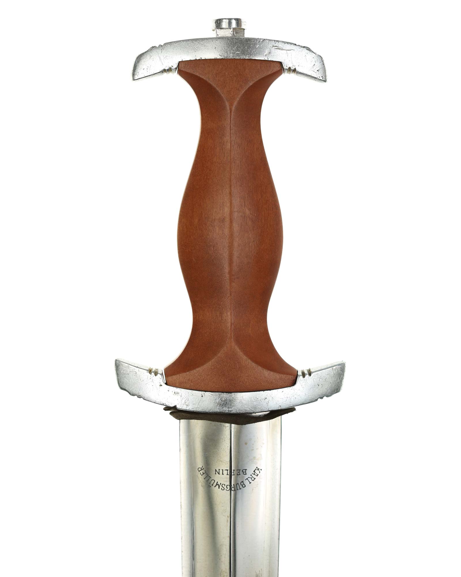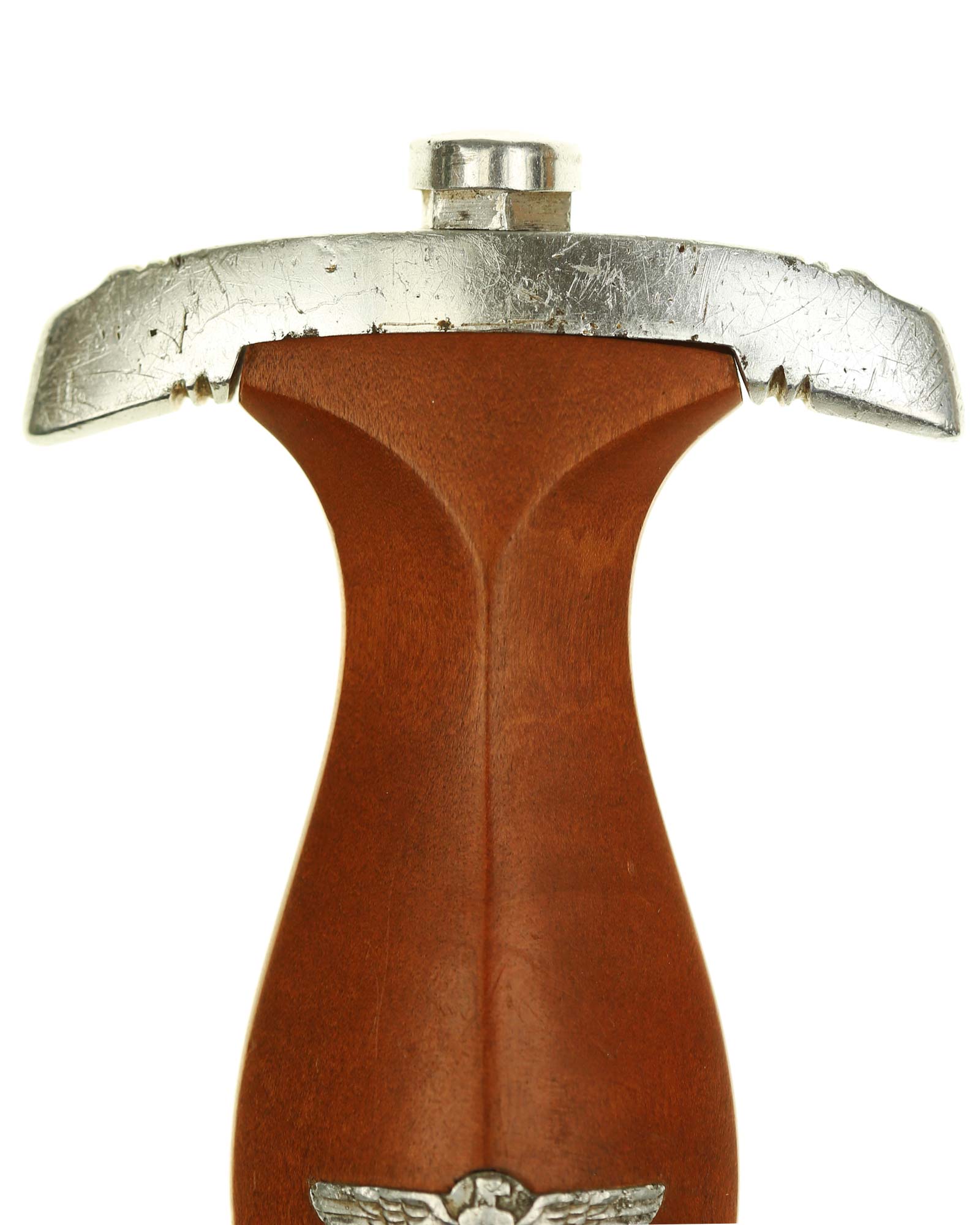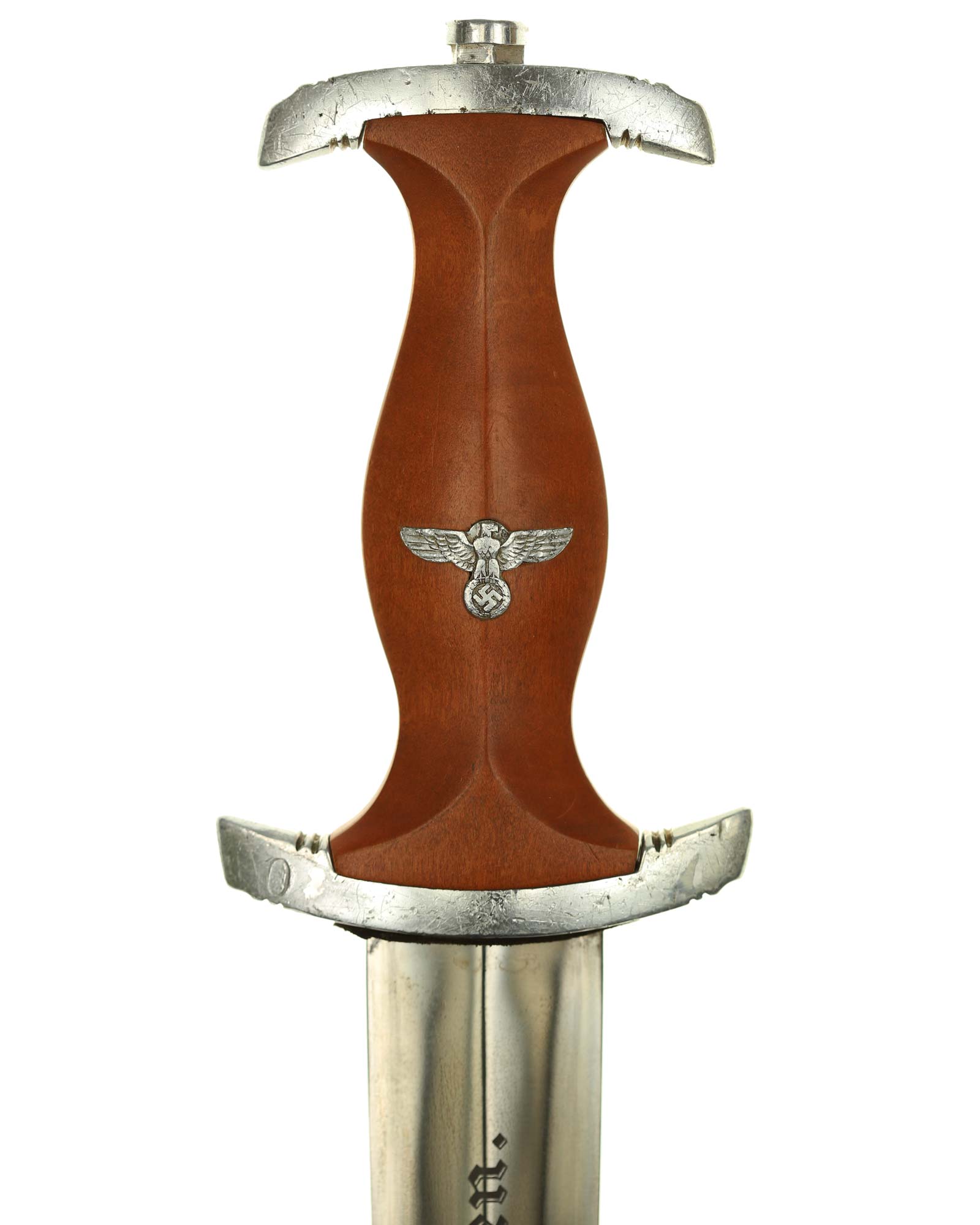 Griff: Brauner Holzgriff, der Hoheitsadler im Griff ist in Aluminiumausführung, dieses ist innen geklammert. Untere Parierstange mit gestempelt mit "5 und "0".