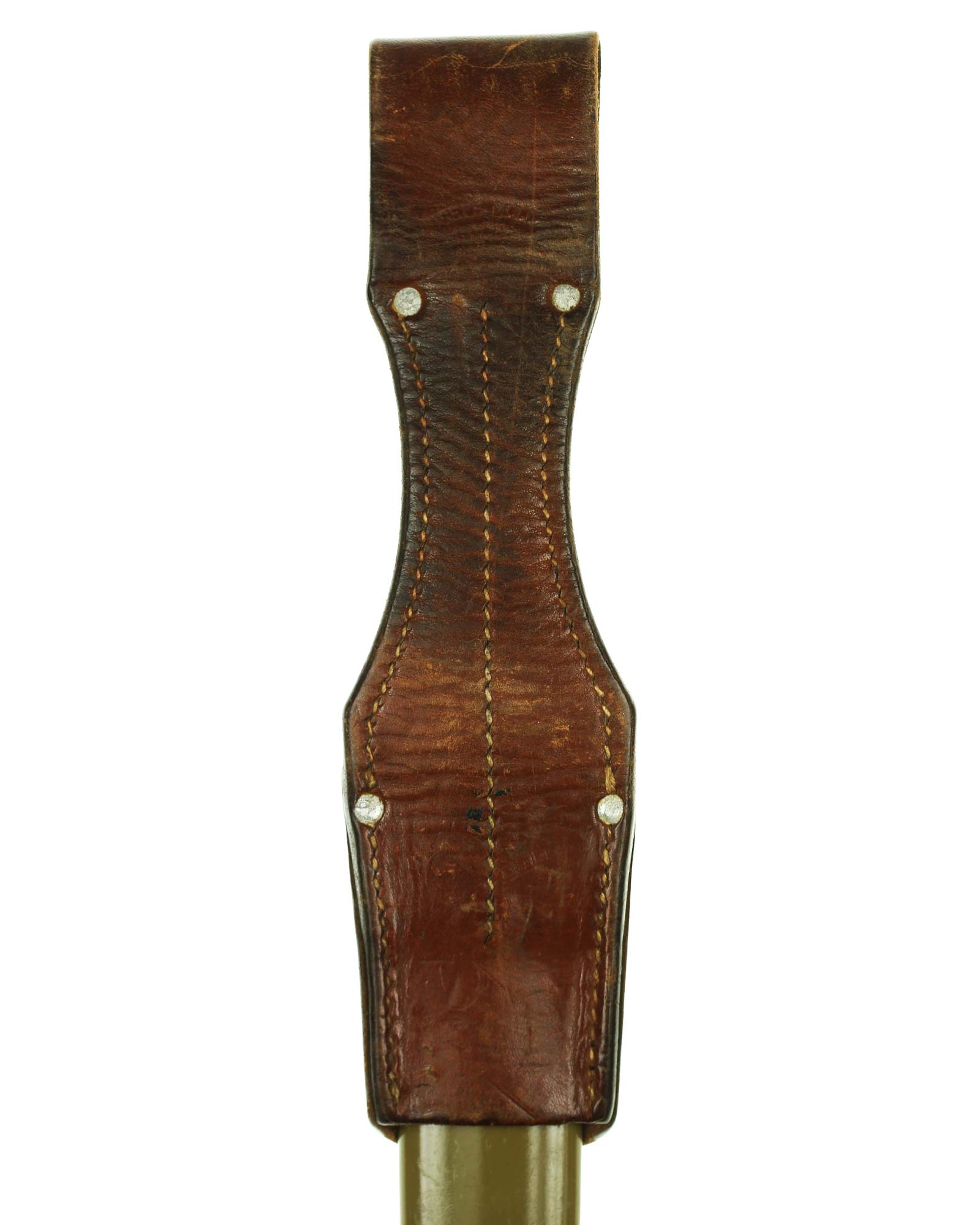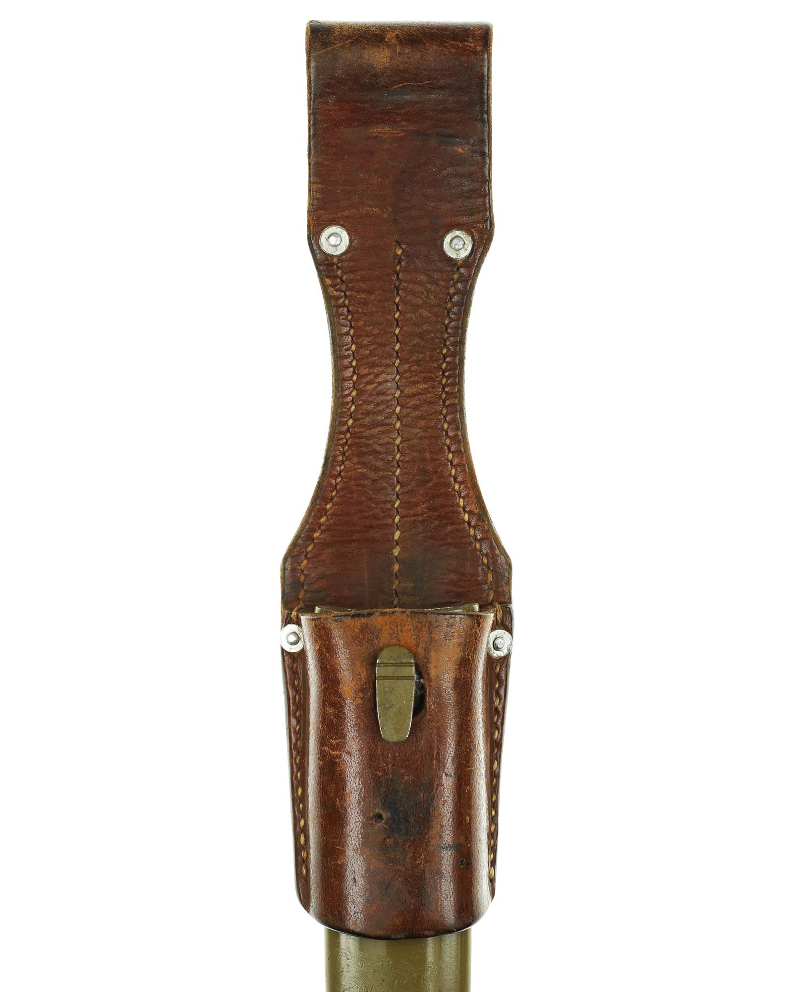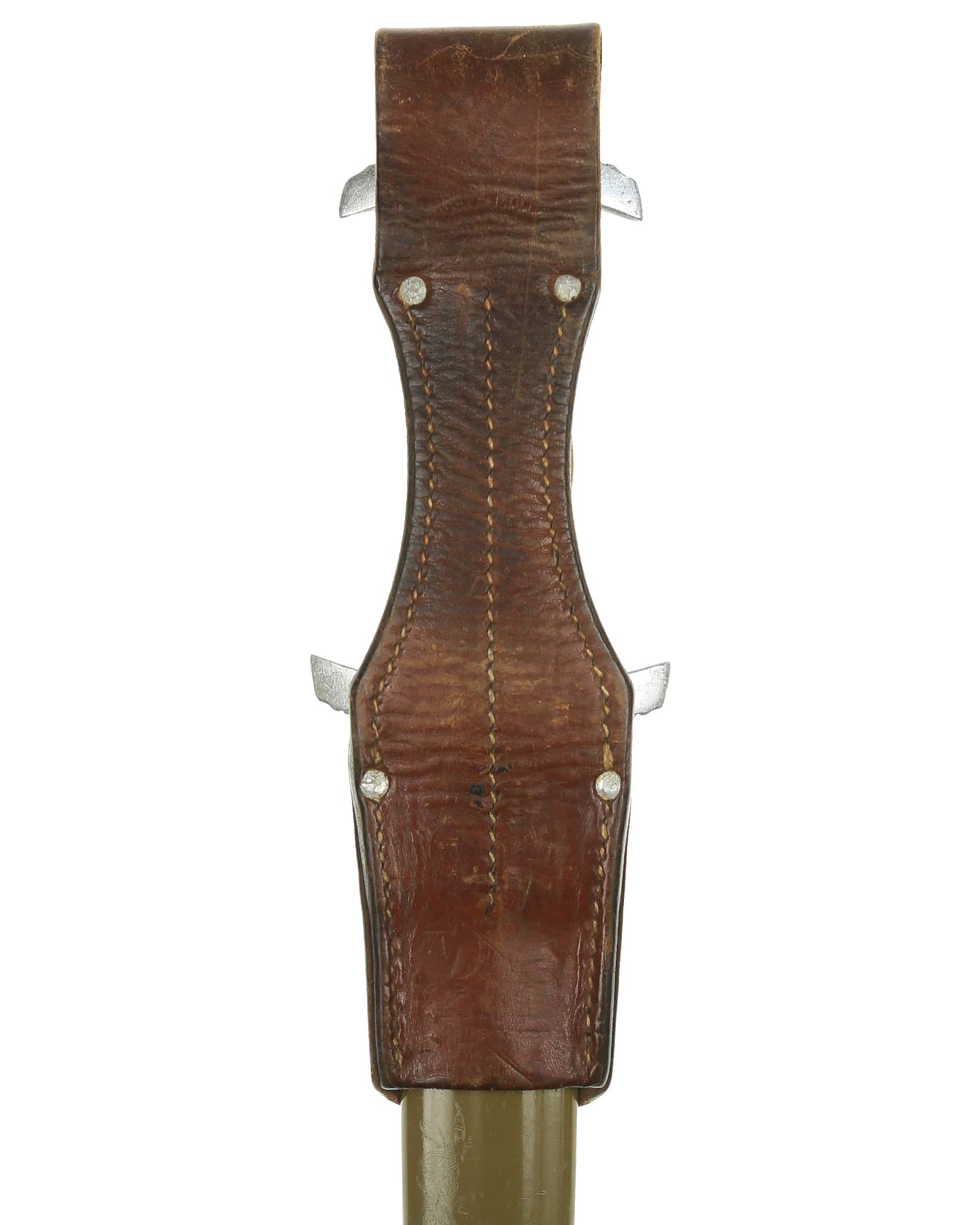 Scheide: Die Scheide ist aus Eisen und mit Originallackierung. Auf der Vorderseite befindet sich der Feststellhaken für das Koppeltrageschuh. Das Koppelschuh ist gekennzeichnet mit dem Hersteller: Joseph Moll Goch.