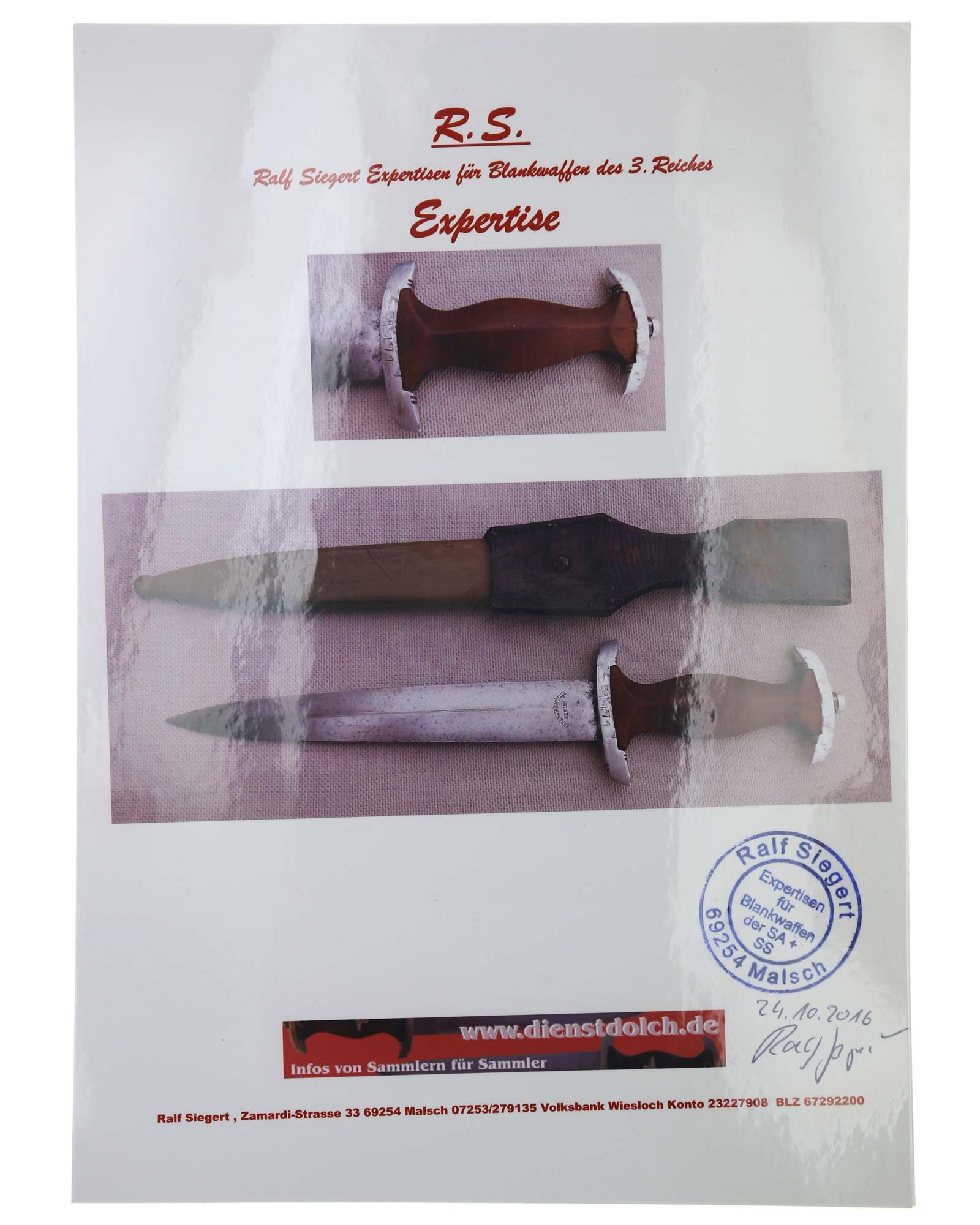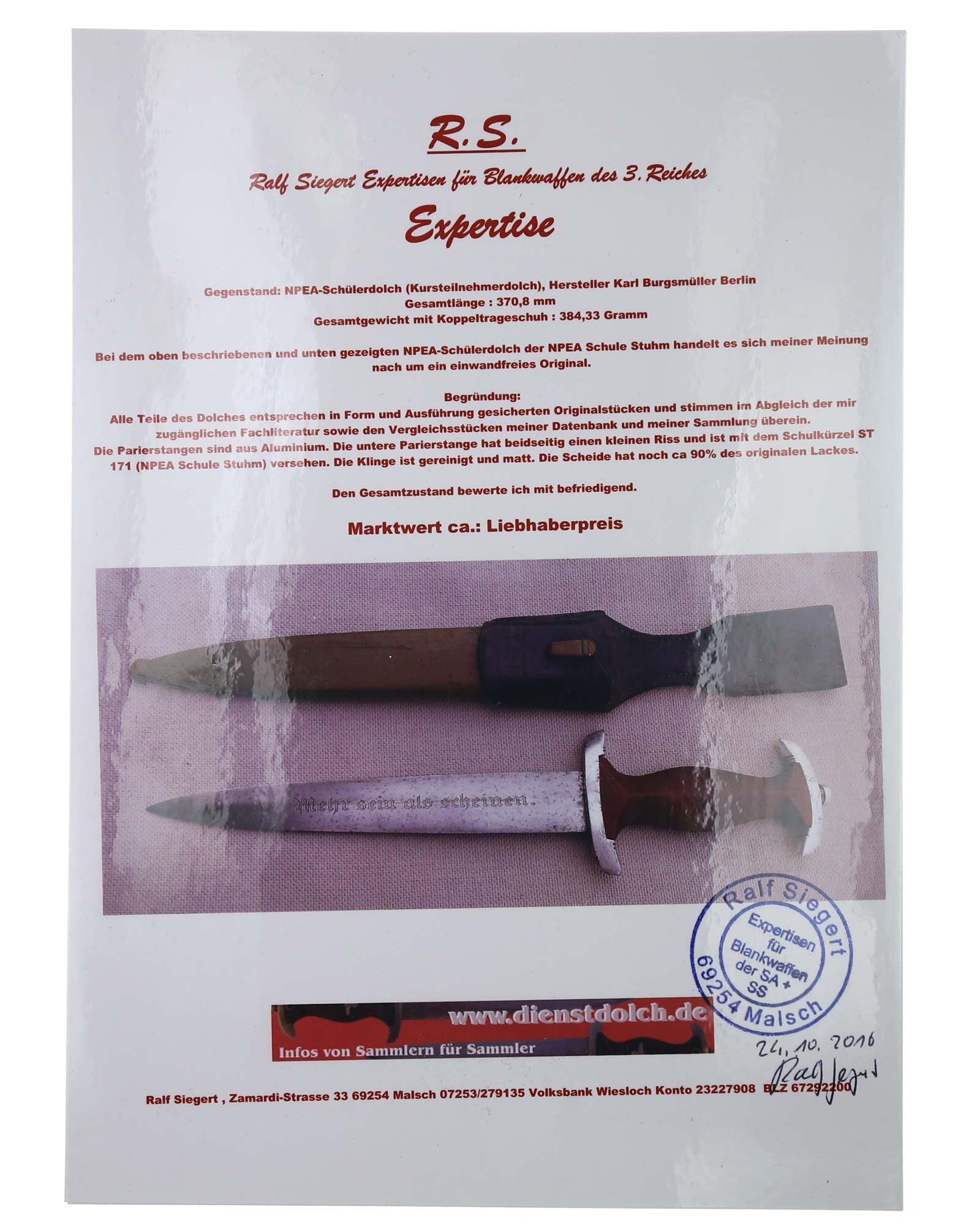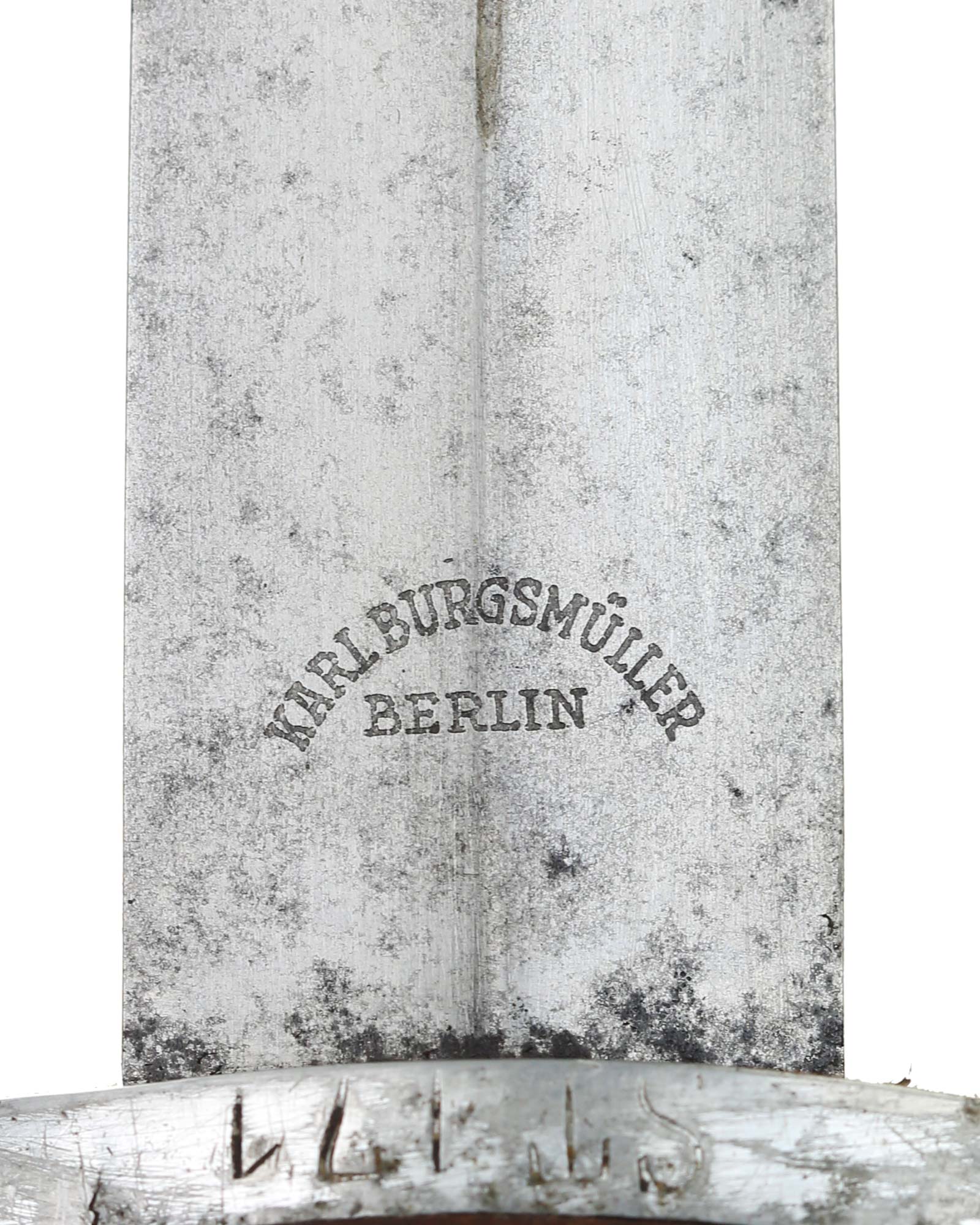 Dienstdolch der Nationalpolitischen Erziehungsanstalt [NPEA] für Schüler bzw. Kursteilnehmer. Modell 1935 mit dem Hersteller bzw. Vertreiber auf der Klinge: Karl Burgsmüller Berlin.