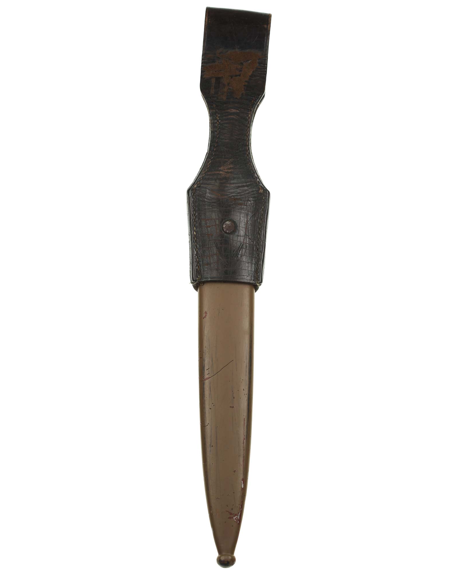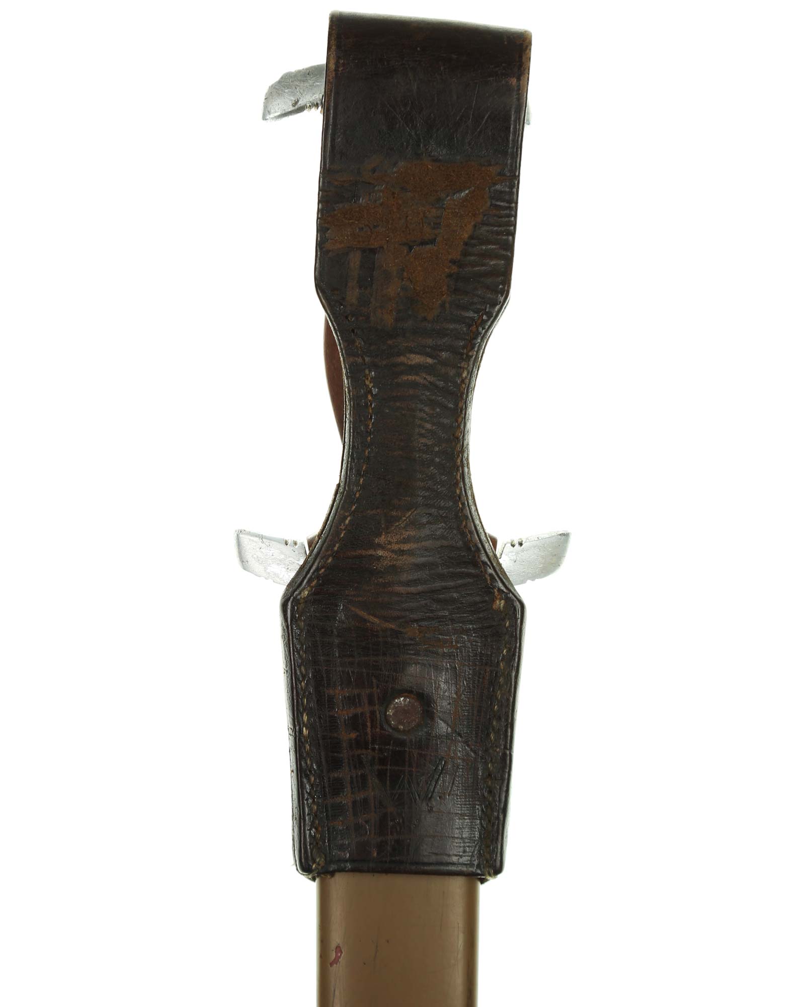 Scheide: Die Scheide ist aus Eisen und mit Originallackierung. Diese hat keine Dellen oder Beulen. Auf der Vorderseite befindet sich der Feststellhaken für das Koppeltrageschuh.