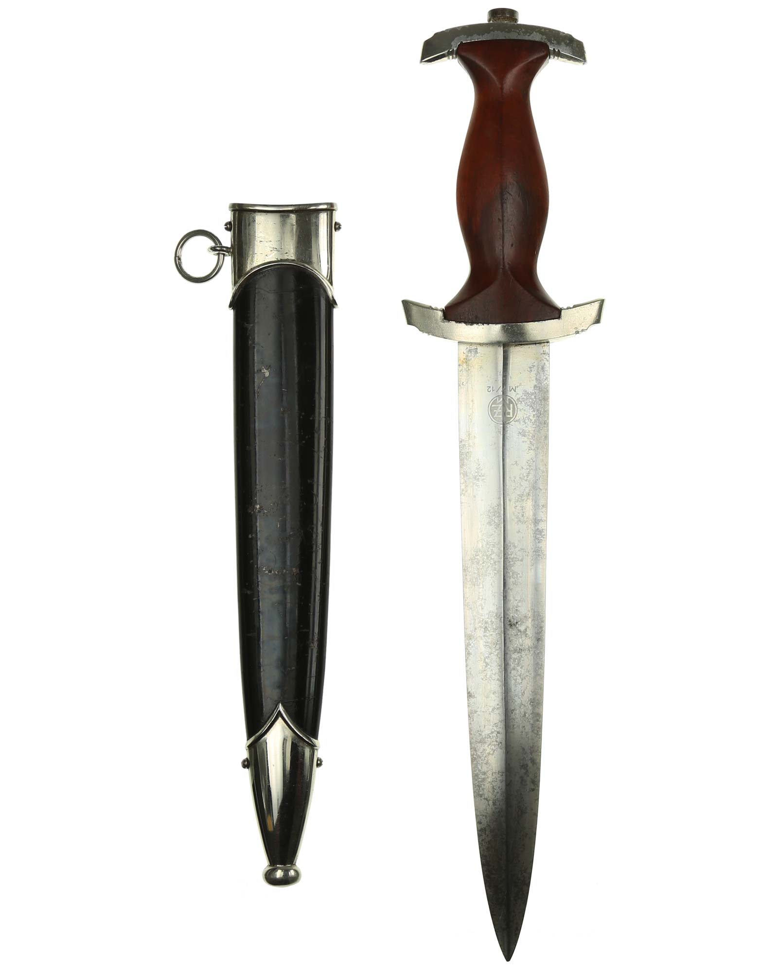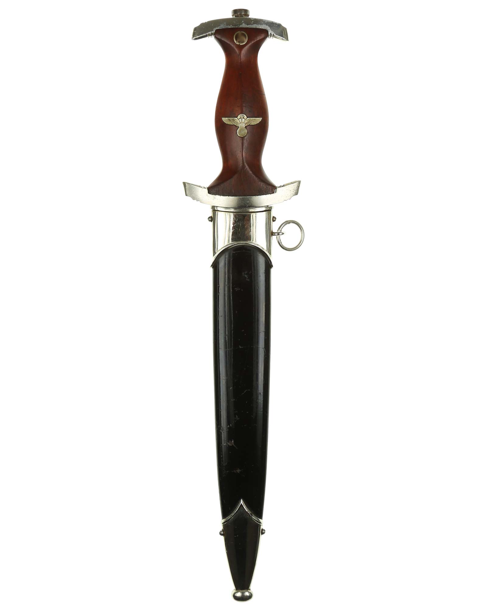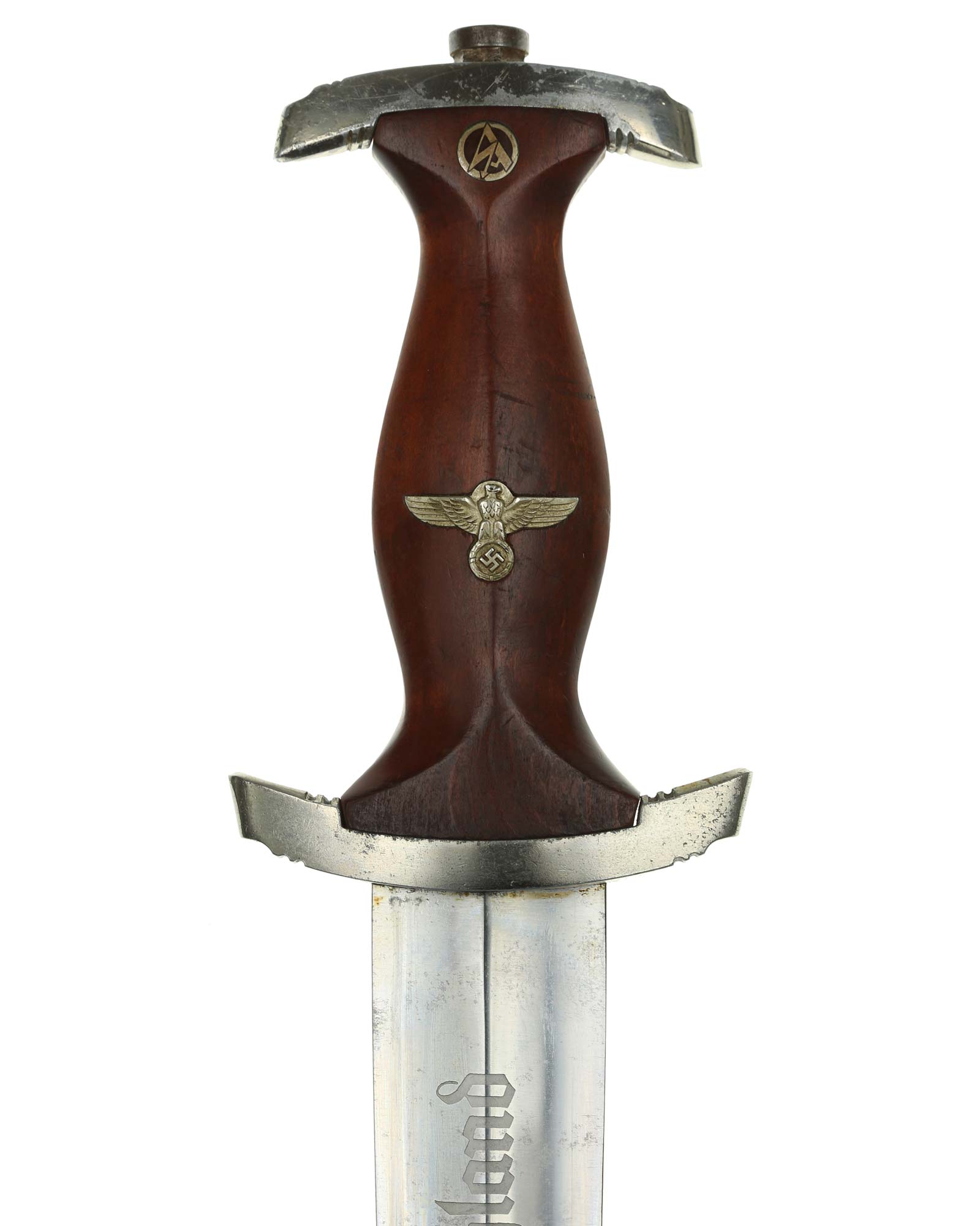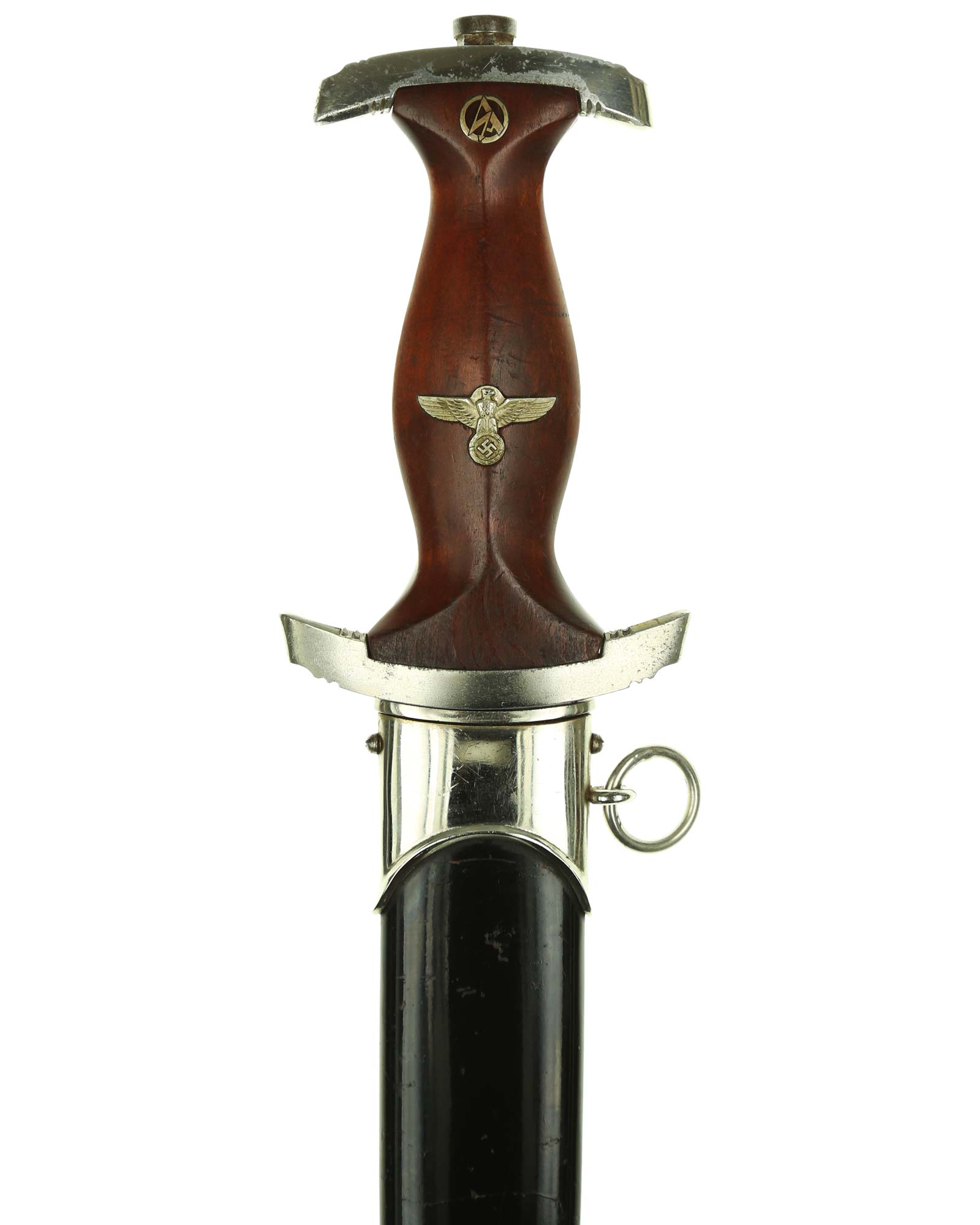 Griff: Der Griff ist aus Holz mit eingelegtem Griffadler und SA-Pastille, diese sind innen geklammert. Die Griffeinlagen sind unberührt.