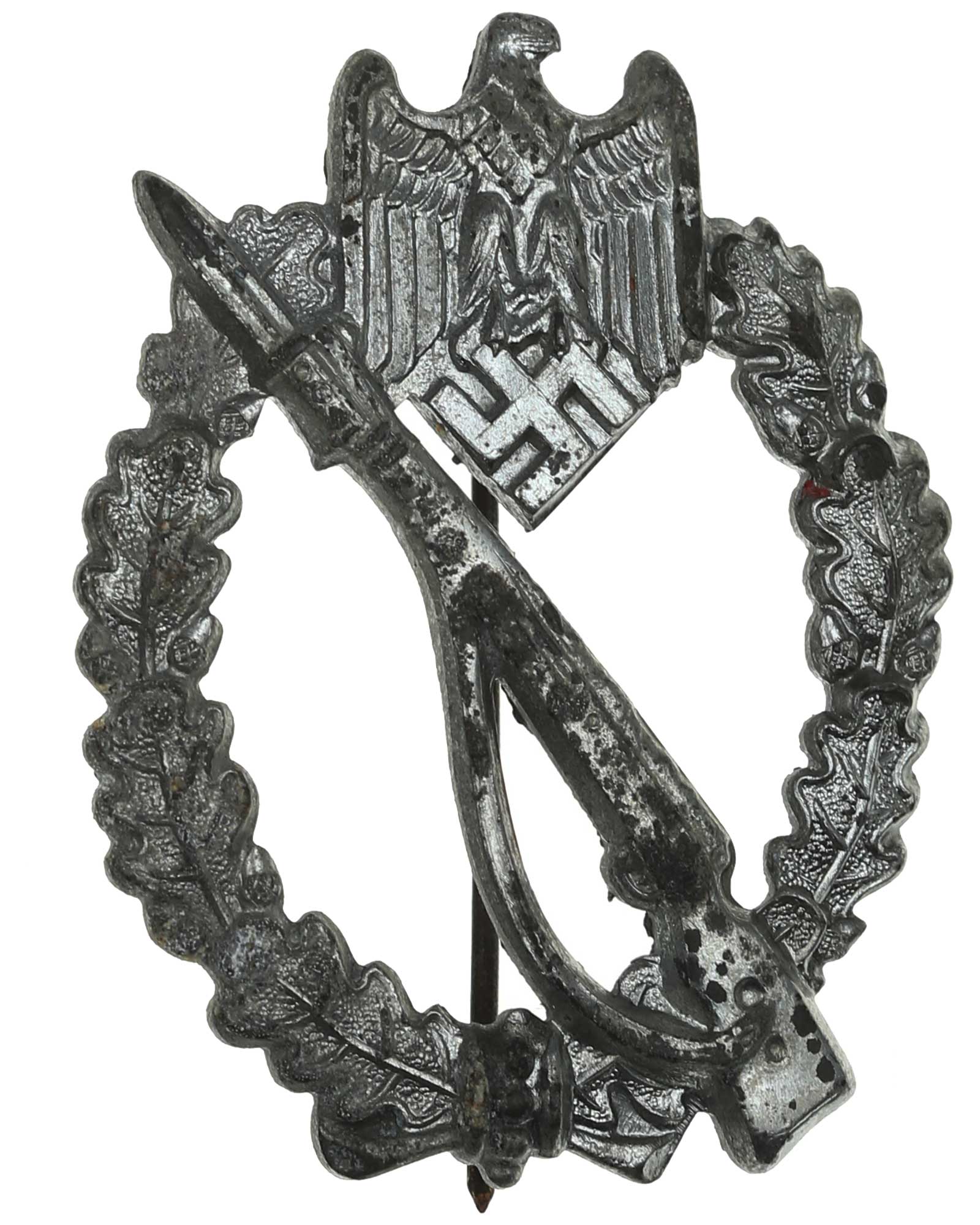Klinge: Die Klinge ist einschneidig, leicht gebogen und vernickelt. Der Klingenrücken der Klinge ist komplett stumpf. Auf der Vorderseite befindet sich die RAD Devisenätzung in gotischer Schrift: «Arbeit adelt». Auf der Rückseite befindet sich das Logo: Carl Jul. Krebs Solingen.