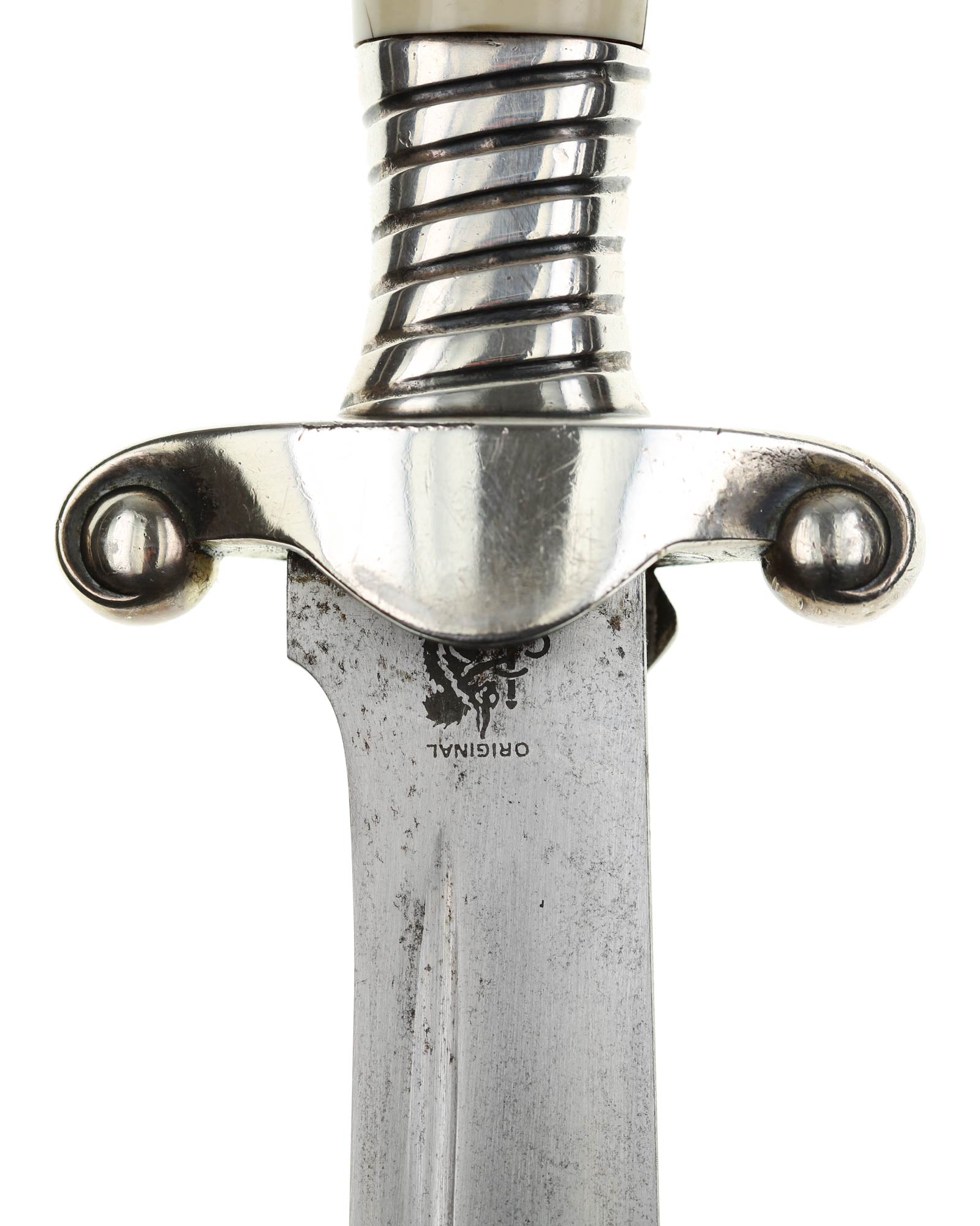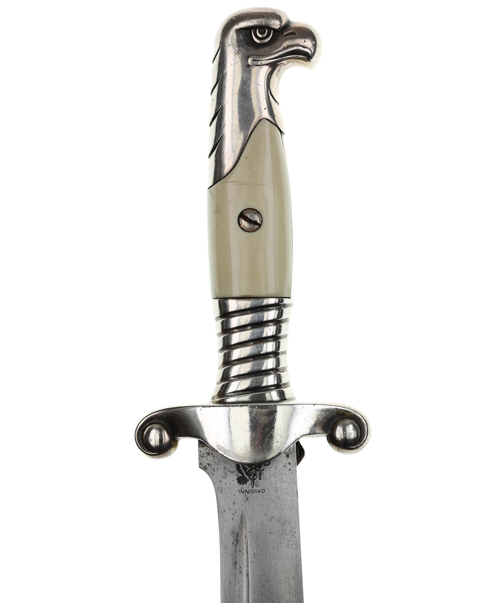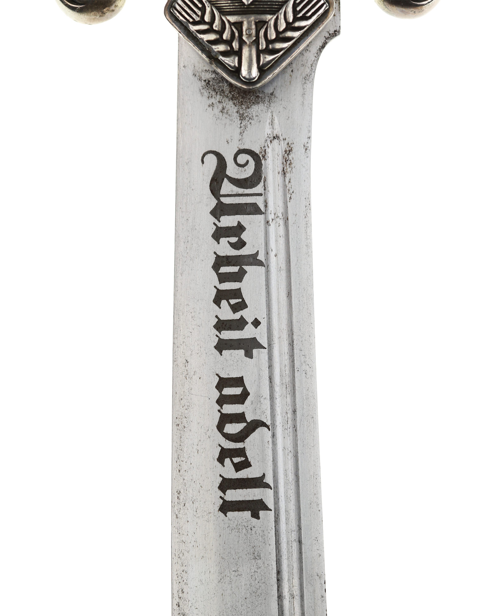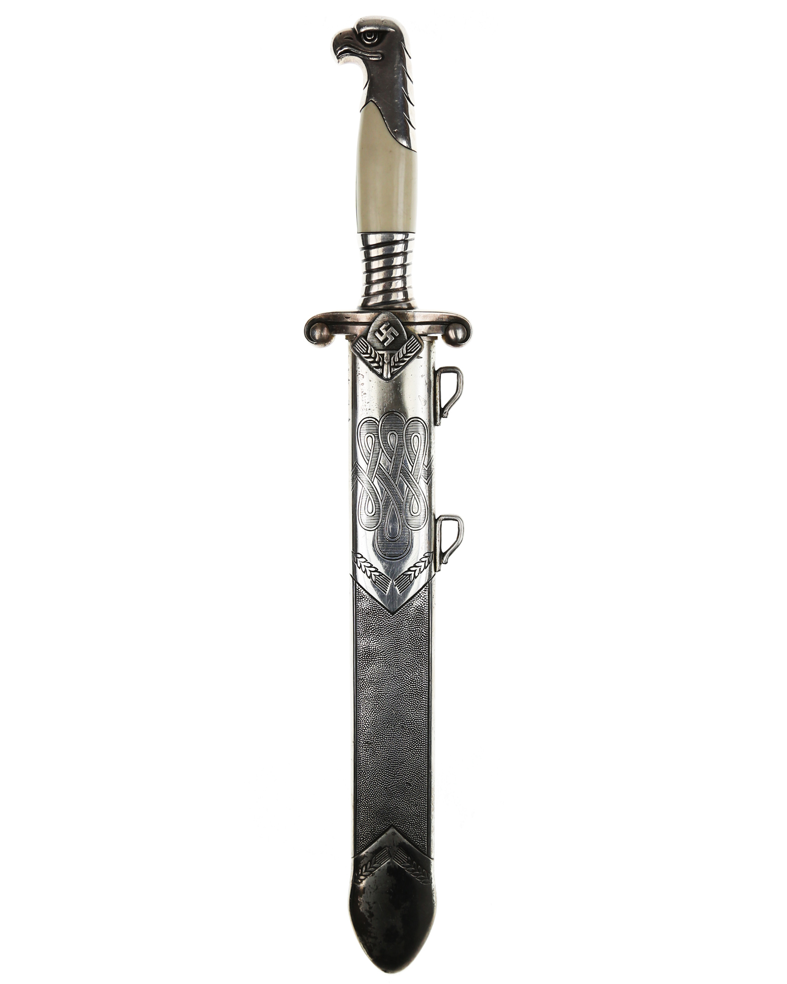 Sehr gut erhaltener RAD [Reichsarbeitsdienst] Führerdolch. Modell 1937. Die Gesamtlänge beträgt 40,0 cm. Der Führerhauer hat das Herstellerlogo: Original Eickhorn Solingen, auf der Klinge.
