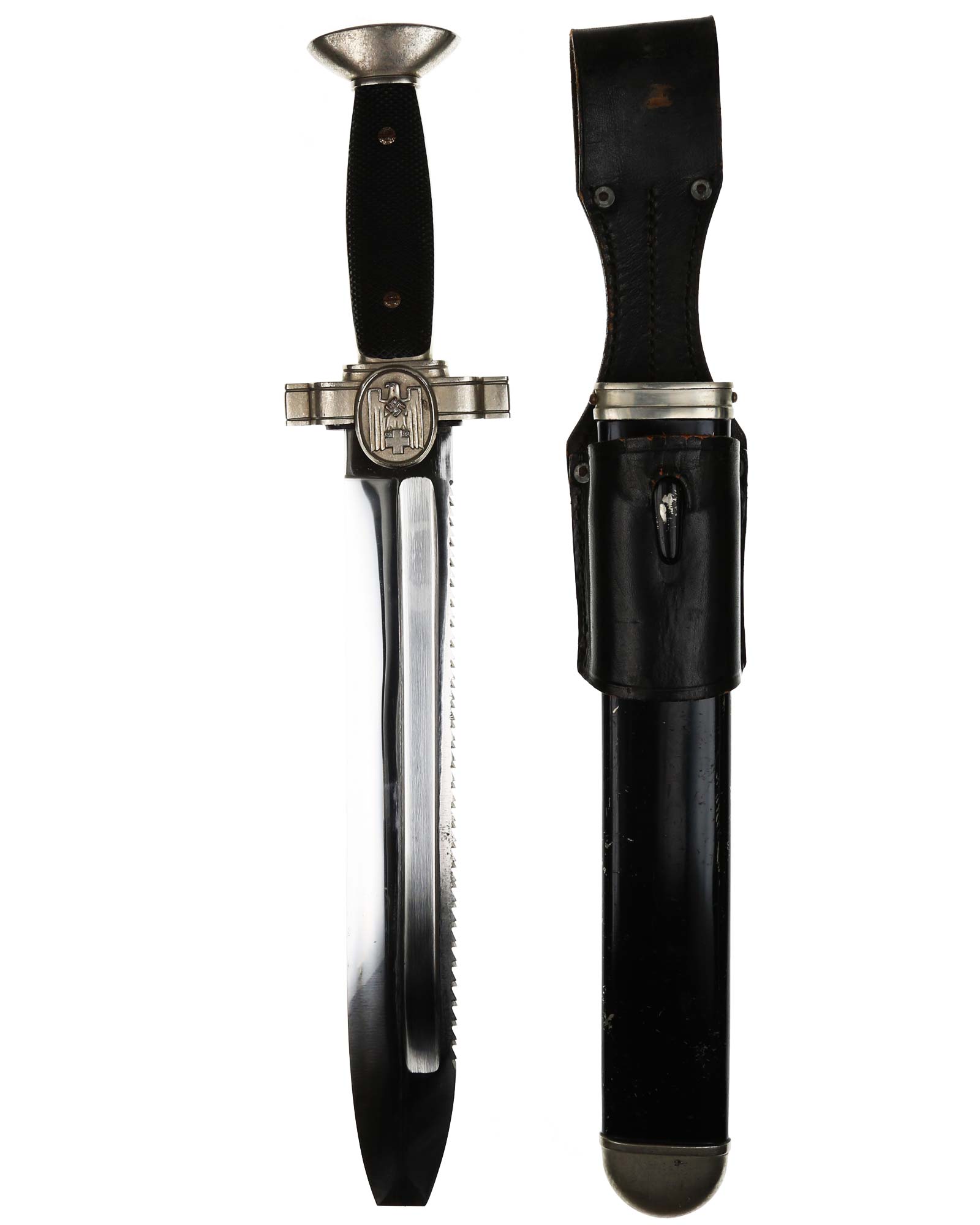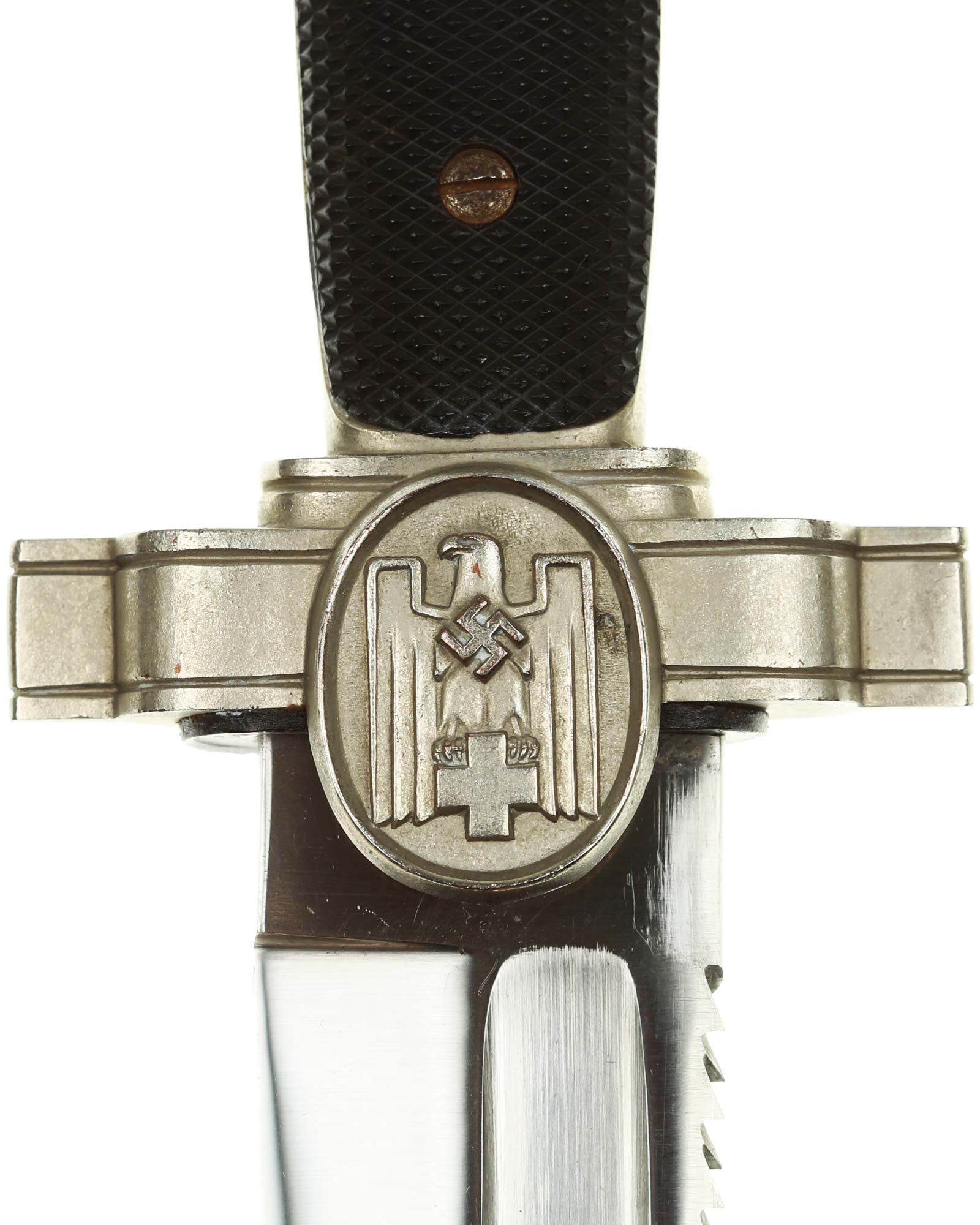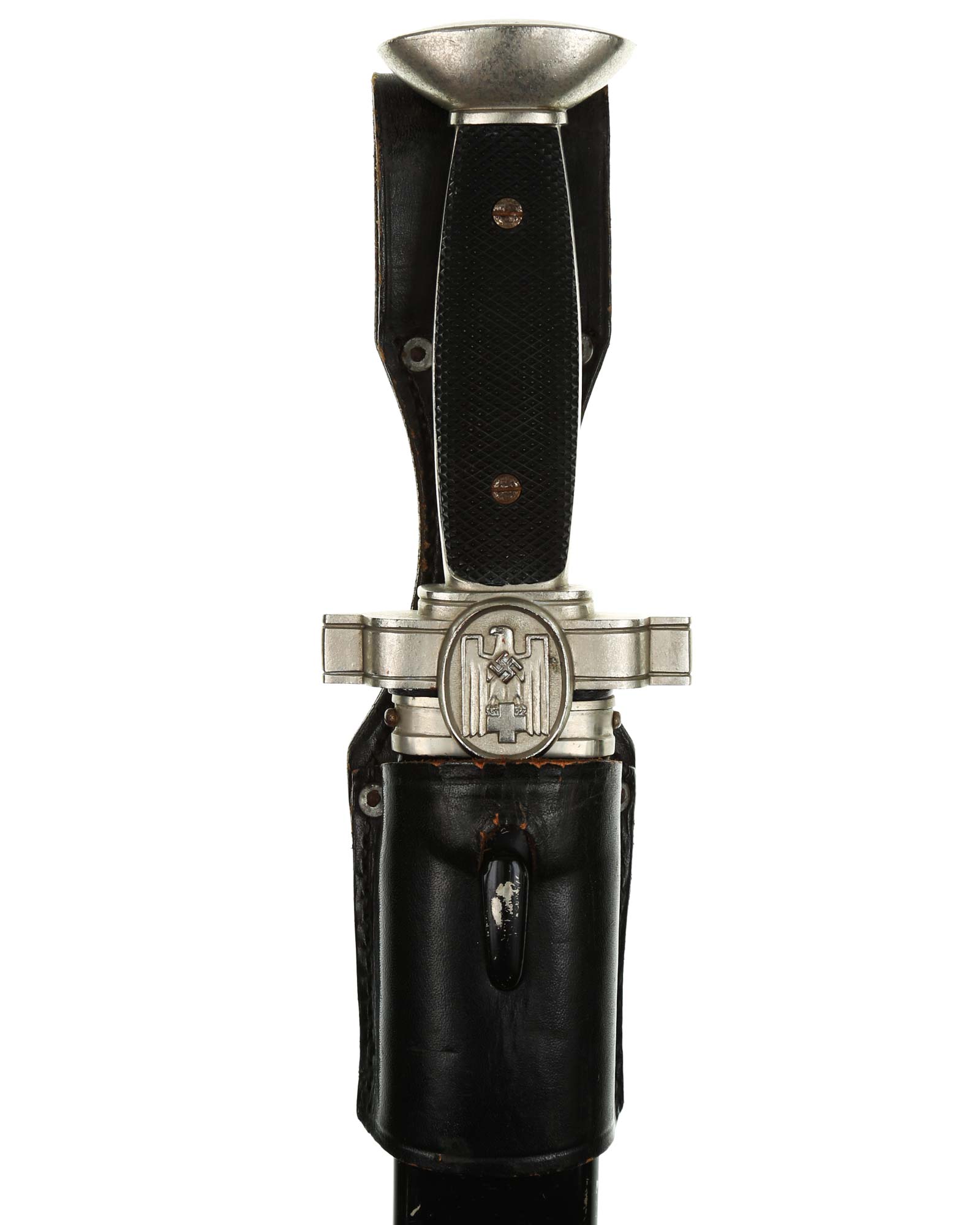 DRK [Deutsches Rotes Kreuz] Hauer für Unterführer mit Leder-Koppelschuh. Modell 1938. Die Gesamtlänge beträgt 41,5 cm.