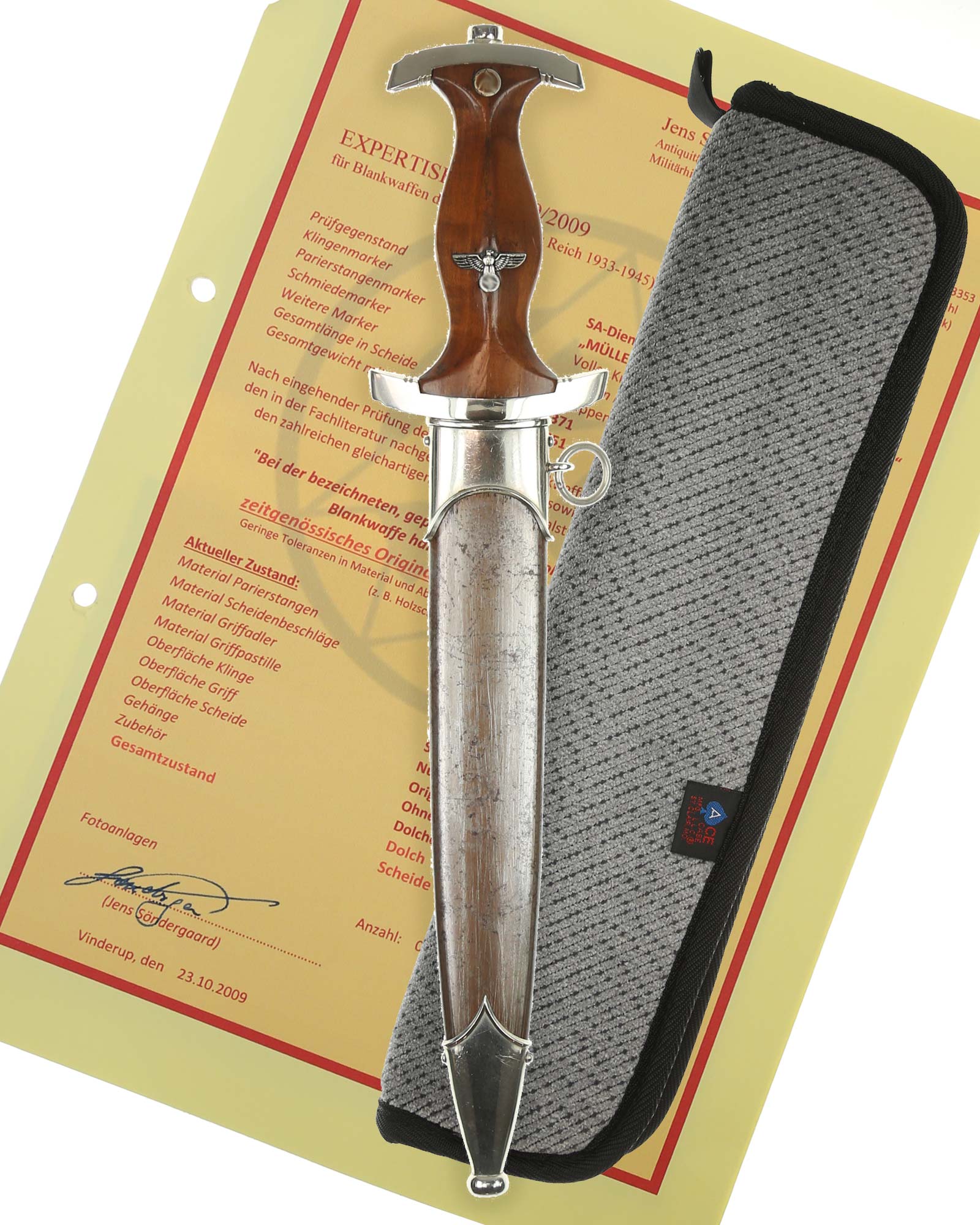 SA Dienstdolch [Frühe Fertigung] mit Expertise und Etui – Müller & Schmidt (PFEILRINGWERK) Solingen